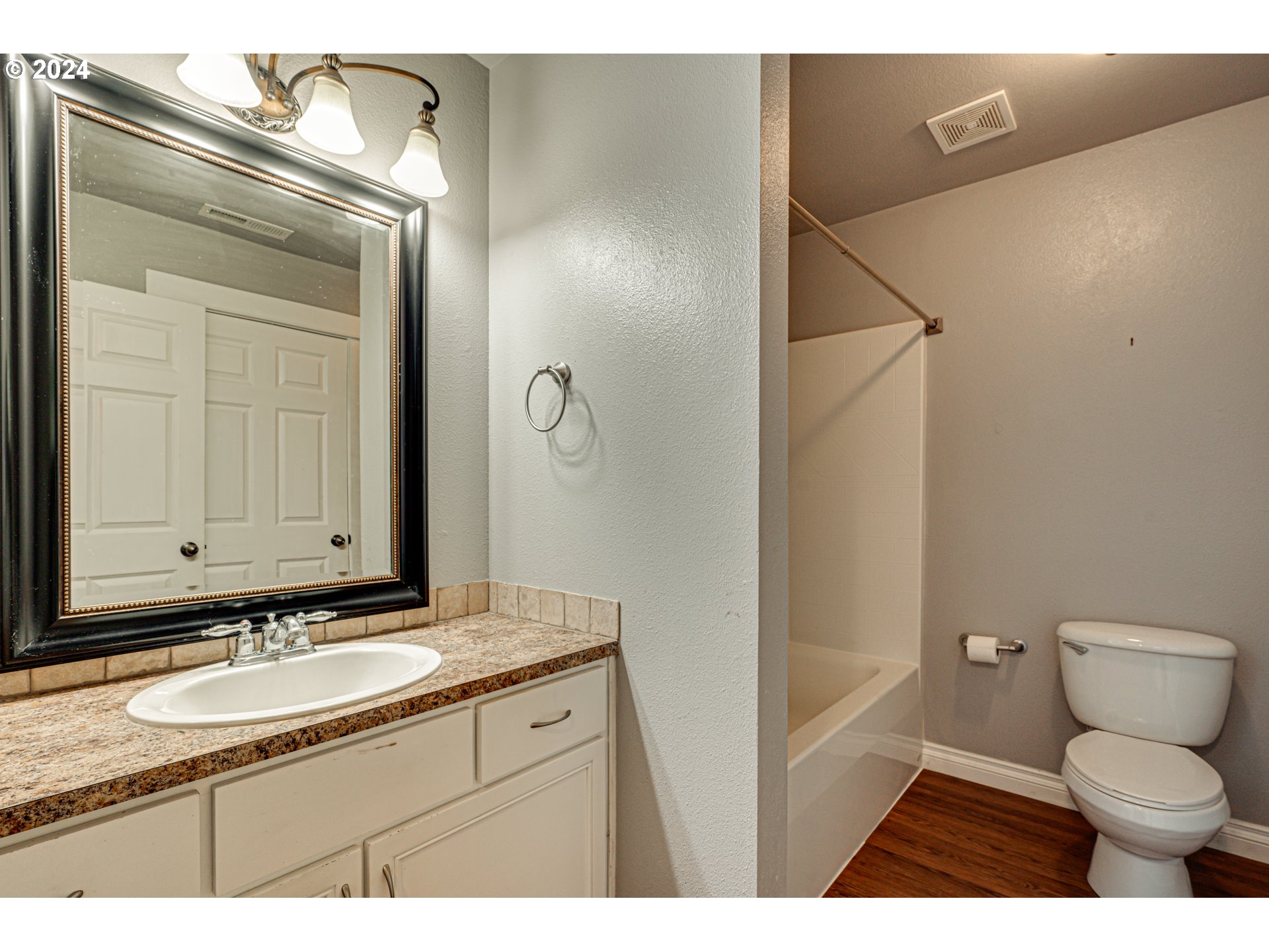 Move-in ready ground floor condo located in quiet, gated community. Spacious one-level unit features 2 bedrooms plus office/den. Recently updated with durable luxury vinyl plank flooring. The kitchen boasts sleek stainless-steel appliances, a generous pantry/laundry room, and is seamlessly connected to the dining area. The living room opens to a covered patio, extending the living space outdoors for year-round enjoyment. Primary retreat with walk-in closet and private bath. Dedicated covered parking plus extra storage on patio. Incredible amenities include pool with hot tub, gym, and clubhouse, as well as nearby walking trails along Salmon Creek greenway trail. The prime location provides easy access to shopping, dining, hospitals, WSU Vancouver campus, and major freeways.