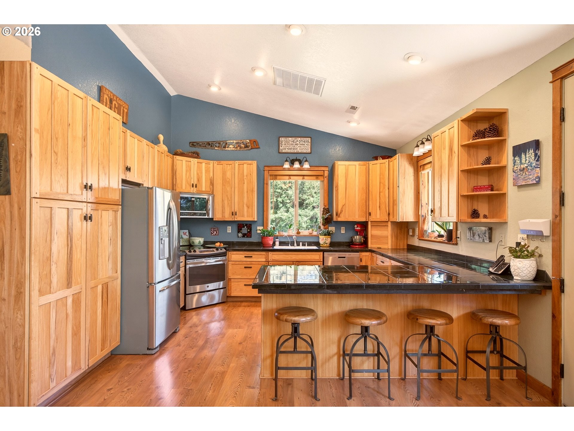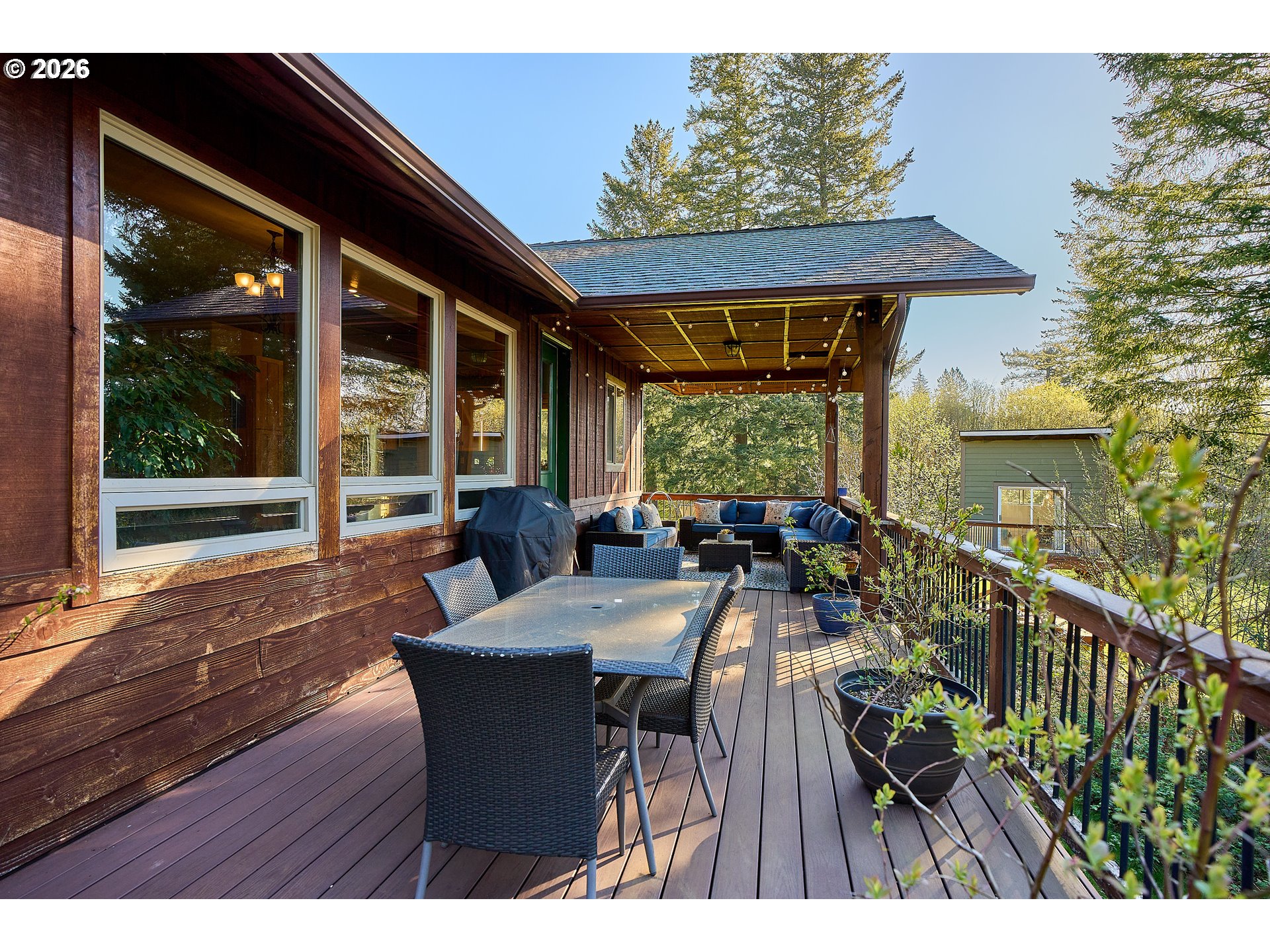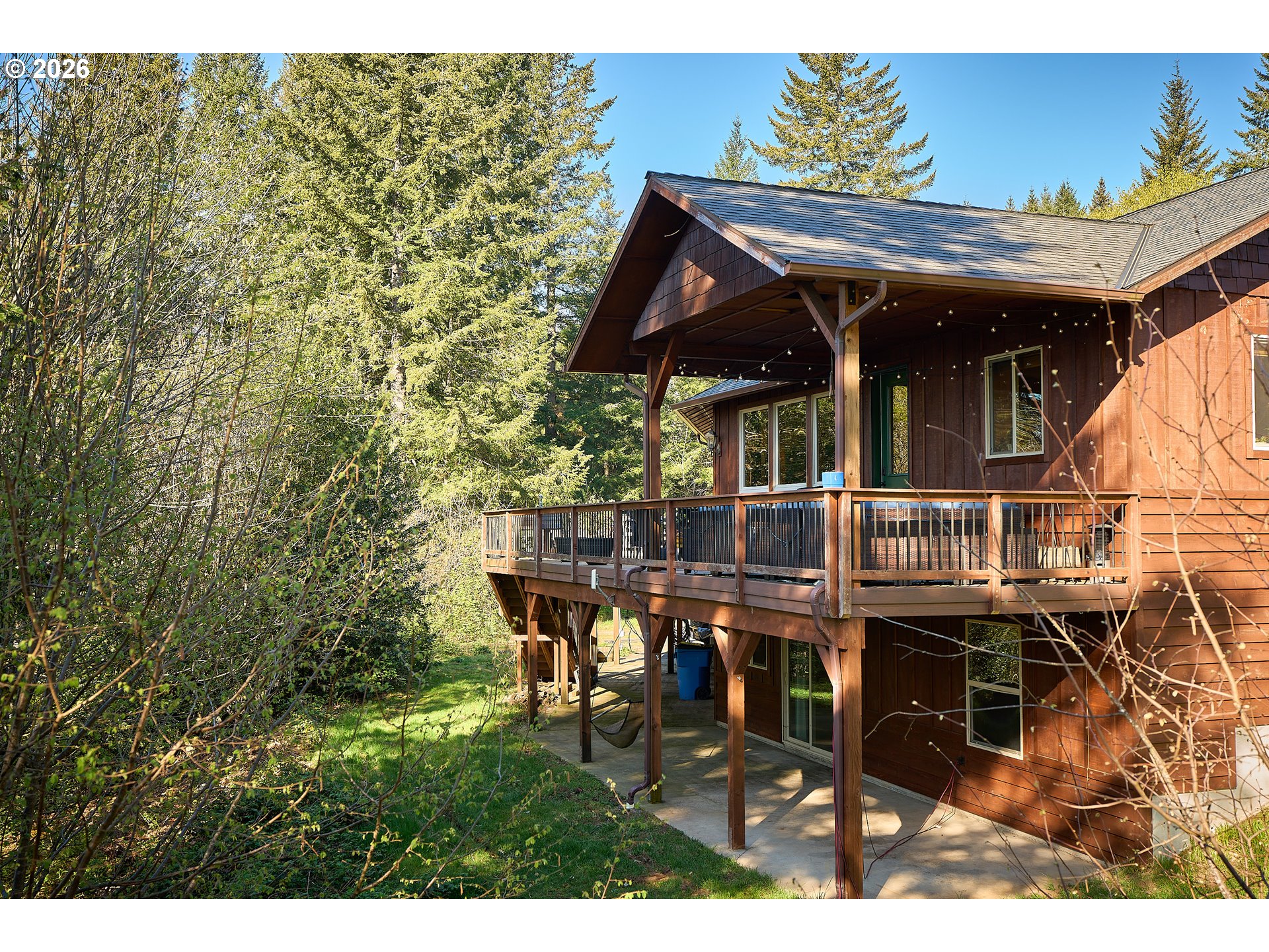 (503) 893-8874Have you ever experienced a property with a seemingly magical ability to melt your stress away as you pull in through your private gate? You’ll find yourself with the urge to drive as slow as possible to take in the incredible views across the river valley while you approach this custom built cabin positioned perfectly in the center of five gorgeous acres. A circular driveway greets you leading to the main entrance, while the pavement continues down and around to the oversized garage on the bottom level. Before you even step inside you’ll be in awe of the incredible landscaping; dozens of species planted with the various seasons in mind mean you’ll be surrounded by flowers for many months. A huge amount of rolling grass land, privacy on all sides from many mature trees, and a few spectacular openings perfectly framing Mt Hood. Inside, the wide open living space is lined with picture windows, a vaulted ceiling throughout, an open kitchen/dining/living layout with the primary suite and second bedroom on the main floor. A large composite deck wraps around the entire south side of the home with a covered section perfect for entertaining and relaxing. Downstairs the home has two additional bedrooms, laundry, and an office/flex space with a sliding glass door to the covered patio. Heating is provided to both floors through a hydronic radiant floor system; the concrete slab downstairs, including the garage, as well as the main floor stay warm all winter long. In the summer you can kick on the ductless mini-splits upstairs for cool AC and the daylight basement naturally stays cool as well! Outside the main home you’ll find a unique two-story “tree-house” inspired art studio, or detached office space floating above a covered patio space with plenty of natural light. For extra storage, the shipping container off towards the side of the property will stay, and the large flat garden area above would be the perfect location for a new shop!