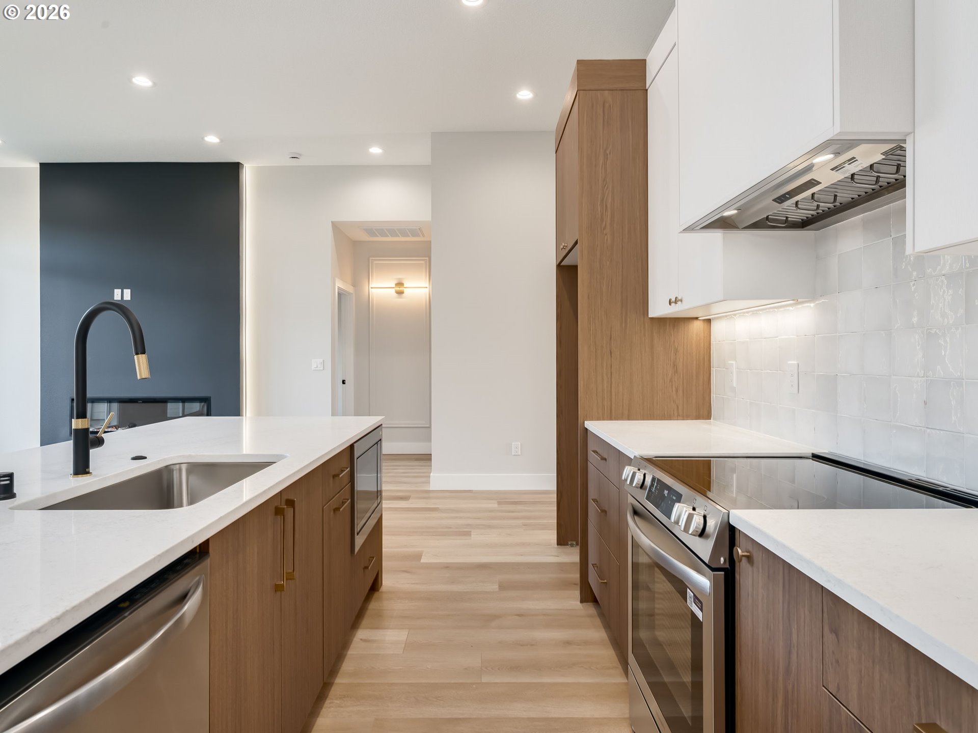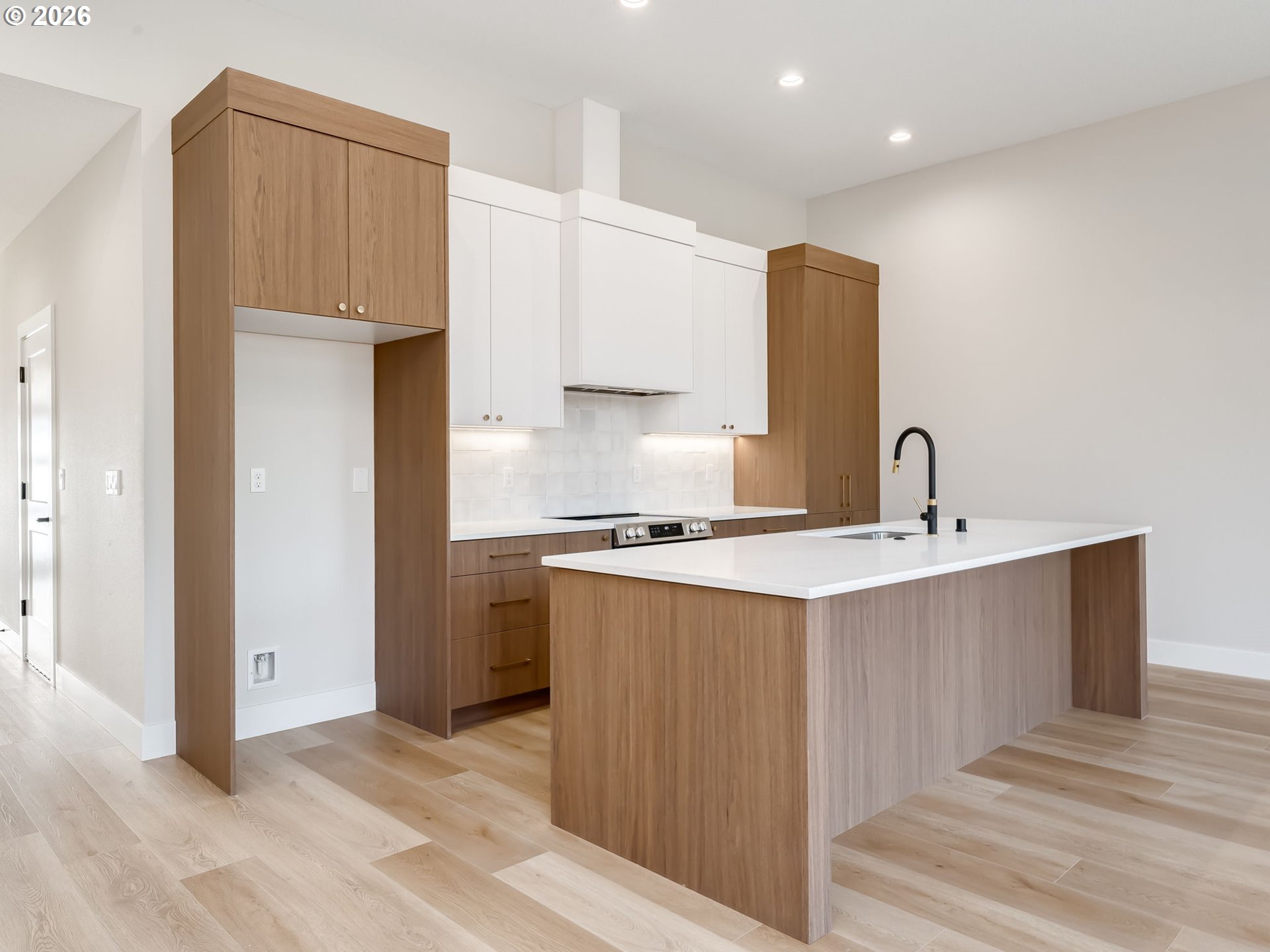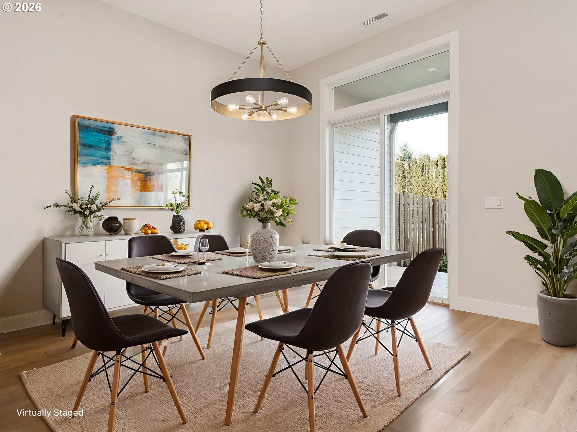 This single-story attached townhome sits on a quiet new cul-de-sac and offers 3 bedrooms, 2 baths, and 1,510 sq. ft. of modern living space. Enjoy an open-concept layout with luxury vinyl plank flooring throughout, a stylish kitchen featuring an island, quartz countertops, dishwasher, inductive electric range, and microwave. The dining area includes sliding doors that open to a covered patio—perfect for outdoor relaxation. The primary suite offers double sinks, a walk-in shower, and a spacious walk-in closet. Situated on a 5,141 sq. ft. lot, this home comes fully landscaped and fenced with a large garage, making it truly move-in ready.