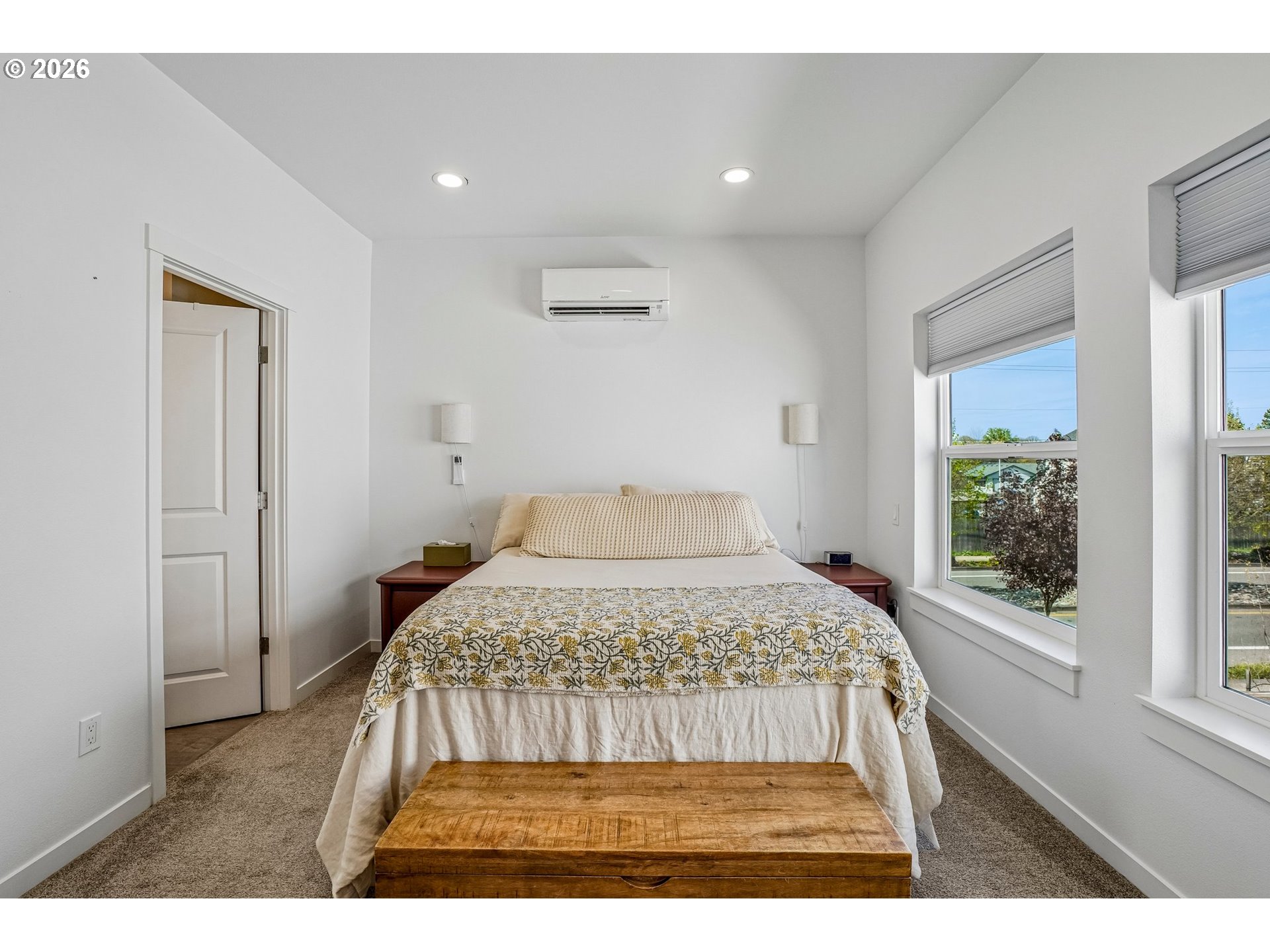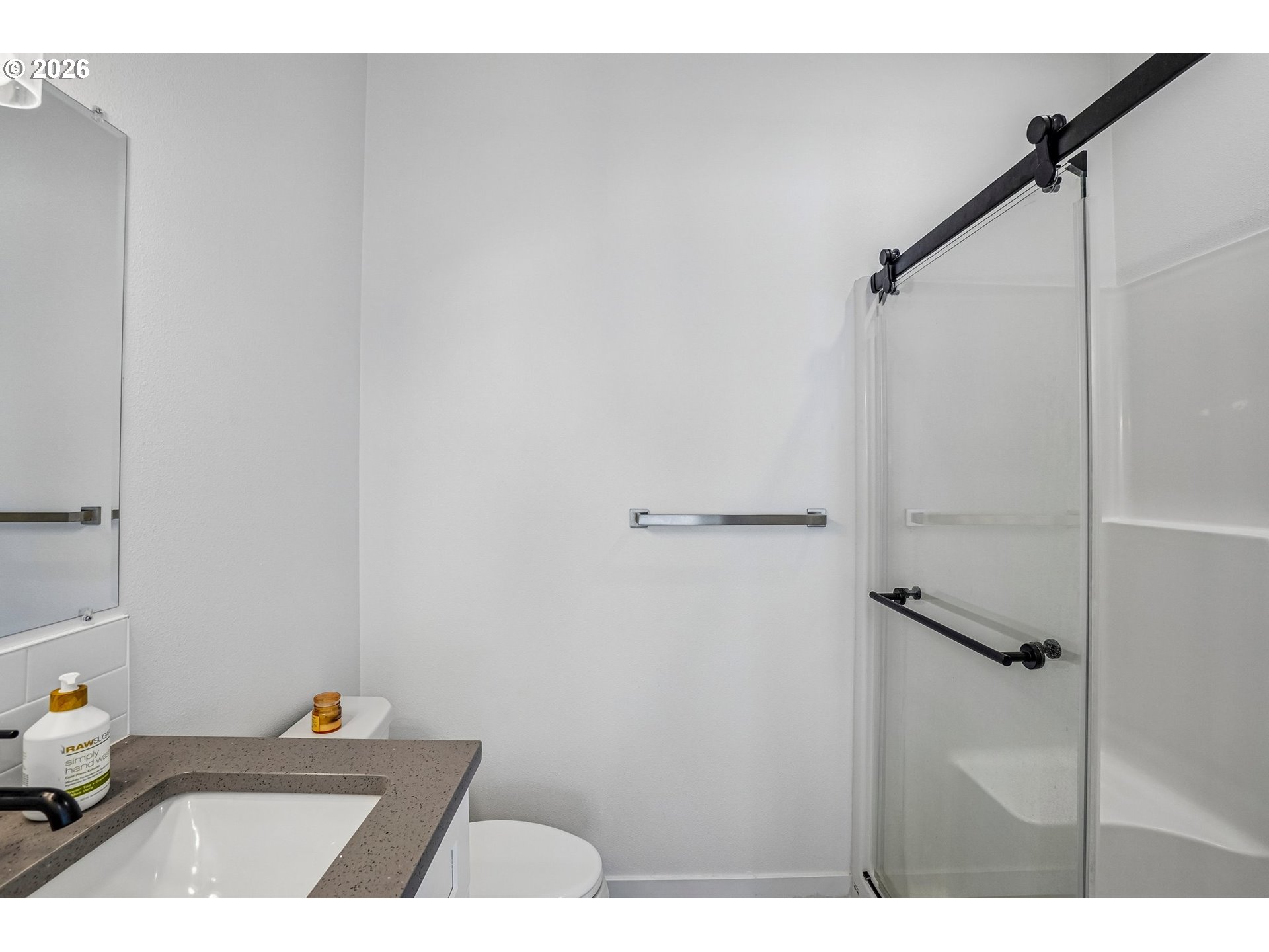 Welcome to this almost-new home tucked away at the end of a quiet dead-end street in a convenient Battle Ground location! Built in 2024, this thoughtfully designed 2-story home offers nearly 1,400 sq ft with 3 bedrooms and 2.5 bathrooms. Step onto the inviting covered front porch and into a bright, modern interior. The kitchen has quartz countertops, stainless steel appliances, and an eat-at bar—perfect for everyday living and entertaining. The main level flows comfortably, while energy-efficient mini splits on each floor keep the home comfortable year-round. Upstairs, all three bedrooms are well laid out for privacy. The primary suite is positioned on one end of the home and features its own bathroom and a spacious walk-in closet. Two additional bedrooms are located on the opposite end along with a full bathroom. Enjoy the fully fenced backyard complete with a patio and a unique bonus—your very own barrel sauna, creating a perfect space to relax and unwind. With modern finishes, energy efficiency, and a peaceful yet convenient setting, this nearly new home is move-in ready and checks all the boxes!