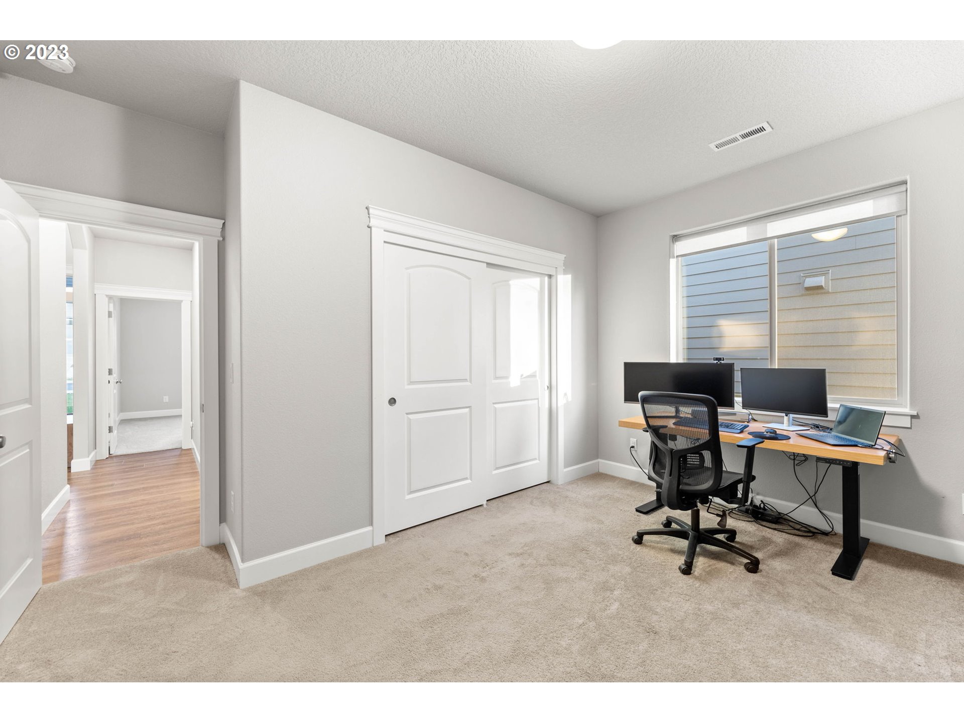 Pristine custom one level with quality finishes throughout. Engineered hardwood in entry, kitchen, dining and living room. Granite slab and custom cabinets in kitchen. ly tiled master bath with double sinks, shower and soaking tub. Three beds and two baths located on a cul-de-sac with territorial views in the heart of Salmon Creek.