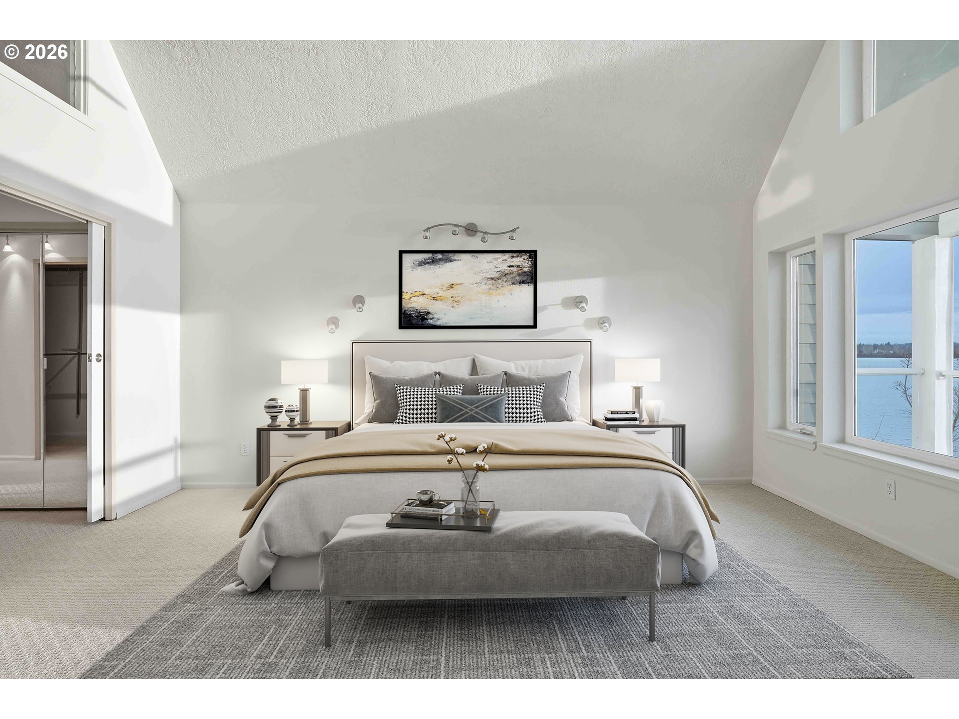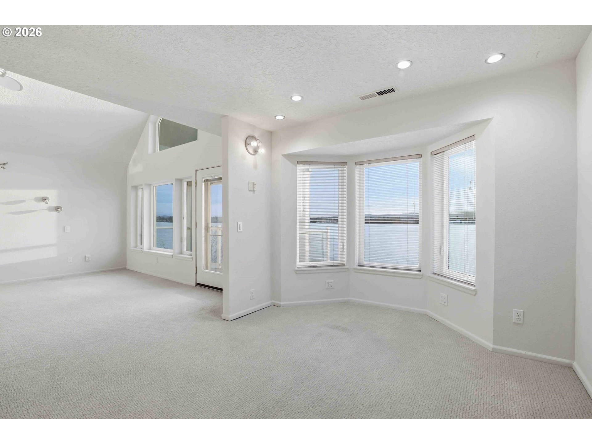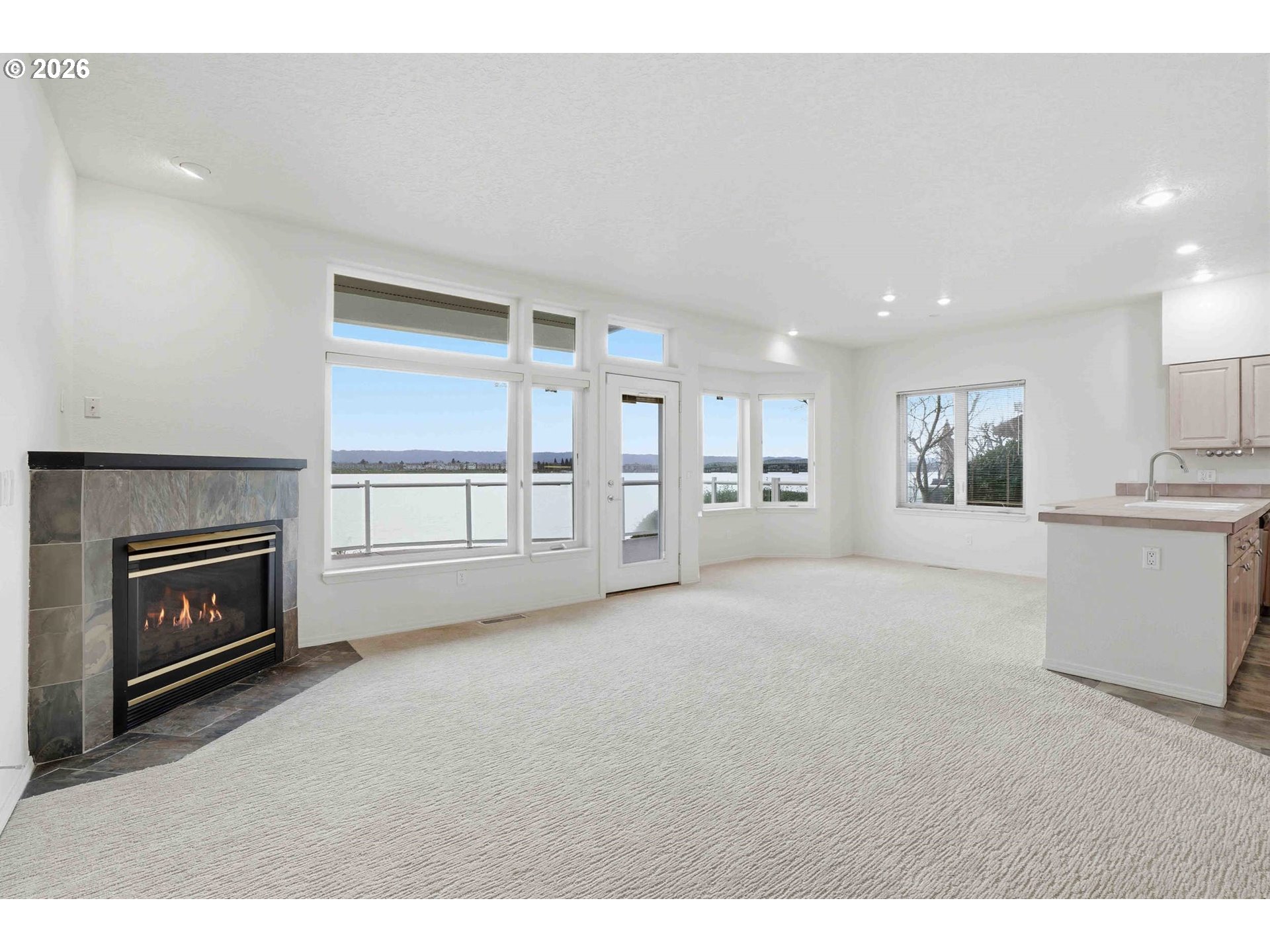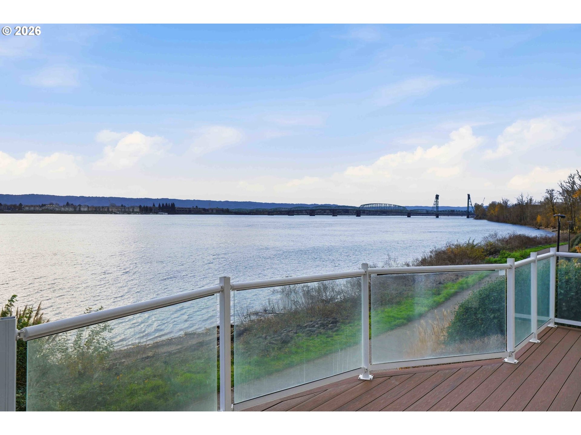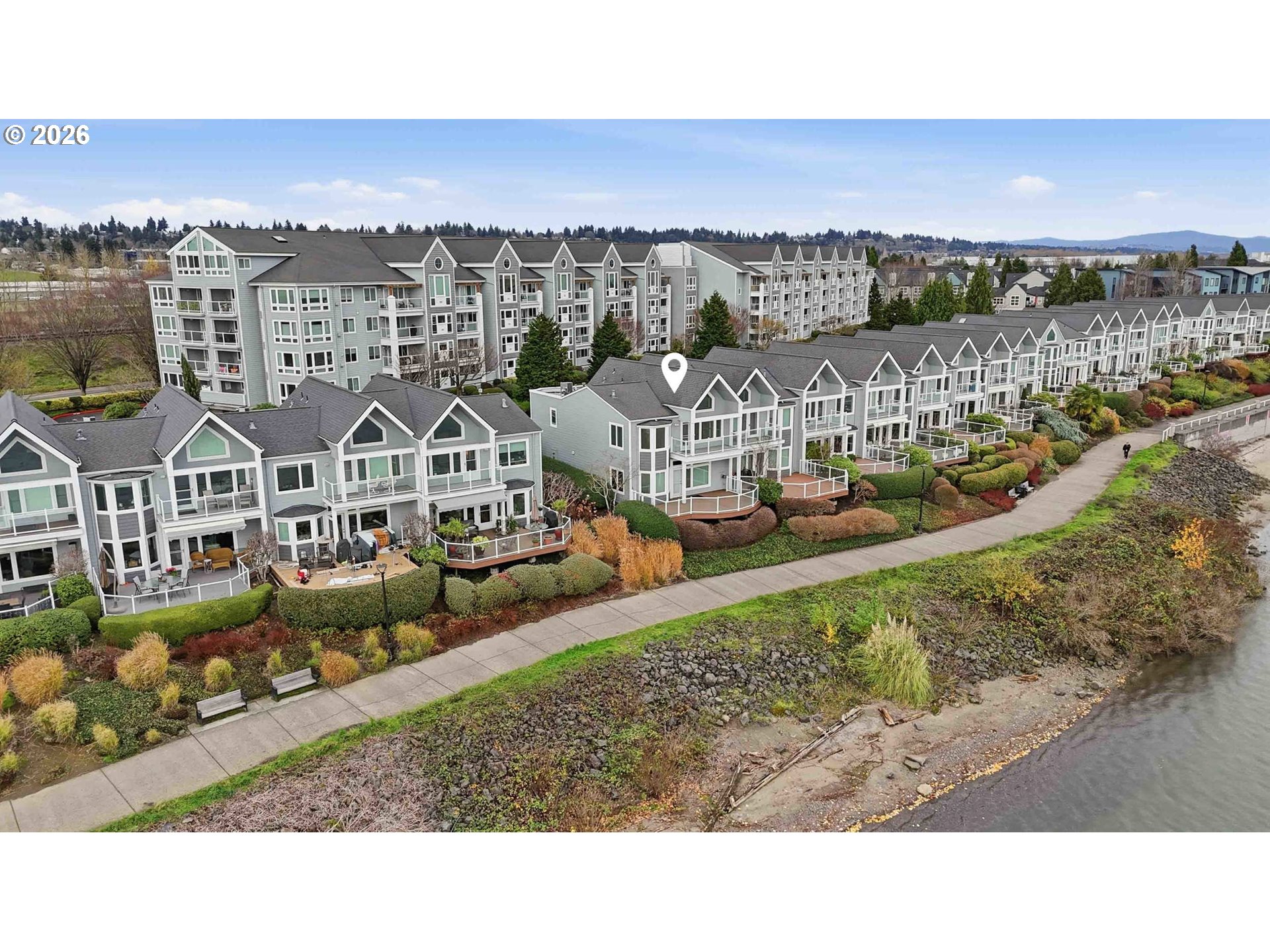 Rare Opportunity to own this Luxury Riverfront Home with 180° Views of the Columbia River, Mt. Hood to Oregon City Lights! This Luxury Condo provides 1,696sf of Living Space, 2 Spacious Bedrooms, and 2.5 Bathrooms. Main Level is Open Concept with High Ceilings with outstanding Views, plus Living Room area has Gas Fireplace, Full Kitchen with Eat Bar, Dining area, and Half Bathroom. Easy access to Large Deck overlooking the Columbia River perfect for Entertaining to simply Relaxing. Primary Suite: Oversized with Stunning Views, Private Balcony, Vaulted Ceiling, Full Private Bathroom with Double Vanity, Walk in Organized Closet, Walk in Shower, and Jetted Tub. Additional Bedroom on second floor with Full Bathroom in Hallway. Attached 2 Car Garage. Plus a deeded additional Detached 2 Car Garage. Gas Furnace with AC. Clubhouse featuring Party Room, Spa, Pool, Gym + Weights. This truly is a Lifestyle opportunity to live directly on the Columbia River with Beach Access, Walking/Biking Path to nearby Restaurants and Coffee Shops. Quick access to Highway 14, and minutes to Portland and the PDX Airport.