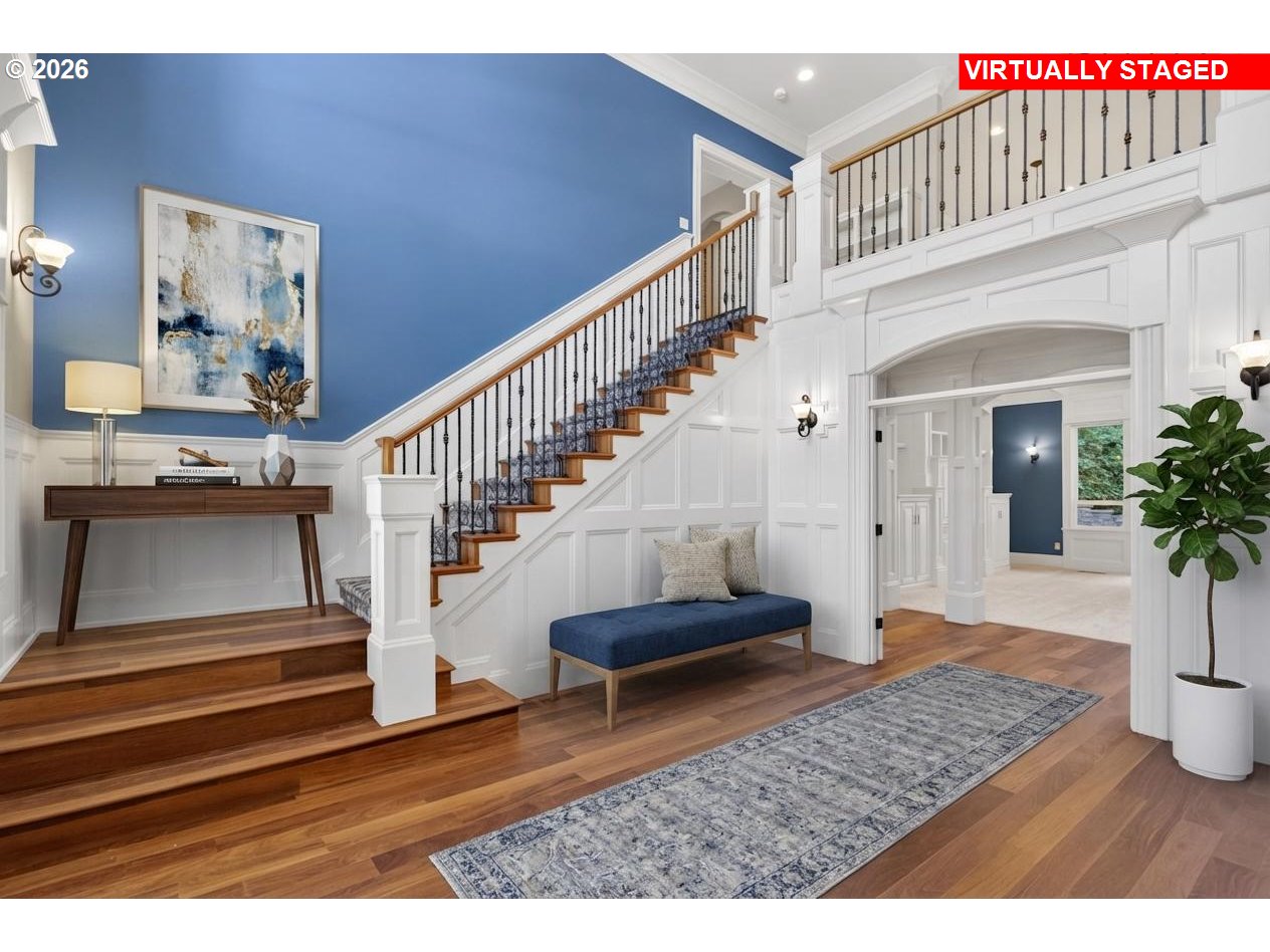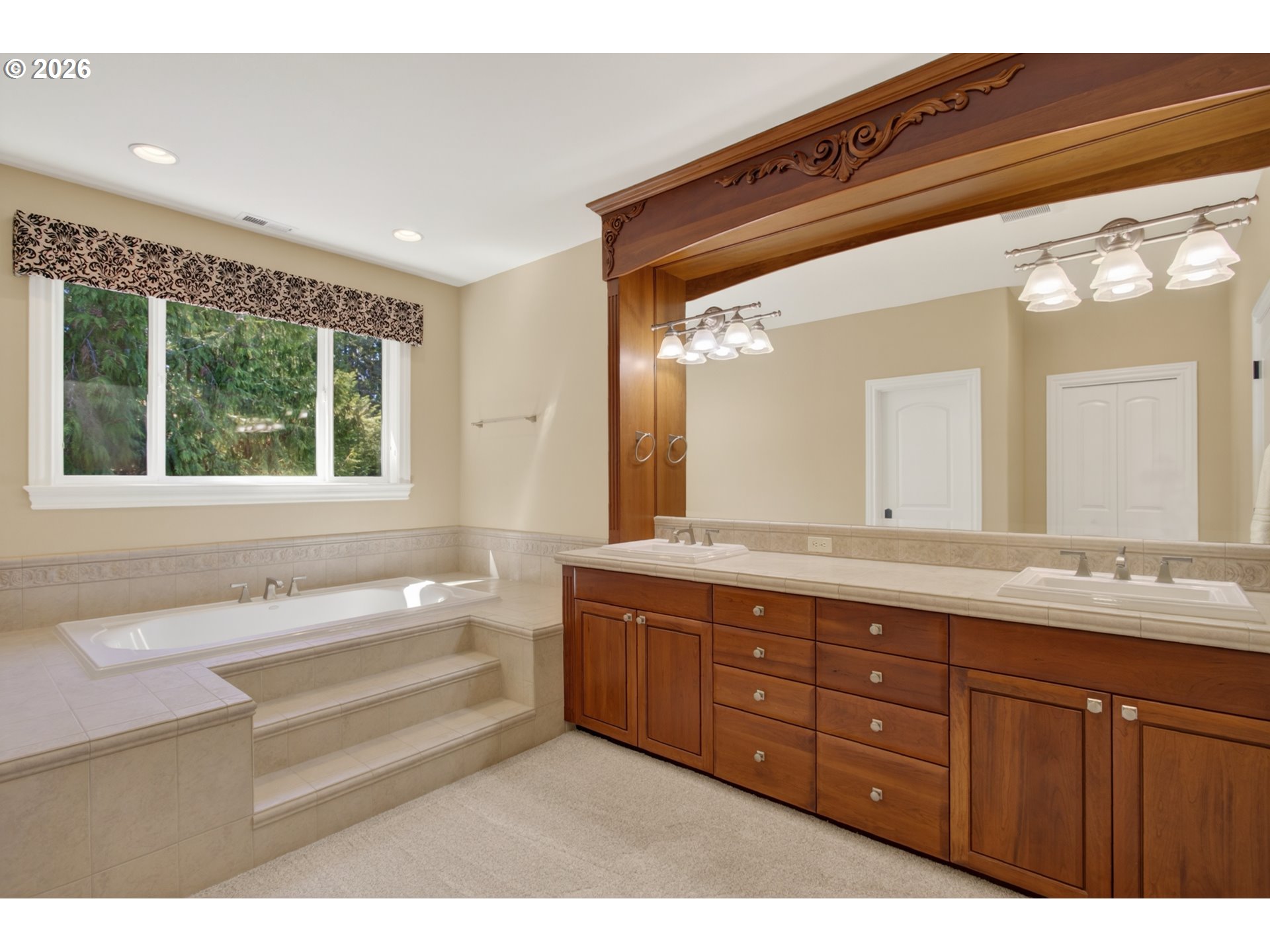 Stately built custom home in Premier Ashley Heights neighborhood. One of Clark County's most recognized addresses and a former Parade of Homes community — this traditional home delivers the space, craftsmanship, and livability today's buyers are looking for. Set among 274 custom-built homes with approximately 20 acres of private parks, scenic trails, the neighborhood "Gazebo" park, and natural forest bordering Salmon Creek to the north. Inside, the home showcases custom millwork, arched doorways, transom windows, and hardwood floors. The two-story family room opens through French doors to a beautifully finished stone patio and manicured backyard featuring mature azaleas, flowering trees, and established shrubs. The custom kitchen includes a large island, built-in bench seating, and extensive cabinetry. Extensive built-ins and a large dedicated office space add practical flexibility — well-suited for a home-based business or library. Upstairs, four generously sized bedrooms include three rooms measuring approximately 20×25, each with window seats and large closets. The primary suite features a fireplace, window seat, soaking tub, and dual sinks. New carpet throughout. This is a move-in ready home with enduring character in one of the area's most sought-after neighborhoods.