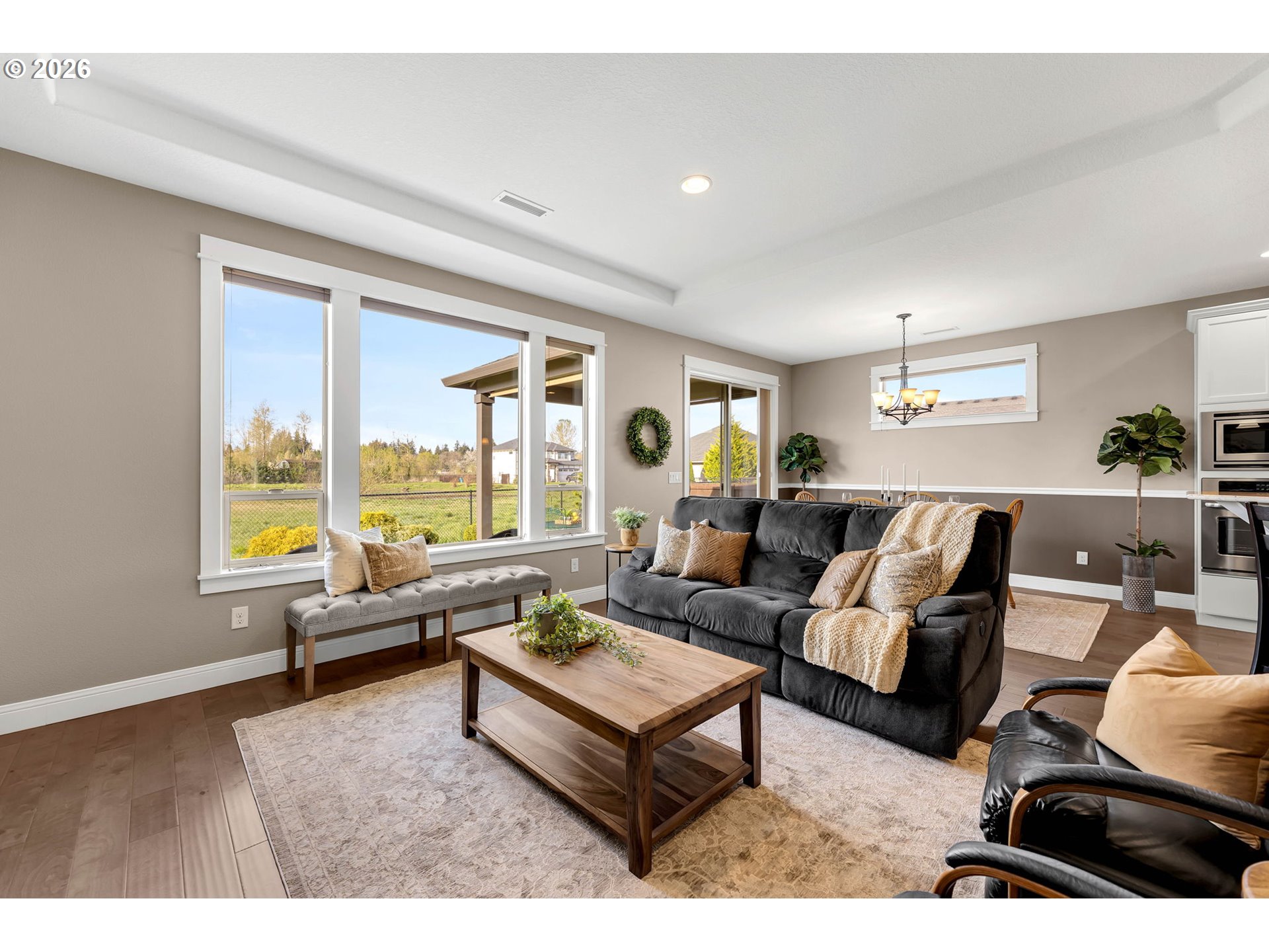 Welcome to this beautifully maintained, single-level home tucked into a peaceful greenbelt setting in Vancouver! This 3 bedroom, 2 bathroom home offers easy, open-concept living with engineered hardwood floors throughout the main living areas and large windows that bring in natural light while showcasing the greenbelt views. The great room opens into a warm space with a gas fireplace to gather around, creating a comfortable setting for both everyday living and entertaining. The kitchen has been thoughtfully designed with a large island, granite countertops, a built-in range, oven, and microwave, plus ample storage including pull-out cabinet shelving and a deep walk-in pantry. The primary suite offers a private retreat with a custom tiled shower, double vanity, and a large walk-in closet. Additional bedrooms provide flexibility for guests, work, or hobbies. You’ll find storage in all the right places, with linen closets in both bathrooms, an additional linen closet in the laundry room, and functional storage throughout. Step outside to the oversized covered patio overlooking the greenbelt, creating an ideal place to relax, entertain, and enjoy the setting while watching a variety of birds. The oversized 3-car garage and storage shed provide even more room for your needs. Meticulously maintained and truly move-in ready, this home offers a blend of comfort, function, and a natural backdrop. Open Saturday, April 18th from 1-3pm.