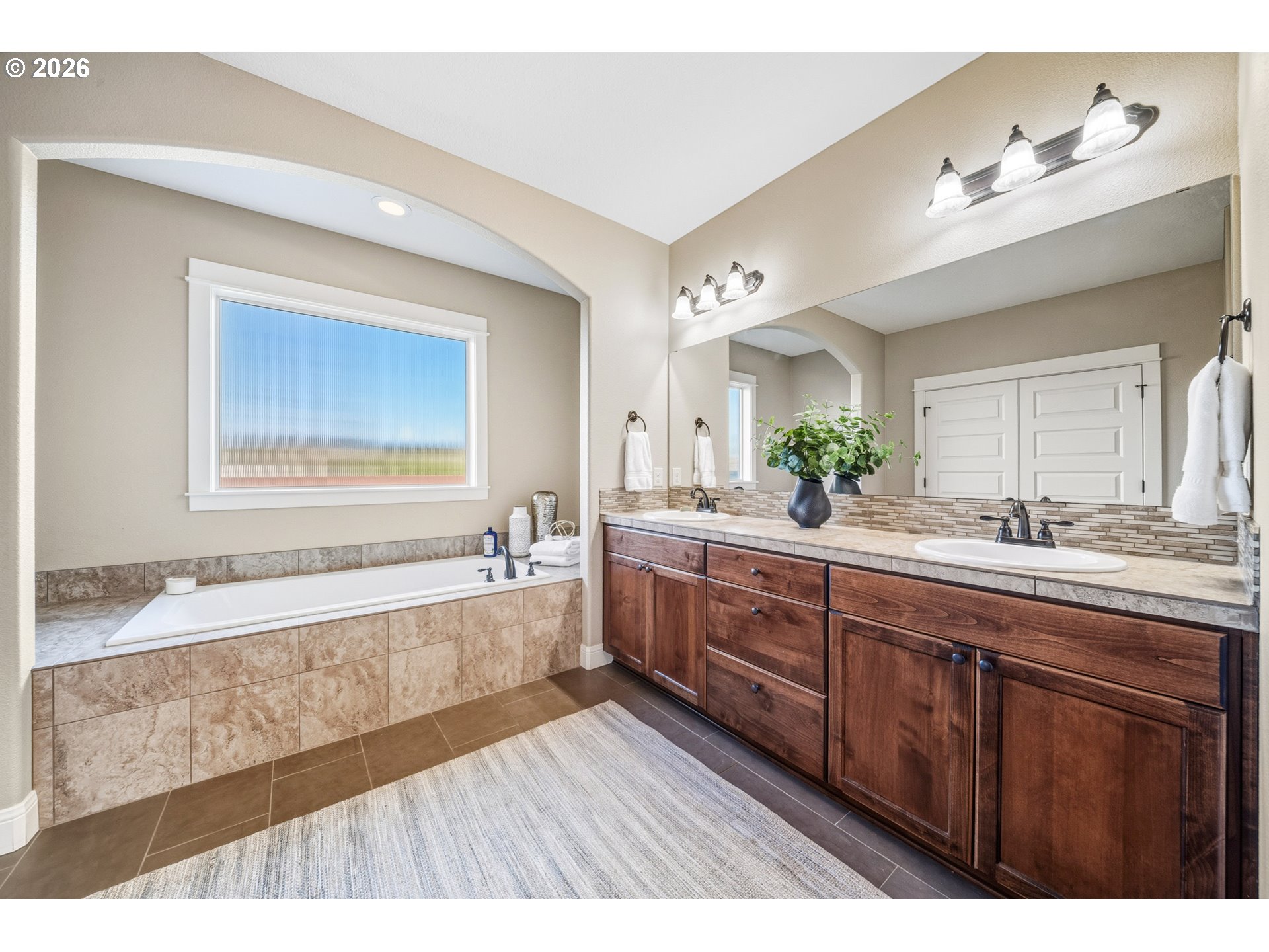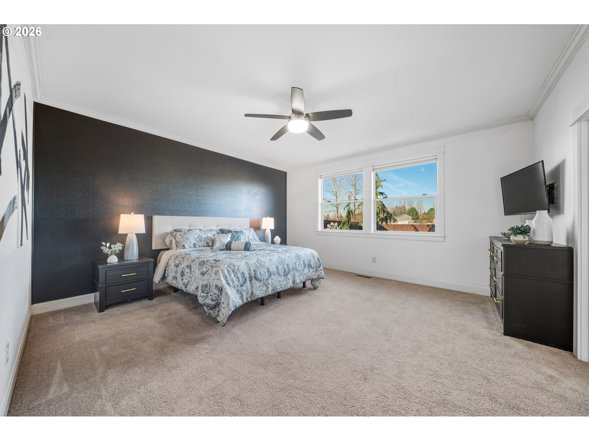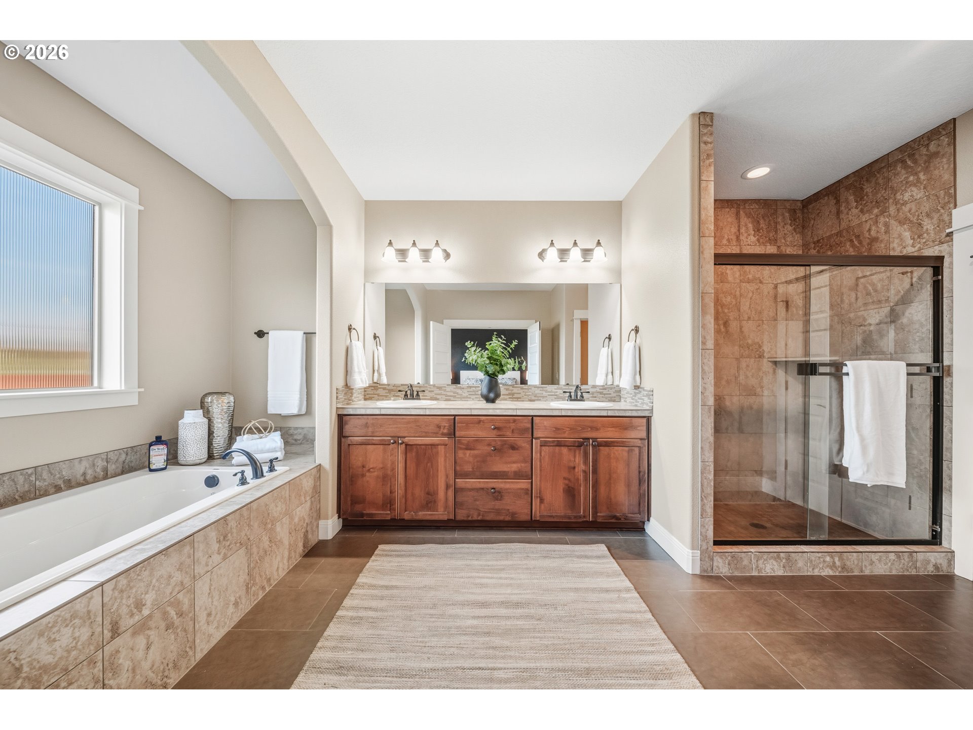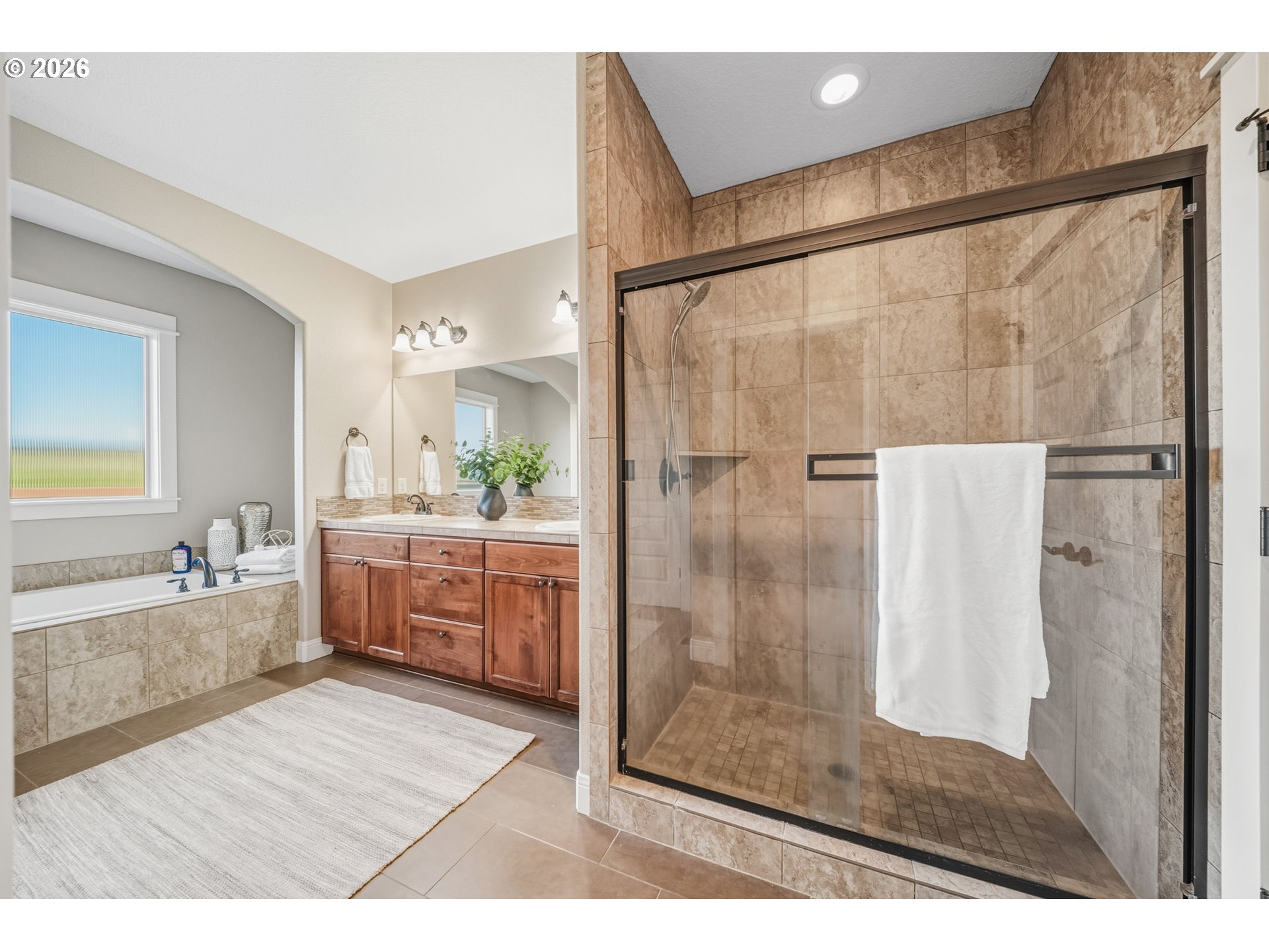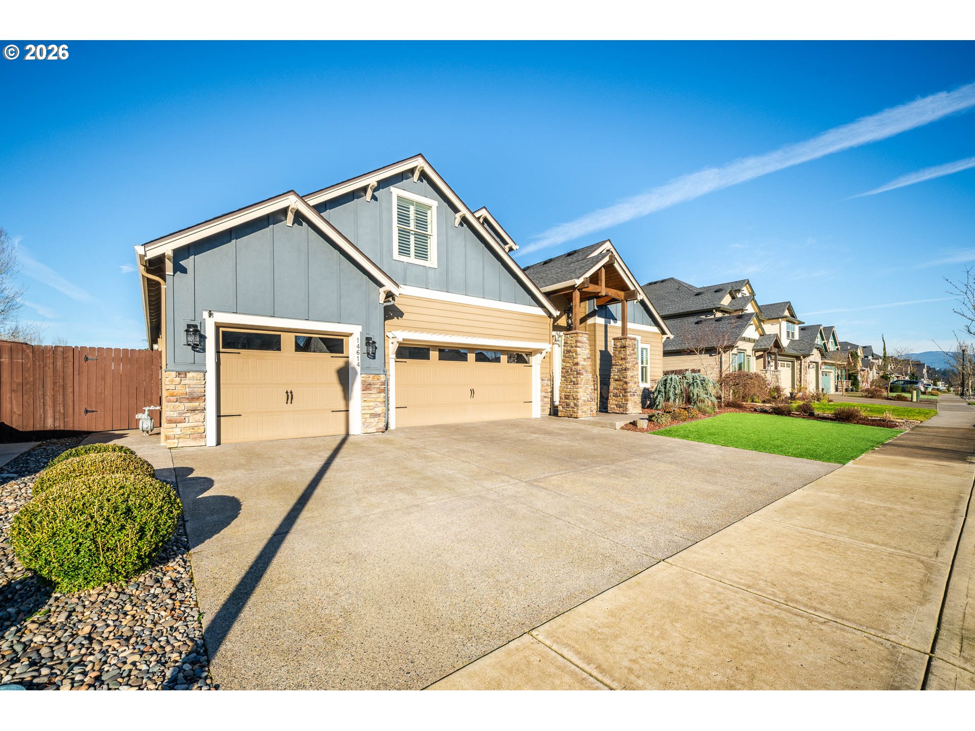 OPEN HOUSE SUN 1/18 12-2 Pride of ownership shines in this stunning 3,226 sq ft home located in the sought-after Fieldstone Estates, set on a private .24-acre lot backing to peaceful greenspace. Featuring 4 bedrooms, 3 full baths, a den, and a huge upstairs bonus room with bedroom ideal for multigenerational living, this home offers exceptional flexibility. The primary suite on the main level is a true retreat with a spa-like bath and walk-in closet. Enjoy a gourmet kitchen with granite, stainless appliances, expansive island, and butler’s pantry, opening to a spacious great room with custom built-ins. Engineered hardwoods, custom lighting, ample storage, and a 3-car garage with built-ins and an electric car charger enhance daily living. The professionally landscaped yard includes low-maintenance turf, a covered patio with heaters, outdoor BBQ area, lighting, shed, and exceptional privacy. This one checks all the boxes!
