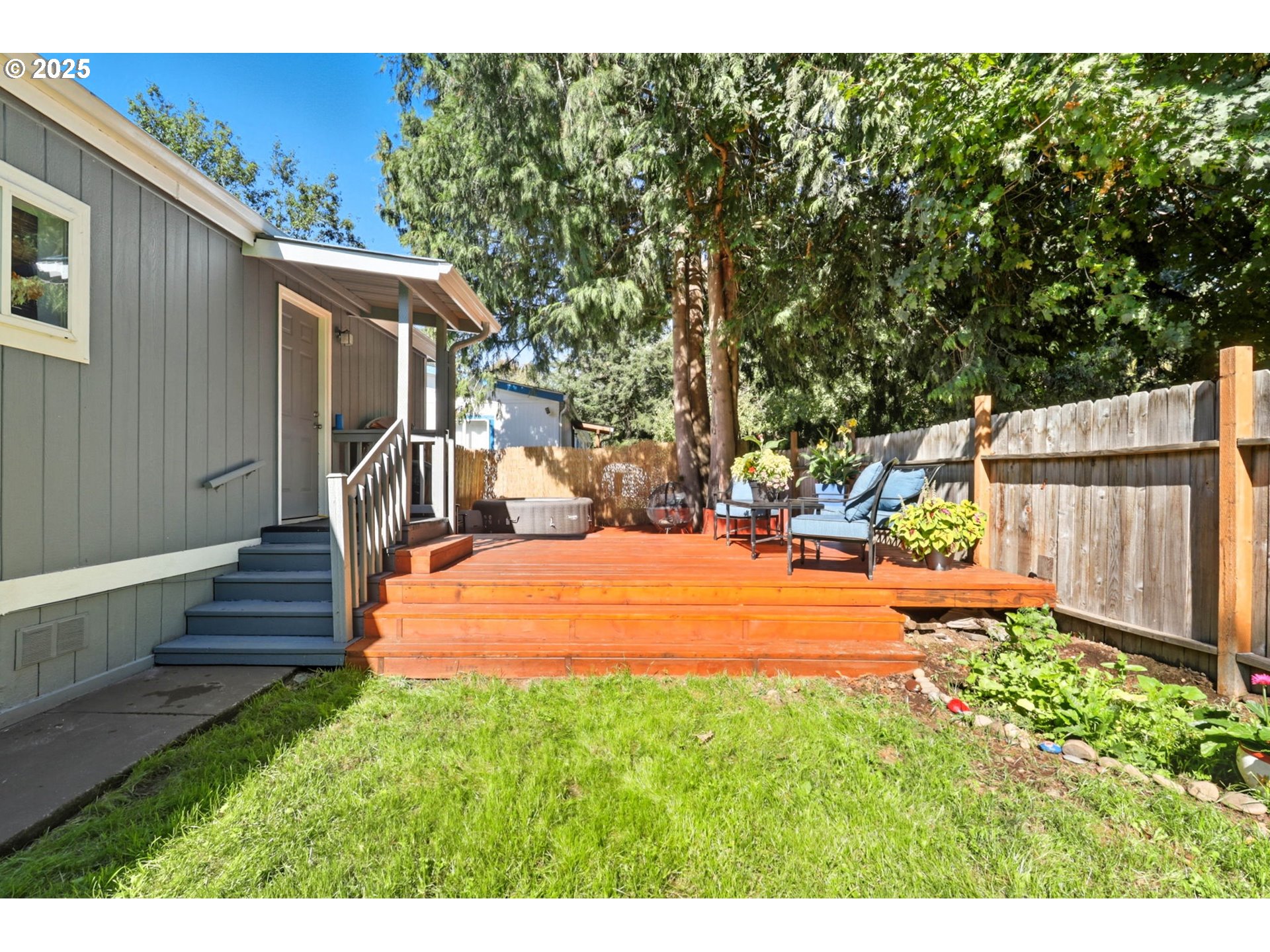Located at the end of a quiet cul-de-sac, this beautifully updated home offers both privacy and charm, along with a spacious yard that’s hard to come by. Step inside to discover a bright and inviting 3-bedroom, 2-bath layout with vaulted ceilings, light hardwood floors, and an open design filled with natural light. The kitchen features Whirlpool appliances, mahogany cabinets, and a stylish tile backsplash. The spacious primary suite includes a walk-in closet and a remodeled bath with jetted tub, full tile surround, and updated fixtures. The backyard is designed for relaxation and fun: enjoy evenings on the expansive redwood deck, soak in the SaluSpa hot tub, or tend to the greenhouse and garden space. Bamboo privacy screens and fencing create a tranquil retreat.Recent updates bring peace of mind, including a newer roof with transferable warranty, energy-efficient windows, fresh interior paint, and a new hot water heater. Located just steps from Tiger Tree Park and minutes to shopping, dining, and schools, this move-in-ready home blends comfort and convenience with a truly special setting. With no HOA and one of the lowest space rents in all of Clark County, this home is a rare find. Schedule your showing today!