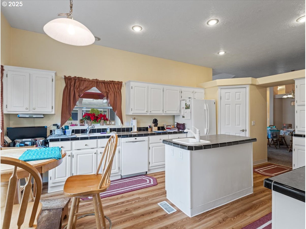 Spacious 3BD/2BA with open floor plan, vaulted ceilings, and great natural light. Large kitchen with oversized island, extensive cabinetry, and generous counter space. Family room features a wood-burning fireplace. The primary suite includes a walk-in closet and a private bath. Both bathrooms have been updated. Recent improvements include a new heat pump, newer exterior paint, and a newer patio. Roof approx. 10 years old. Convenient location close to shopping and services. Well-maintained home with practical updates throughout.Triple-wide manufactured home on its own large lot — no space rent.