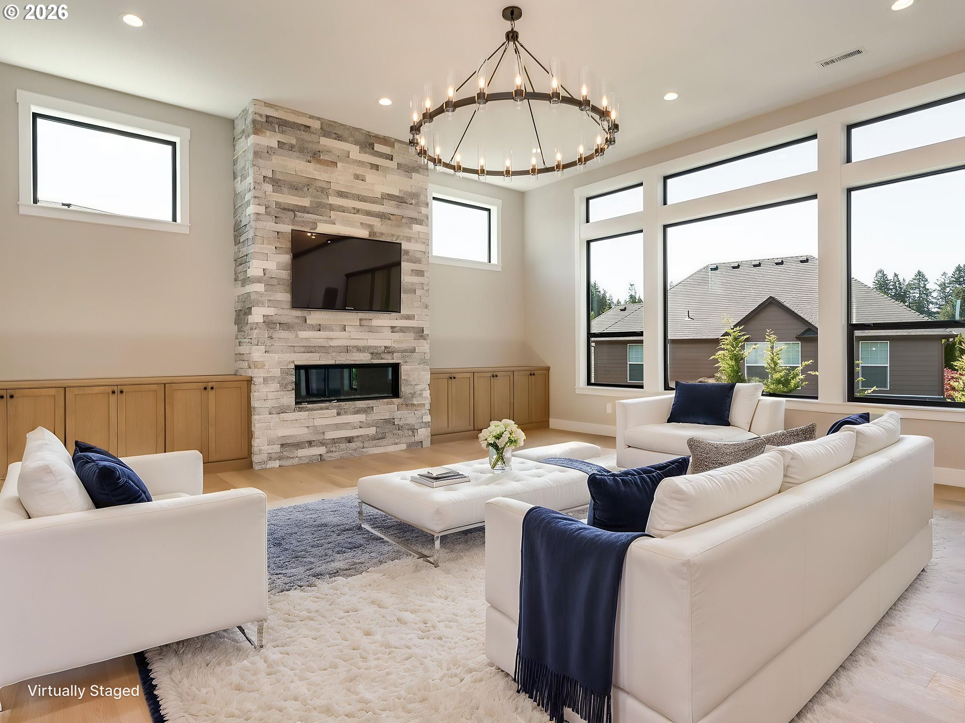 Stunning new construction now complete in gated Martin Meadow! Skip the wait of building and move right into this newly completed luxury home in this highly sought-after gated community. Offering 3,616 square feet of refined living space, this 4-bedroom, 3-bathroom residence was designed to impress. The breathtaking great room features soaring 12-foot ceilings, abundant natural light, and a striking floor-to-ceiling stone fireplace. It flows seamlessly into a true gourmet kitchen with beautiful wood cabinetry, a massive quartz island, high-end built-in appliances, walk-in pantry, and a beautiful bar area. Step through the sliding doors off the dining room to enjoy year-round outdoor living on your expansive covered deck overlooking the trees. The thoughtfully designed split-bedroom floor plan ensures privacy. On one wing, the primary suite serves as a true sanctuary with a coffered ceiling and a spa-like bath featuring dual vanities, a massive walk-in closet, a glass-enclosed rain shower, and a free-standing soaking tub. The opposite wing houses a vaulted den/office and a second bedroom with an adjacent full bath. Downstairs, the beautifully finished walkout basement offers incredible secondary living space, including a sprawling family room, two additional large bedrooms, a full bath, and access to a lower covered patio. With a 3-car garage, pristine landscaping, and impeccable modern design throughout, this dream home is ready for you now.