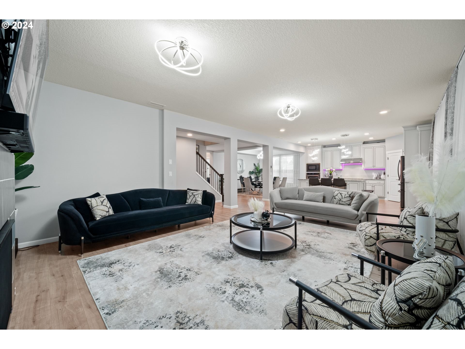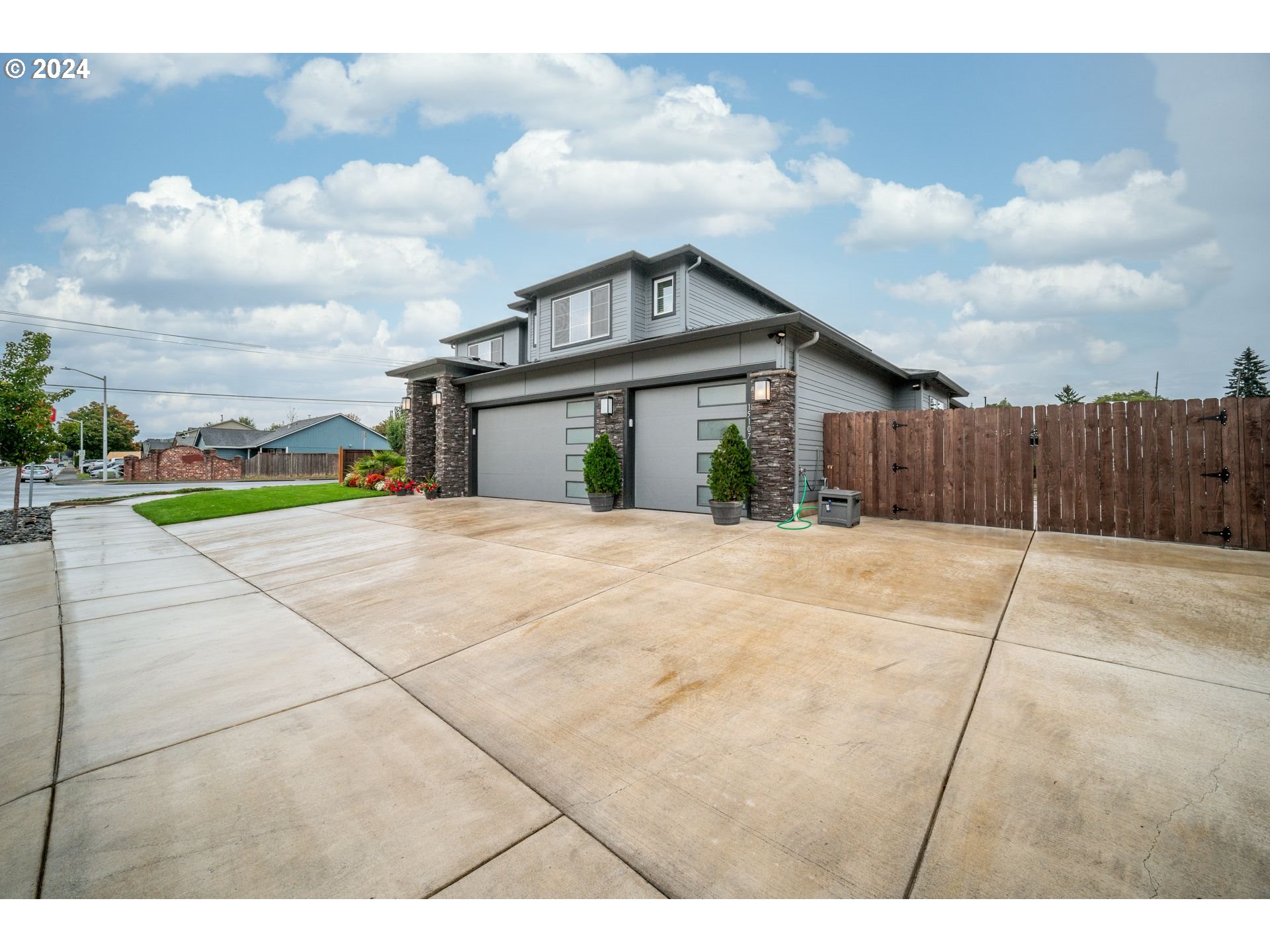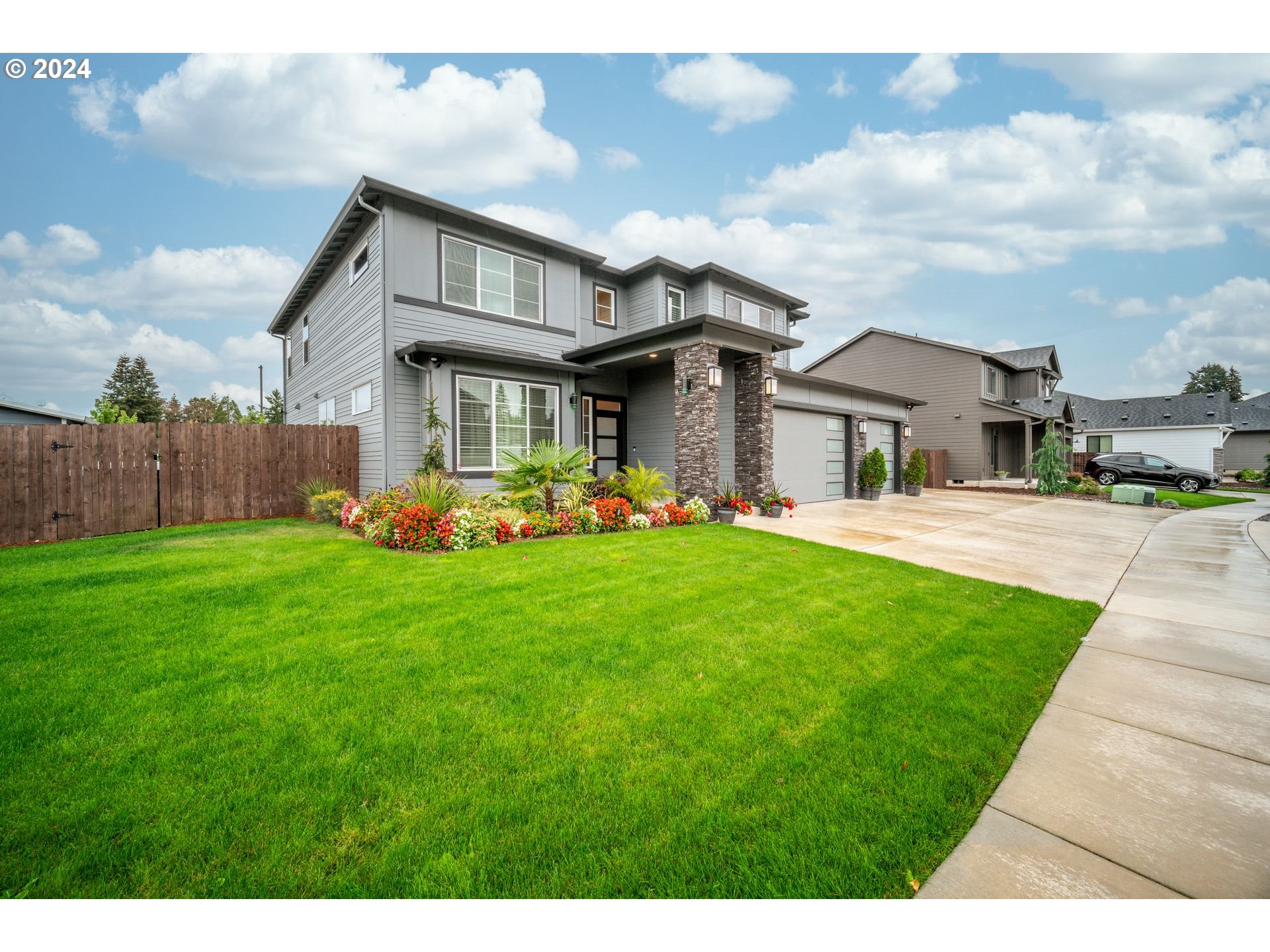 Stunning custom-built two-story home packed with upgrades! This spotless residence features a bright, open great room with soaring windows, a gourmet kitchen with custom cabinetry, slab quartz counters, tile backsplash, stainless steel appliances, and a spacious island. Elegant finishes include hardwood floors, iron-detailed staircase, coffered ceilings, and a stone-accented gas fireplace. The main level offers a guest suite with bath, a private office/den, and 10’ ceilings (9’ upstairs). The luxurious primary suite boasts dual sinks, soaking tub, walk-in shower, and expansive walk-in closets. Enjoy outdoor living on the covered patio with gas hookup for BBQ, beautifully landscaped fenced yard with sprinkler system, tool shed, and wide driveway. Conveniently located, just minutes to freeways, shopping, parks, and schools. Premium corner lot—this home truly has it all!