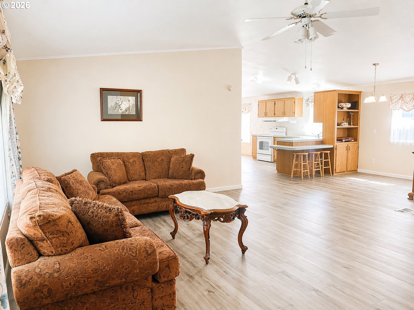 Welcome to Country Hills Estates in La Center—where you own the land and enjoy low-maintenance living with no space rent! This well-maintained 1993 Good Cents Lamplighter manufactured home offers 1,512 sq ft of comfortable living space with 3 bedrooms and 2 bathrooms.Inside, you’ll find spacious rooms, vaulted ceilings, and attractive laminate flooring throughout. The versatile den features built-in cabinetry and a desk—perfect for a home office, hobby space, or additional living area.All appliances stay, making this home truly move-in ready. Step outside to a welcoming front porch deck where you can relax and take in a pleasant territorial view of the Lewis River Valley. The property is fully fenced, offering privacy and space for pets. Exterior side entrance has a very nice handicapped ramp for easy in & out maneuvering A standout feature is the large shop, ideal for RV or boat storage, a workshop, or hobby use—hard to find in this community!HOA is just $100/month and includes water, road maintenance, and access to the community clubhouse.Don’t miss this opportunity to own a home with land in a peaceful setting just minutes from I-5, Ridgefield Costco & Ilani Casino !
