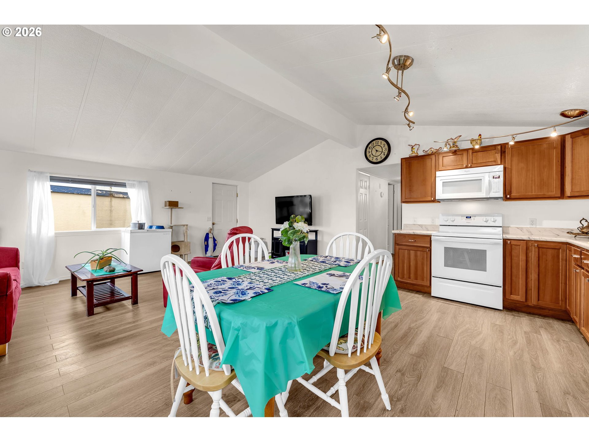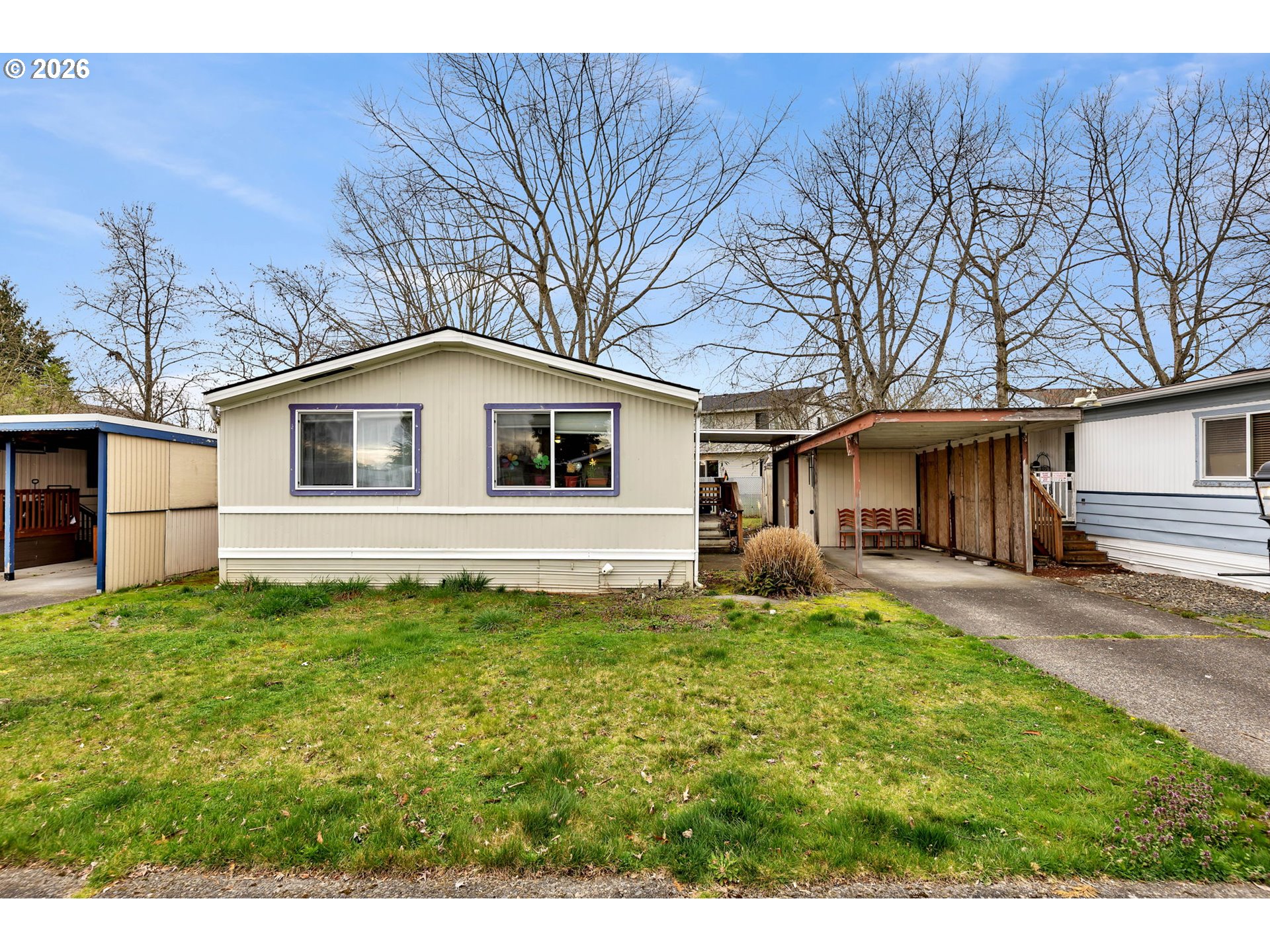 Welcome home to comfortable and convenient living in this well-maintained double-wide located in a desirable 55+ community with lower space rent than many nearby parks. Ideally situated directly across from the community recreation room, this home offers easy access to social activities and gatherings. With 960 square feet, the home features 2 bedrooms and 2 bathrooms, including a spacious primary suite with a private ensuite bath and relaxing jetted tub. The main living area is bright and welcoming, highlighted by luxury vinyl plank flooring, vaulted ceilings, and abundant natural light. Additional features include air conditioning, upgraded blinds throughout, in-home laundry, and a thoughtful floor plan designed for comfortable everyday living. The property also offers a covered carport, storage sheds, and extra parking for guests. Enjoy the convenience of a great location near shopping, dining, and everyday amenities, with a bus line nearby and a park located just across the street. Water and sewer are included in the space rent, adding to the overall value. Clean, bright, and move-in ready—this is an excellent opportunity to enjoy affordable, low-maintenance living in a welcoming 55+ community. Wall mount TVs, washer, dryer, and fridge included.
