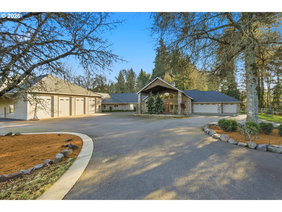(503) 893-8874Custom-designed Craftsman-style lodge home offering primarily main-level living on 10 private acres with a gated driveway. A desirable blend of flat, usable land and wooded acreage with a creek and walking trails. This stunning property is conveniently located just 5 miles from the I-5/I-205 interchange and Legacy Salmon Creek Medical Center, with the east side of the WSU campus directly across the street, making it ideal for privacy without sacrificing accessibility. The heart of the home features a dramatic two-story vaulted great room with a massive river rock wood-burning fireplace, slab granite hearth, wall of wood-framed windows, and an open-rail loft overlooking the space. The open-concept great room, kitchen, and dining area are perfect for entertaining and large gatherings. An elegant curved staircase leads to a spacious loft with views on both sides. The king-sized primary suite includes a striking two-story octagonal retreat area and a luxurious bathroom with two walk-in closets, walk-in shower, jetted tub, and double vanities. Second and third bedroom (3rd bedroom doesn't have a closet) suites offer French doors to a patio walkway overlooking the backyard and the potential to add ensuite bathrooms. The lower-level family room includes a wet bar, large storage room, and potential for conversion to a separate living suite or caretaker’s quarters. An oversized attached three-car garage includes a bonus room with a heater and backyard access, ideal for gardening or pets. Completing the property is an attached 4,200 SF dream RV garage/shop with two 50,000 BTU propane heaters, four 14’ x 10’ roll-up doors, RV carport is 14'4" high by 50' deep and 13'2" wide with water/sewer/phone/cable and 50 amp service, RV hookups inside and outside the shop, making this an exceptional opportunity for multi-generational living, hobbyists, or those seeking a private estate-style retreat.