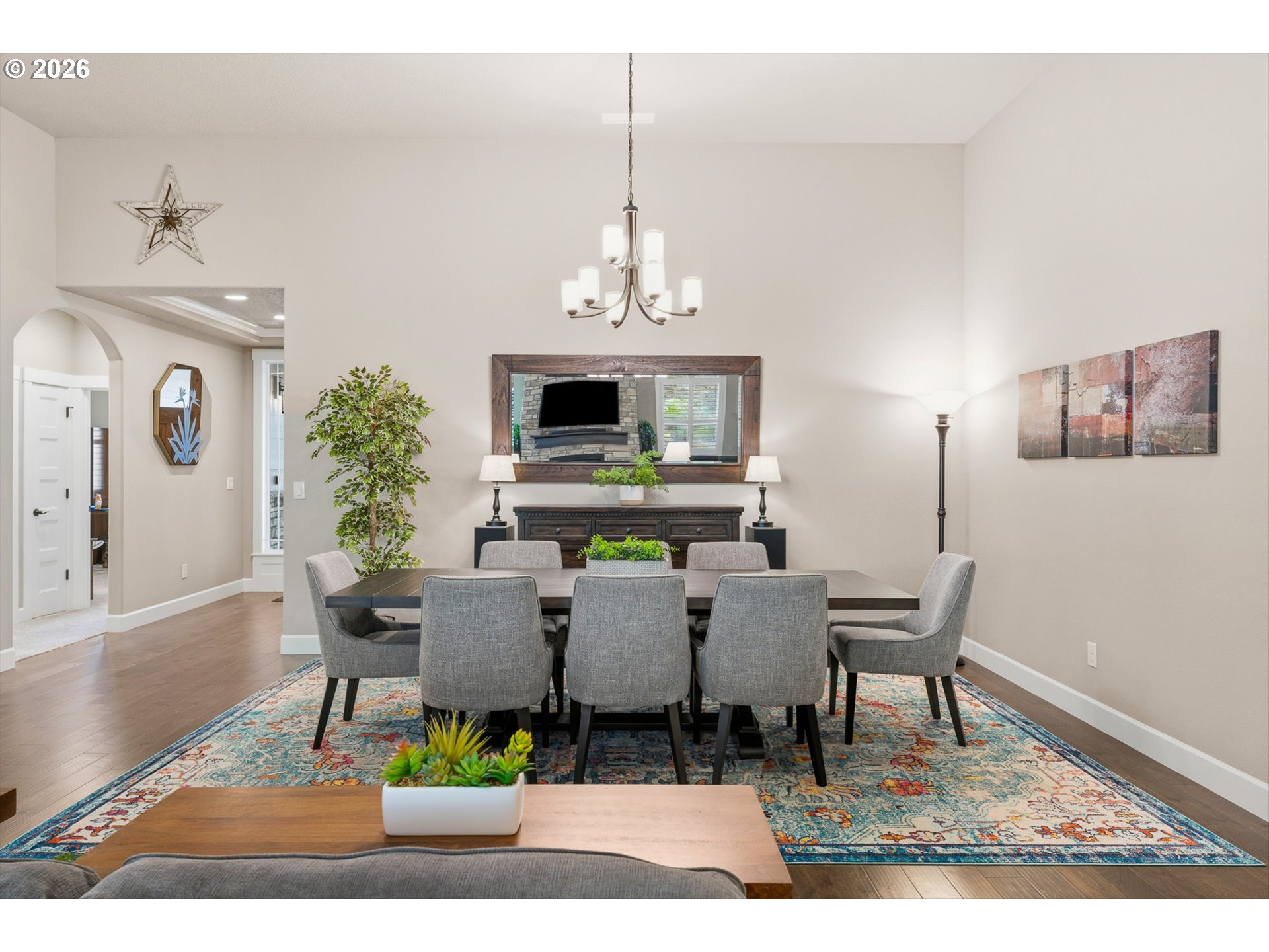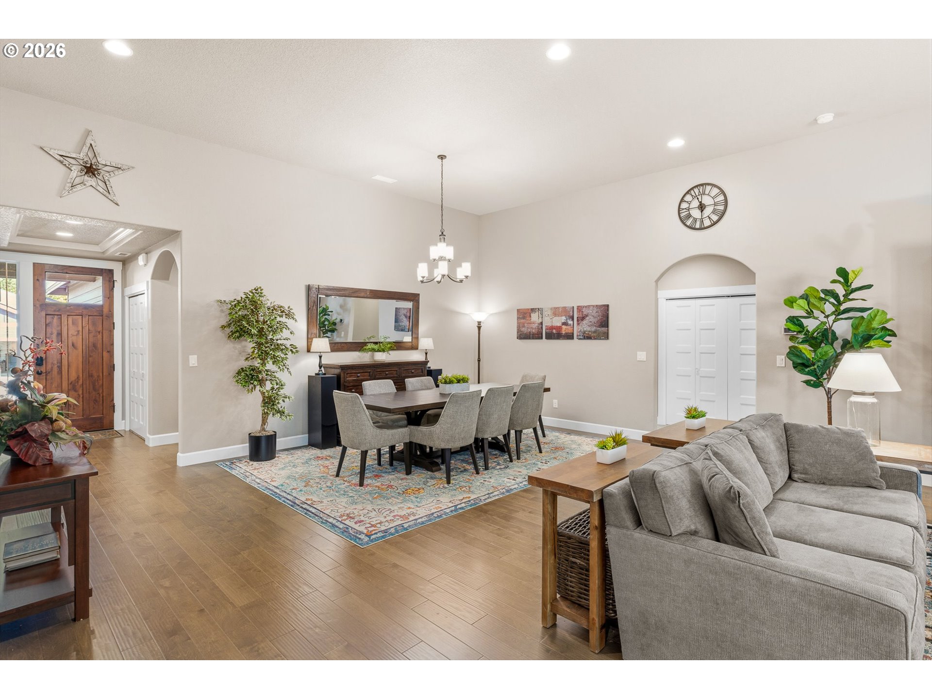 Tucked at the end of a quiet cul-de-sac in Taverner Ridge, this Energy Star certified single-level ranch delivers effortless, elevated living — built in 2021 by Summerplace Homes and barely lived in, with less than a year of total occupancy. It presents like new construction without the wait.The open 2,600 SF floor plan features 4 bedrooms, 3.5 baths, vaulted and high ceilings, engineered hardwood floors, and a great room with gas fireplace and built-ins. The gourmet kitchen offers quartz countertops, double ovens, gas cooktop with range hood, stainless appliances, pantry, and a large island. The primary suite includes a coved ceiling, walk-in shower, double sinks, and walk-in closet. A whole-home Springwell water filtration system, tankless water heater, and 95%+ efficiency furnace reflect quality throughout. The fully fenced, landscaped yard features a covered patio, sprinklers, and an extensive drainage system for year-round usability. True 3-car side-by-side garage. All wall-mounted TVs and great room soundbar convey. Ridgefield Schools. Parks, walking trails, and the Ridgefield National Wildlife Refuge are minutes away — where seasonal bird migrations are a genuine neighborhood backdrop. And when you're ready for more, Ridgefield's rapid growth has brought Costco, In-N-Out Burger, and a wave of new shopping and dining options, plus nearby Ilani Casino & Hotel. This one is move-in ready — because someone made sure it would be.