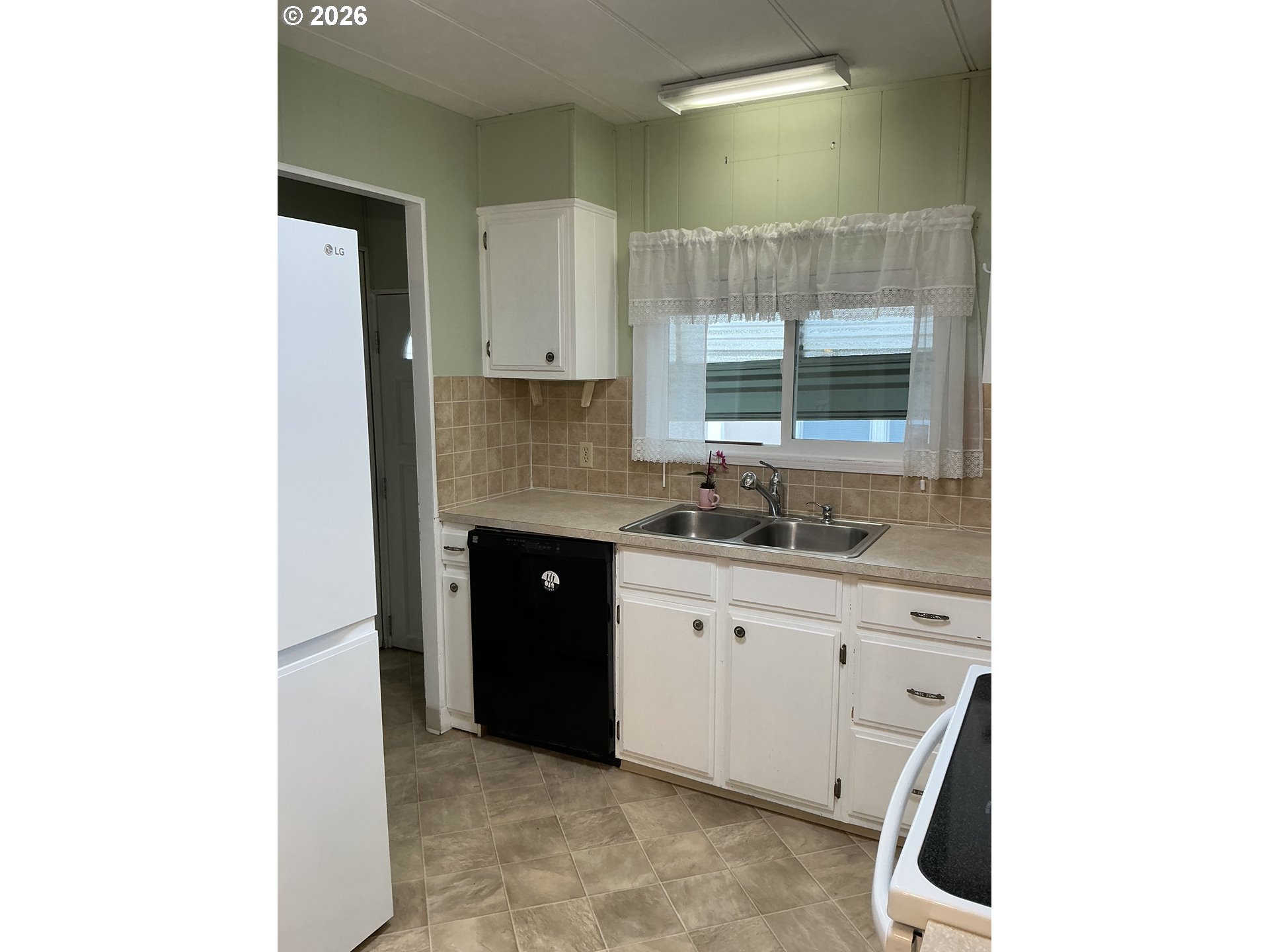 This manufactured home is located in a well-established 55+ community with a fantastic location. The home features a comfortable living area with big windows, nice kitchen with updated appliances, two bedrooms, and two bathroom. Covered front deck area, your own yard space, a one-car carport, two shed/storage spaces. Space rent includes management, common areas, garbage, septic, water. Sale is subject to park approval. Buyer to verify all information to their satisfaction. Cash sale only.