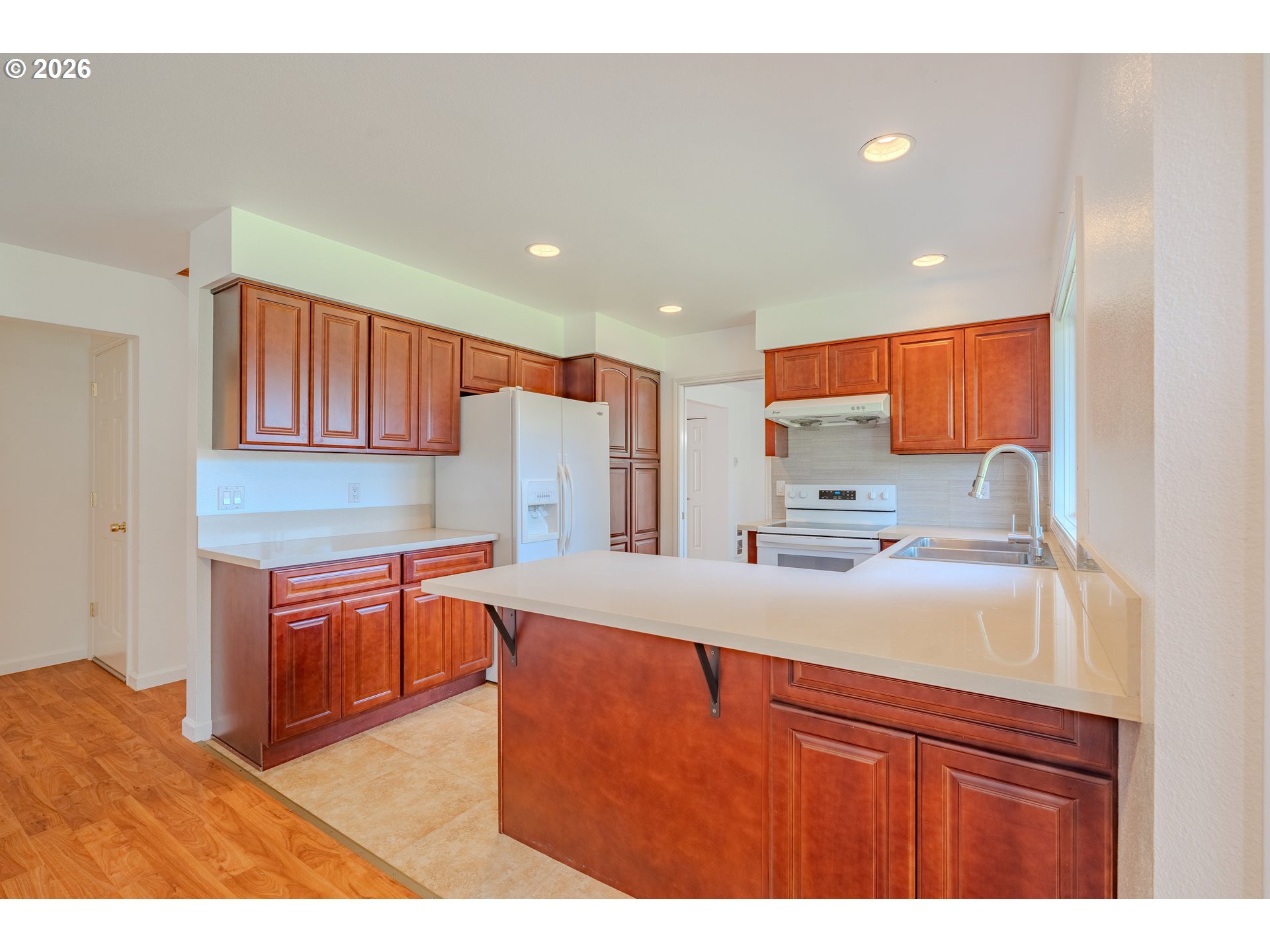 Located in the desirable Cascade Highlands neighborhood, this spacious 4-bedroom home sits on a premier corner lot with an exceptional, private-fenced, oversized yard. The interior features a bright, open floor plan with vaulted ceilings in the living room and a cozy family room centered around a classic fireplace. Significant updates include durable Hardi-Plank siding installation and a modern heat pump for efficient year-round comfort. The kitchen and bathrooms have been previously refreshed with quartz and granite countertops, tile flooring, and cherry cabinetry. Upstairs and downstairs, the home features consistent laminate flooring, providing a clean and cohesive feel. Large windows throughout invite plenty of natural light. This property offers a fantastic opportunity to add your custom touch and truly make it yours, while living in a wonderful community.