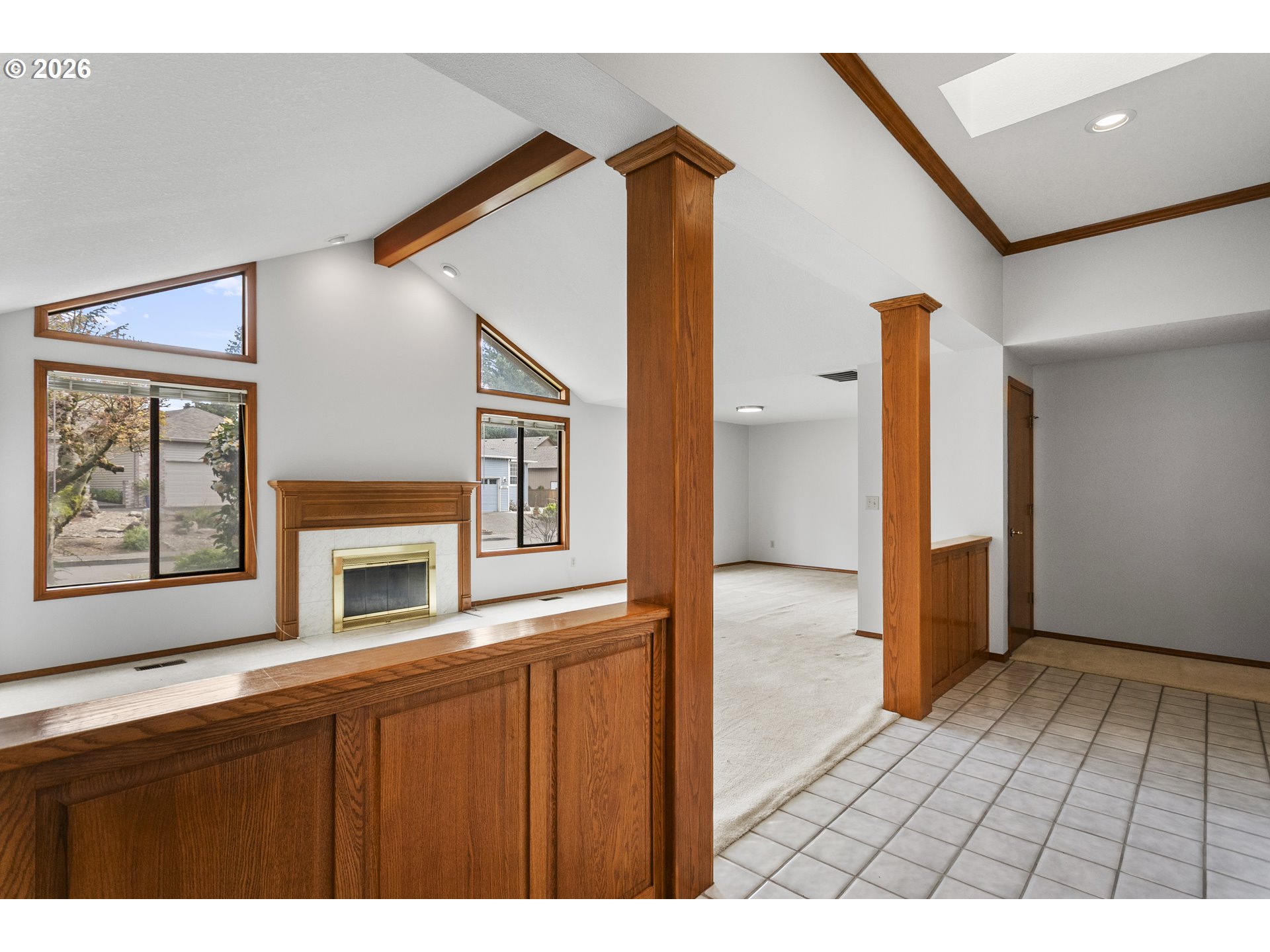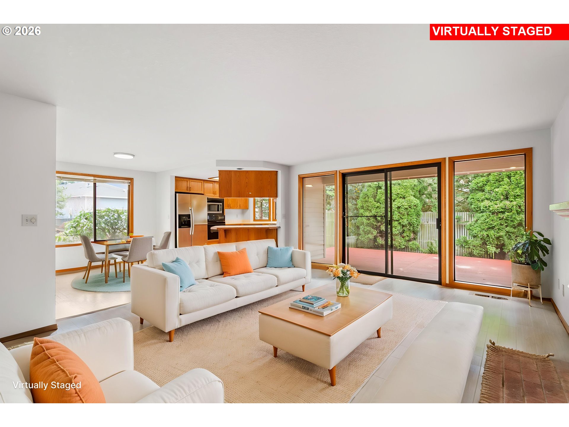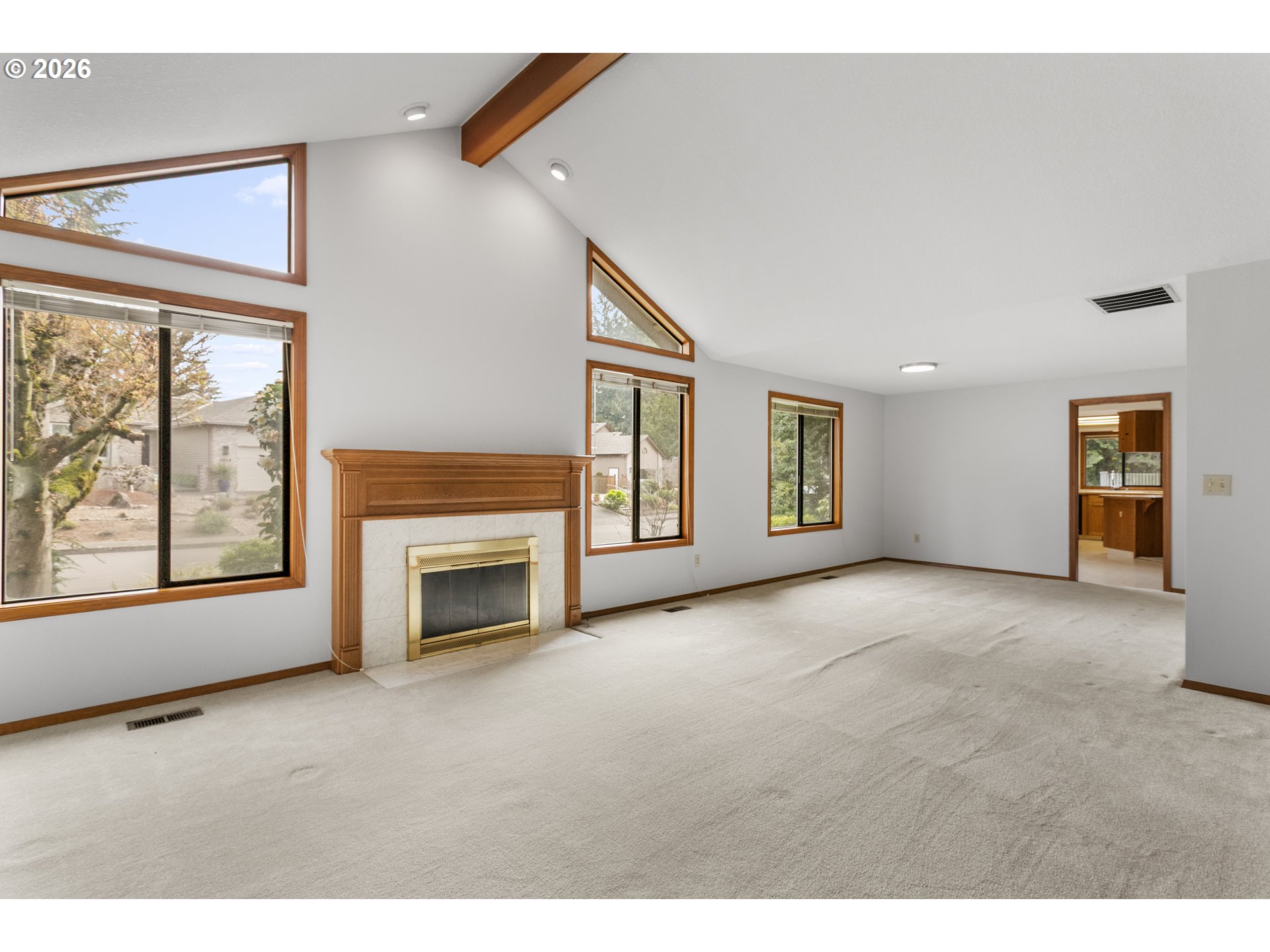 The Englewood residence is a distinguished one-level home situated within a 55+ planned community that offers a comprehensive array of amenities. The property is priced to accommodate your updates, with a 6k Carpet allowance and a carpet sample on-site! Home features include crown molding and tall ceilings in the tile entryway, complemented by French doors that lead into a relaxing den or study. The living room is spacious and vaulted, accentuated by a warm gas fireplace and numerous windows that allow for ample natural light. The open-concept design extends to a large dining area, creating an inviting space for gatherings. The kitchen, nook, and family room are designed to overlook a private setting, with tall floor-to-ceiling windows adjacent to the patio door that enhance the indoor-outdoor connection. The covered patio and walkway provide easy access around the home, ideal for outdoor entertainment. The primary bathroom is spacious and well-appointed, featuring a step-in shower, a jetted tub, dual sinks, and a separate water closet. The home boasts beautiful warm woodwork, and a kitchen equipped with a gas cooktop, wall oven, wall microwave, tile backsplash, and a bay window adds to the aesthetic. The community caters to residents aged 55 and older and includes a variety of amenities such as a clubhouse, scheduled activities, exercise facilities, sauna, swimming pool, billiards, ping-pong, arts and crafts studio, ballroom, library, and meeting or event rooms. This combination of luxurious home features and comprehensive community amenities makes this Englewood an exceptional choice in the Village!