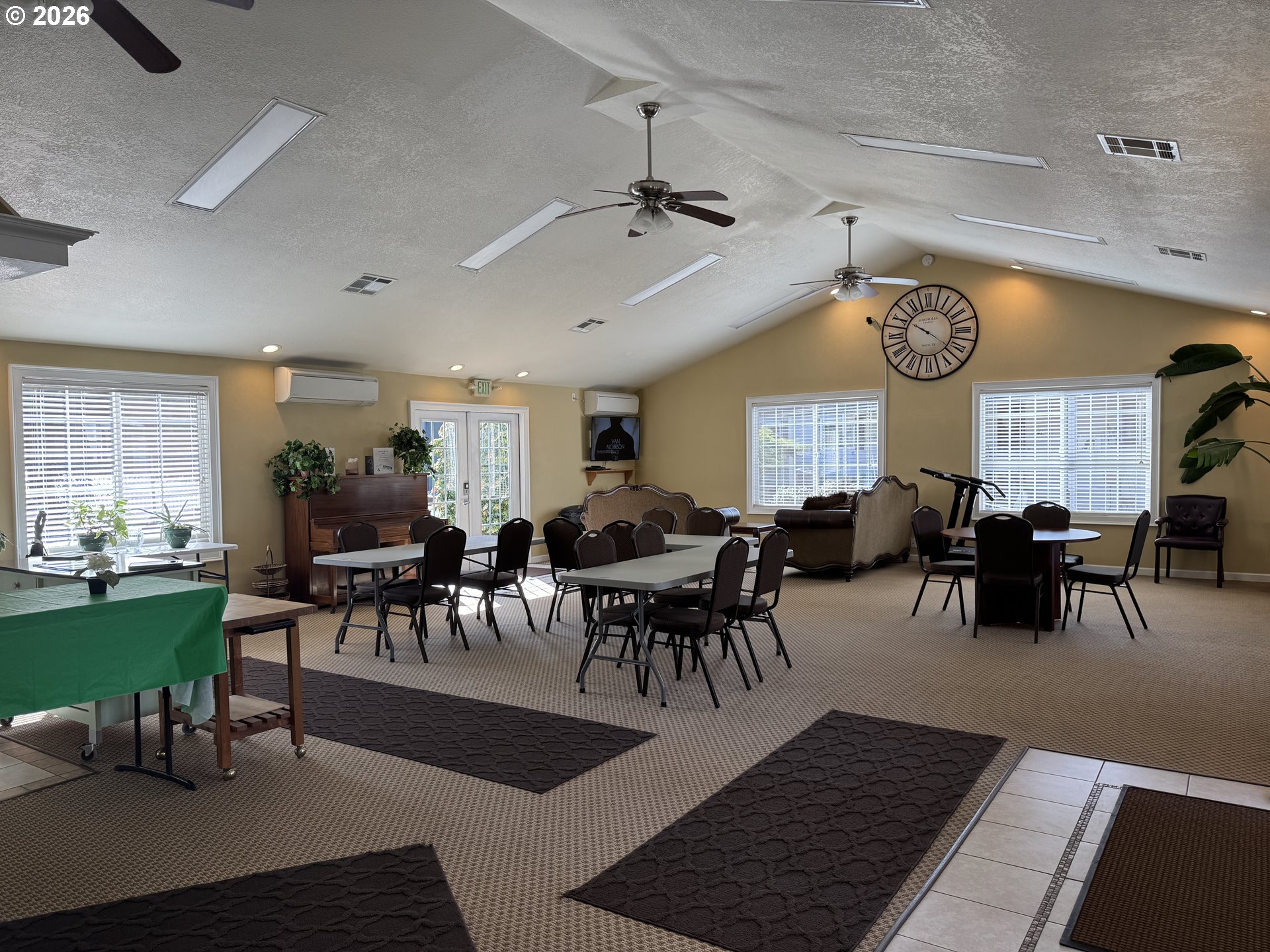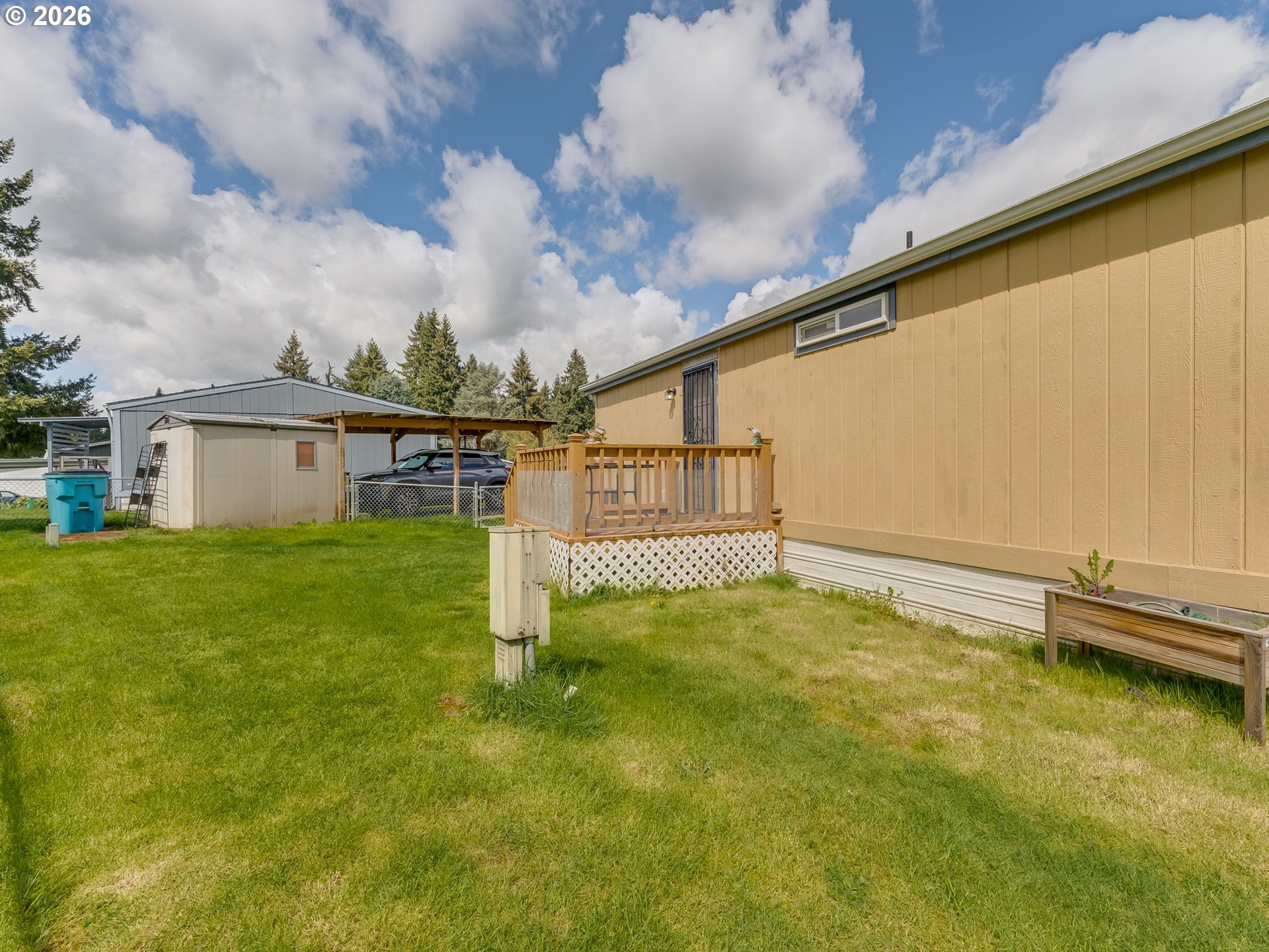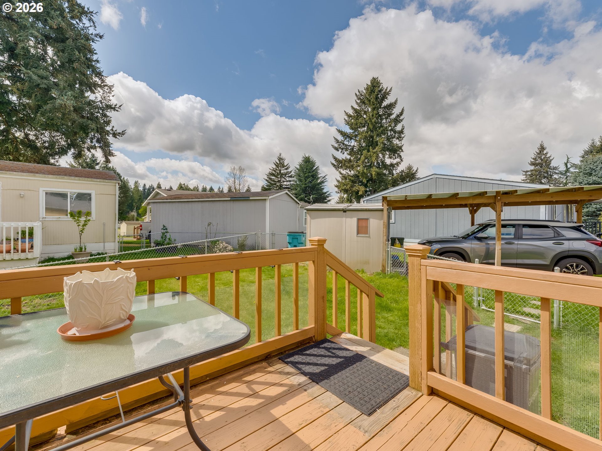 Welcome to your new home in a great location, perfectly situated close to groceries, shopping, and medical facilities for your convenience. Vaulted ceilings and beautiful laminate flooring create a spacious and inviting atmosphere. Enjoy an open concept kitchen and dining room, ideal for entertaining. Step outside to a sweet family park nestled among the trees, featuring natural landscaping that provides a serene escape right in your community. Sip your coffee on the back deck, listening to the birds. Newer furnace and heat pump. Includes a covered carport and a handy tool shed for all your storage needs. Residents also benefit from access to a community recreation room and park, perfect for socializing and outdoor activities. This home offers a wonderful blend of comfort, convenience, and community, a perfect place to create lasting memories.