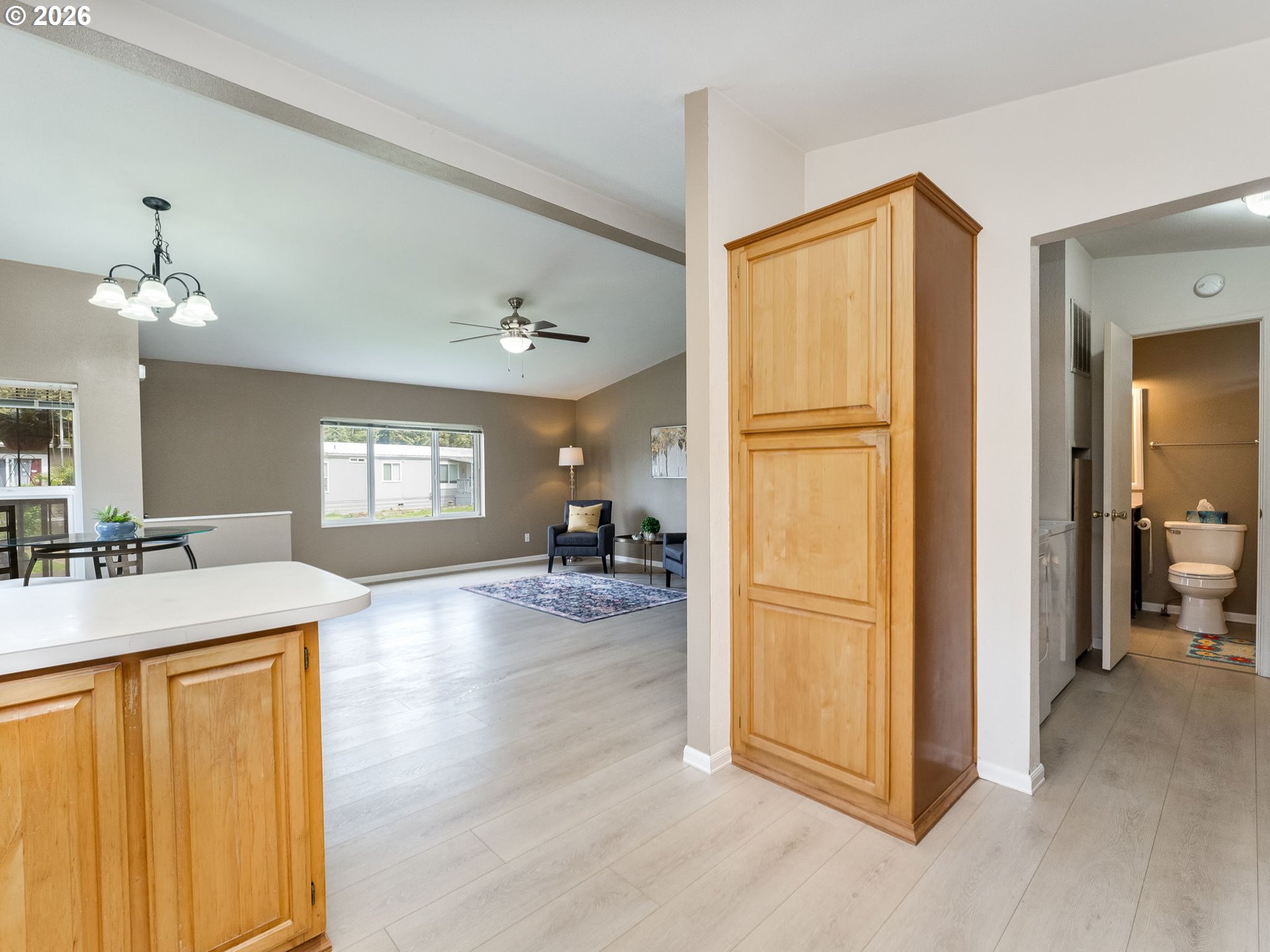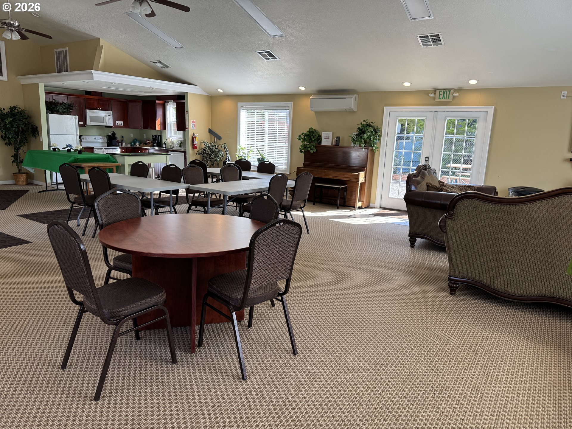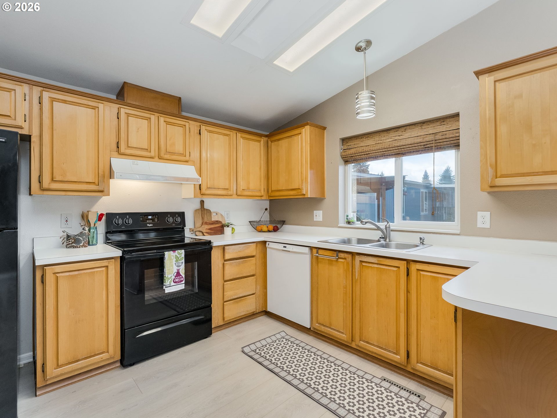 Welcome to your new home in a great location, perfectly situated close to groceries, shopping, and medical facilities for your convenience. Vaulted ceilings and beautiful laminate flooring create a spacious and inviting atmosphere. Enjoy an open concept kitchen and dining room, ideal for entertaining. Step outside to a sweet family park nestled among the trees, featuring natural landscaping that provides a serene escape right in your community. Sip your coffee on the back deck, listening to the birds. Newer furnace and heat pump. Includes a covered carport and a handy tool shed for all your storage needs. Residents also benefit from access to a community recreation room and park, perfect for socializing and outdoor activities. This home offers a wonderful blend of comfort, convenience, and community, a perfect place to create lasting memories.
