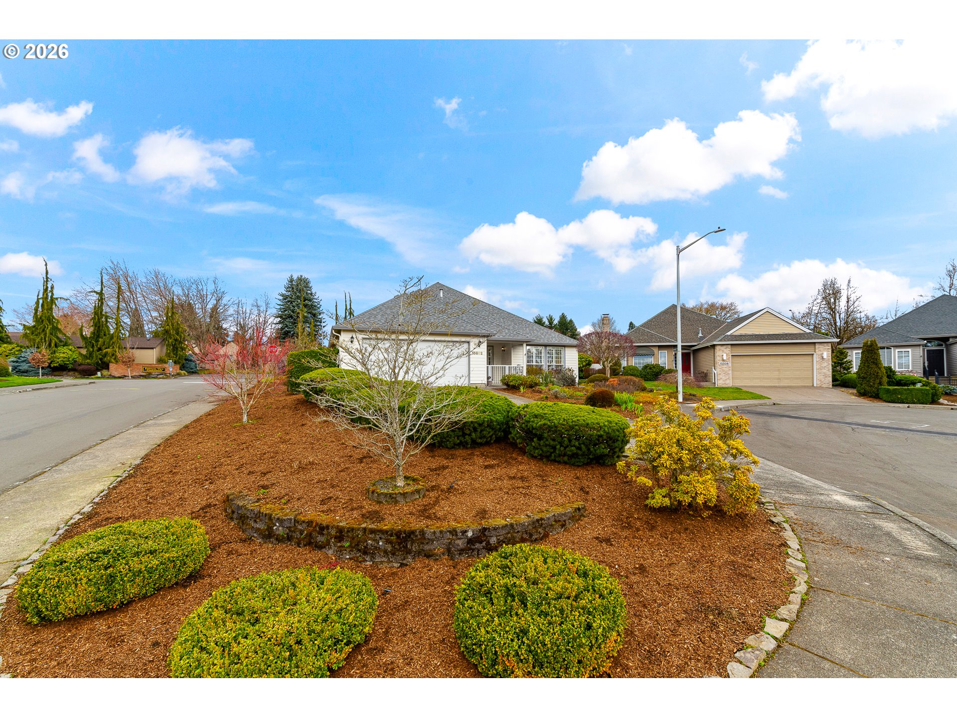 Welcome to Fairway Village! This 55+ community has it all- shopping and freeways, it has its own lifestyle with a clubhouse, sauna, swimming pool, billiards, ping-pong, arts and crafts studio, ballroom, library, meeting rooms, activities, and more! This lovely updated home has vaulted ceilings, new stylish laminate flooring, a light and bright kitchen with newer appliances and an eating bar, cozy fireplace, and a remodeled primary bathroom. 2 bedrooms plus an office with built-ins, easy-care yard with beautiful plantings.