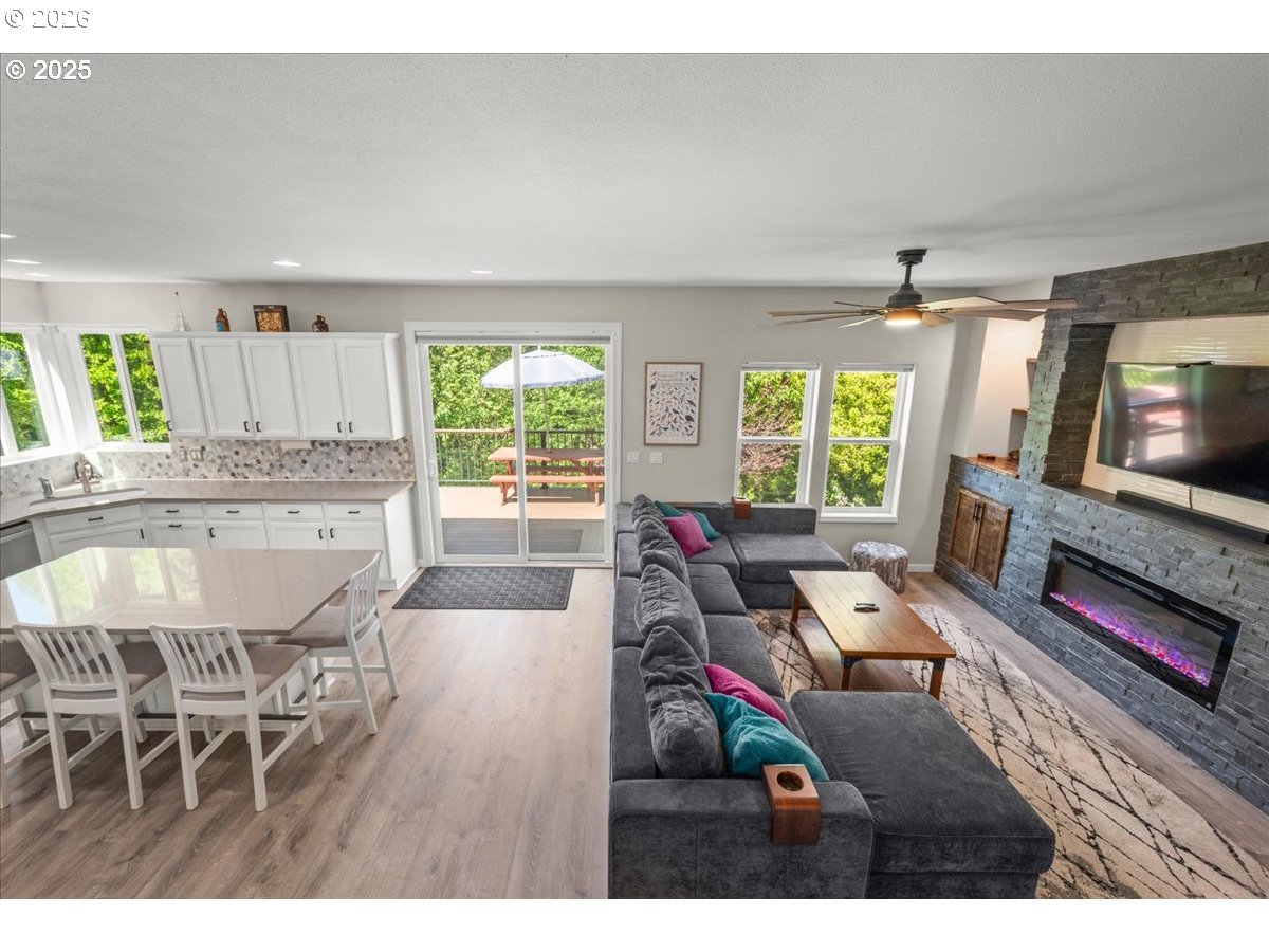 Fully remodeled and move-in ready, this stunning 3,100 sq ft Craftsman sits on a rare .33-acre lot backing to protected green space with direct access—offering privacy, tranquility, and room to entertain. Built in 2000 and extensively updated with a NEW roof and NEW windows, this 4-bedroom, 2.5-bath home blends timeless style with modern upgrades.The bright, open layout features soaring vaulted ceilings, a spacious living room, and a separate family room with a cozy fireplace. The chef’s kitchen is designed to impress with a large quartz island, stainless steel appliances, custom cabinetry, and generous prep and gathering space.The main-level primary suite offers comfort and convenience with a walk-in closet and a beautifully updated, spa-like bath featuring a jetted tub and walk-in shower. Upstairs includes a versatile loft and an oversized bonus/media room—ideal for entertaining, work, or play.Enjoy outdoor living on the expansive back deck overlooking a private, fenced yard with mature landscaping, lush greenery, and open lawn space. Located in a quiet cul-de-sac in sought-after Salmon Creek, just minutes to I-5, I-205, WSU Vancouver, and Legacy Hospital.A rare combination of space, upgrades, and location—this is a must-see.