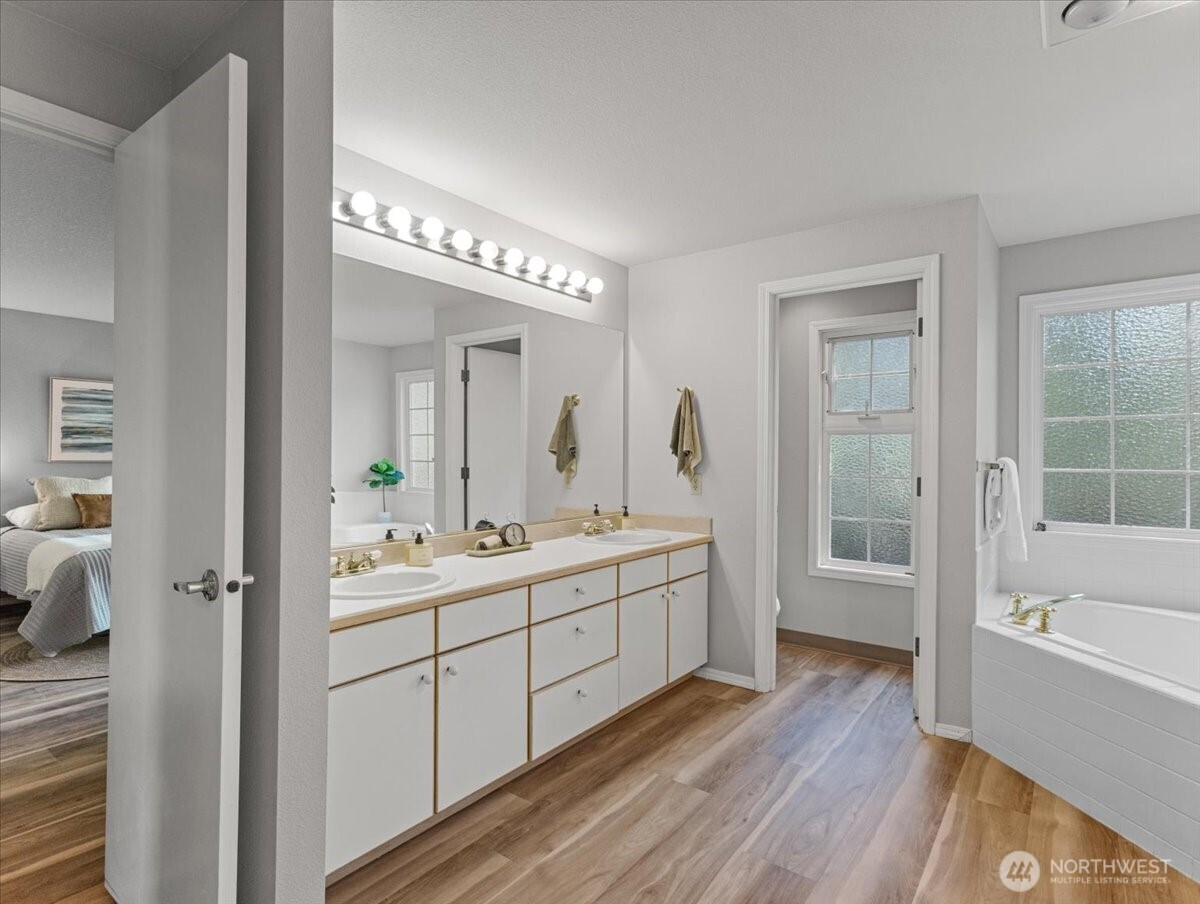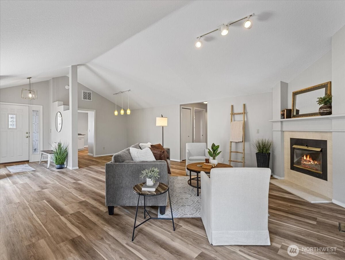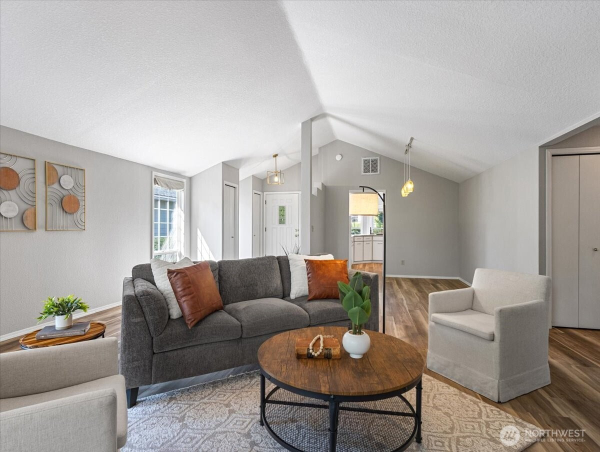 This stylishly updated home is move-in ready, featuring new flooring and a freshly painted interior. The open-concept layout is bright and inviting, with vaulted ceilings and a cozy gas fireplace in the great room. A flexible third bedroom doubles perfectly as an office, den, or guest room—the seller will even add a closet with an acceptable offer. The primary suite is a private retreat with a walk-in closet, soaking tub, and step-in shower. A rare bonus to this floor plan is the expanded garage, offering extra space for a workshop, storage, or creative hobbies. Enjoy year-round living on the oversized covered patio, and the low-maintenance yard ensures more time for what you love. See Supplement for Fairway Village member requirements.