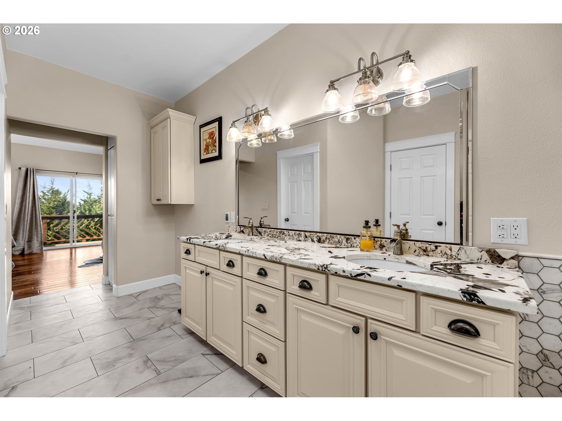 (503) 893-8874Looking for that really nice house with private acreage, and MASSIVE barn/shops (yes, plural!). 96x100 and 40x60 sizes. Dead end road, and amazing sunset views to enjoy as you mosey from the corner market to home. All engineered hardwood floors, no carpet. Remastered Primary suite with vaulted ceilings, two person jetted tub, large walk in shower, double sinks, storage, heated floors, walk in closet, private Juliette balcony/deck. Additional den, full bathroom, and 1 of 2 Laundry rooms on the main. Quartz counters thru-out all kitchens and bathrooms. Downstairs find another family room, Bonus/Theater room, 2nd laundry room that doubles as heated storage space. 2 oversized bedrooms in the basement, each with doors to the newly expanded concrete patio. Heading outside you'll find a size Trex deck for entertaining, fenced garden space, green house, shed, and playhouse.