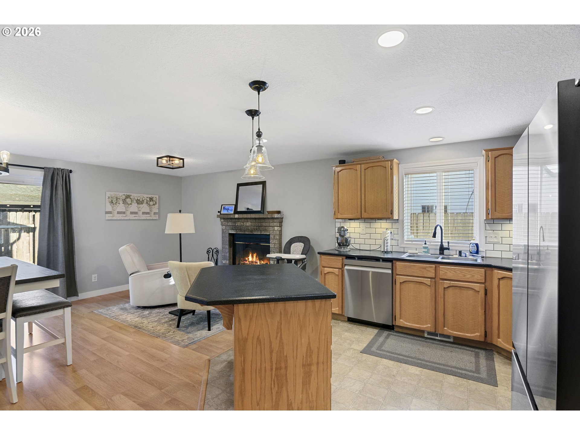 This home showcases a spacious and open layout, abundant with natural light that creates a warm and welcoming ambiance. The neutral color palette throughout allows for easy personalization. The kitchen features ample cabinetry, new appliances and a tile backsplash, complementing the open concept design. A cozy fireplace adds charm and comfort to the living area. The home offers abundant storage space, with a well-organized layout that maximizes functionality. The exterior has ample yard space and RV parking. The exterior is well-maintained, featuring a fully fenced yard for privacy and security. Recent updates include a newer roof, water softener/filtration, and air conditioning system, ensuring a comfortable and energy-efficient living environment. The great location provides convenient access to the surrounding area