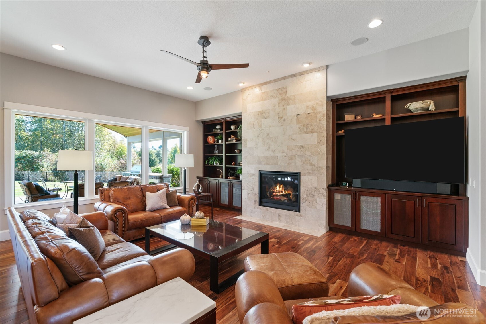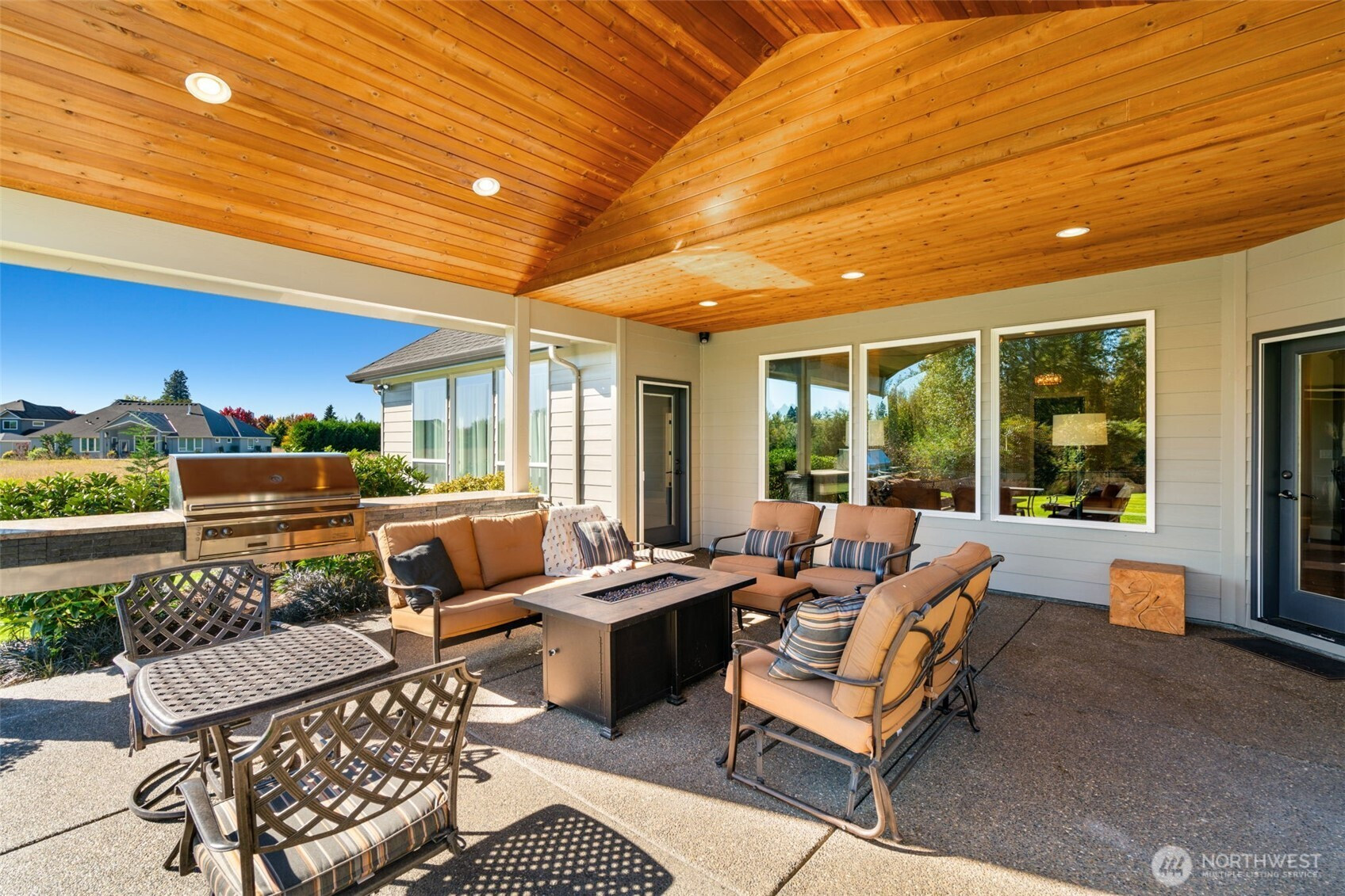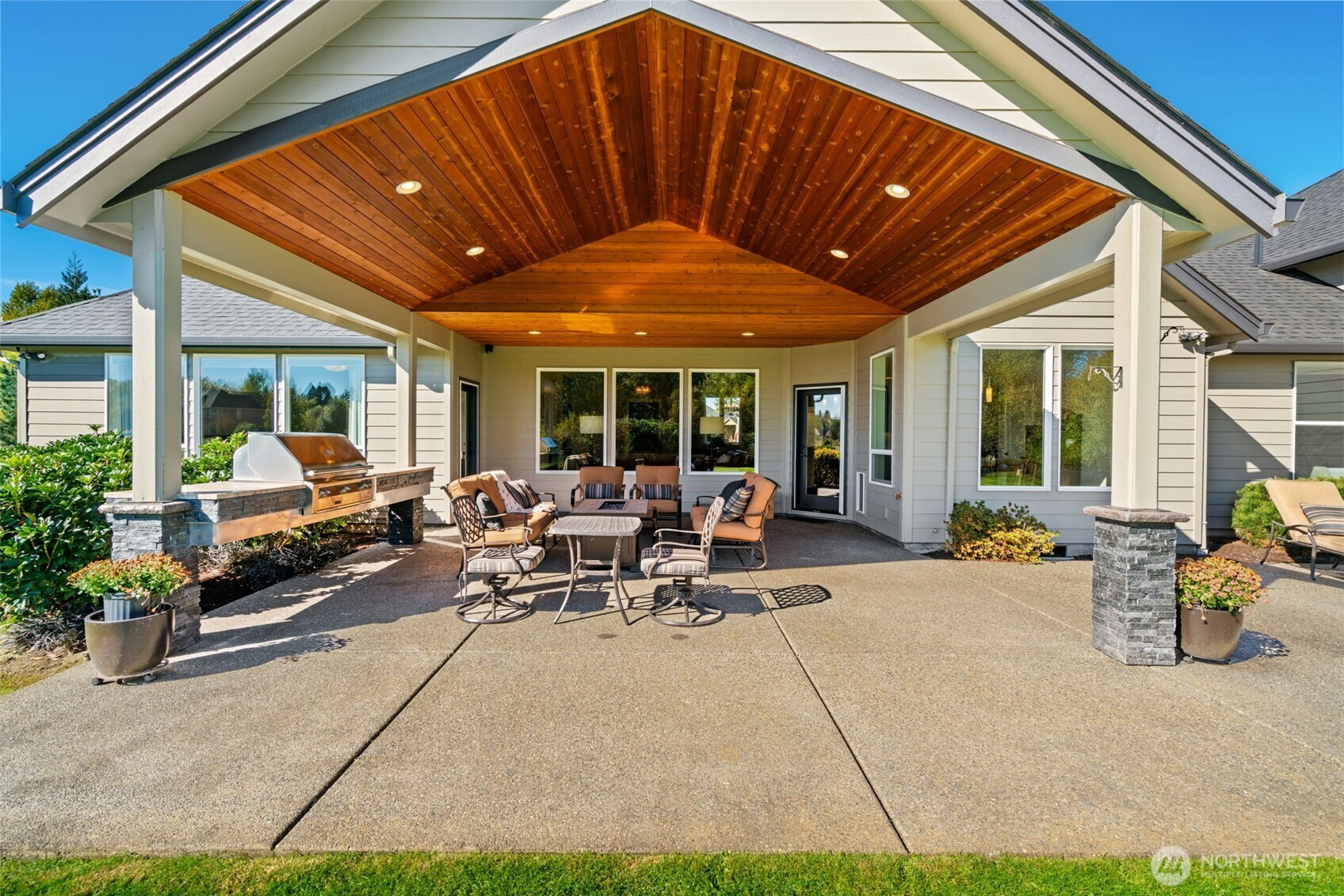 Gated community, single level home on 2.43 Acres in Battle Ground. Craftsman home with lots of natural light, 3 bedrooms, office, 2.5 baths and a luxurious primary suite with spa-like bath, soaking tub, walk-in shower, dual sinks and a walk-in closet. The open-concept great room features expansive windows, a cozy fireplace, and seamless flow to the gourmet kitchen, complete with high-end appliances, double ovens, large island, and walk-in pantry. Outside features a built-in BBQ and large covered patio for all year long entertaining! Enjoy beautifully landscaped grounds offering privacy and room to expand. The oversized garage, RV/shop bays provide ample storage for vehicles, tools, and toys. Located just minutes from downtown Battle Ground.