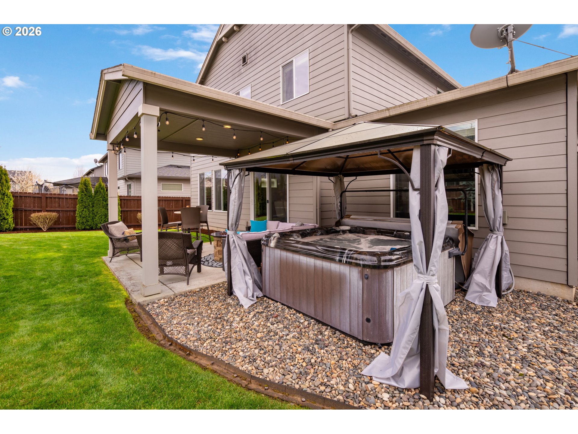 (503) 893-8874Beautifully maintained home in the highly desirable Granton Park neighborhood, located within the Hockinson School District. Built in 2016 by New Tradition Homes, this 2,533 sqft residence offers 3 bedrooms, 2.5 baths, plus a spacious bonus room and dedicated office/den—perfect for flexible living. The interior shines with brand new flooring throughout, designer color palettes, and a fully updated kitchen featuring a new appliance suite. Step outside to a thoughtfully landscaped .17-acre lot with sprinkler system, landscape lighting, fire pit, and a private hot tub with gazebo—ideal for relaxing or entertaining year-round. Additional highlights include gated RV parking/storage and an extra-deep 3-car garage. Enjoy community amenities including a sport court and dog park, all within a welcoming and well-kept neighborhood. This one truly blends comfort, function, and lifestyle.