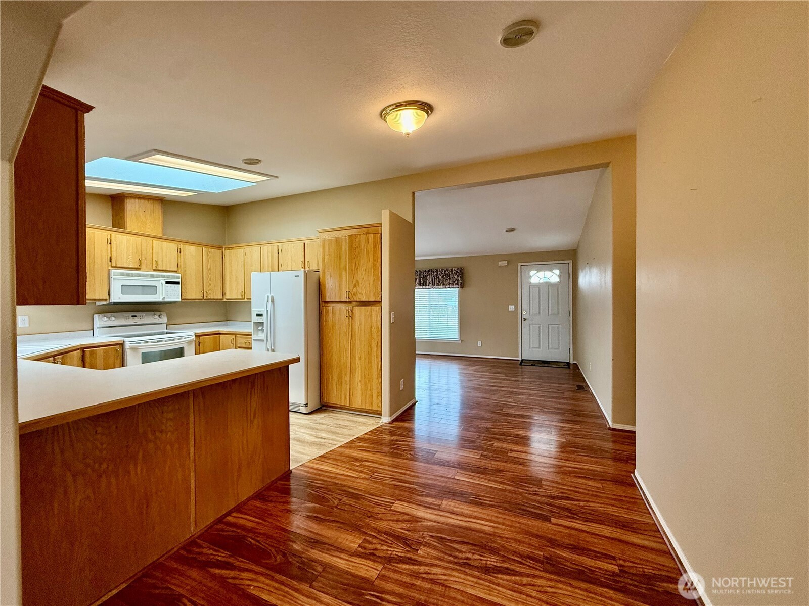 Welcome to your new home in the serene 55+ community of Cascade Park Estates! This charming double wide offers 1,392 sq ft with 3 bedrooms and 2 full baths for comfortable living. You're welcomed by a formal living room, and the modern kitchen features an island with seating—perfect for casual dining. At the heart of the home is a bright common room combining a sitting area and dining space. Enjoy the large covered back deck, ideal for BBQs or peaceful mornings. A 2-car garage adds ample parking and storage. Don’t miss this opportunity to own a beautiful home in Cascade Park Estates!