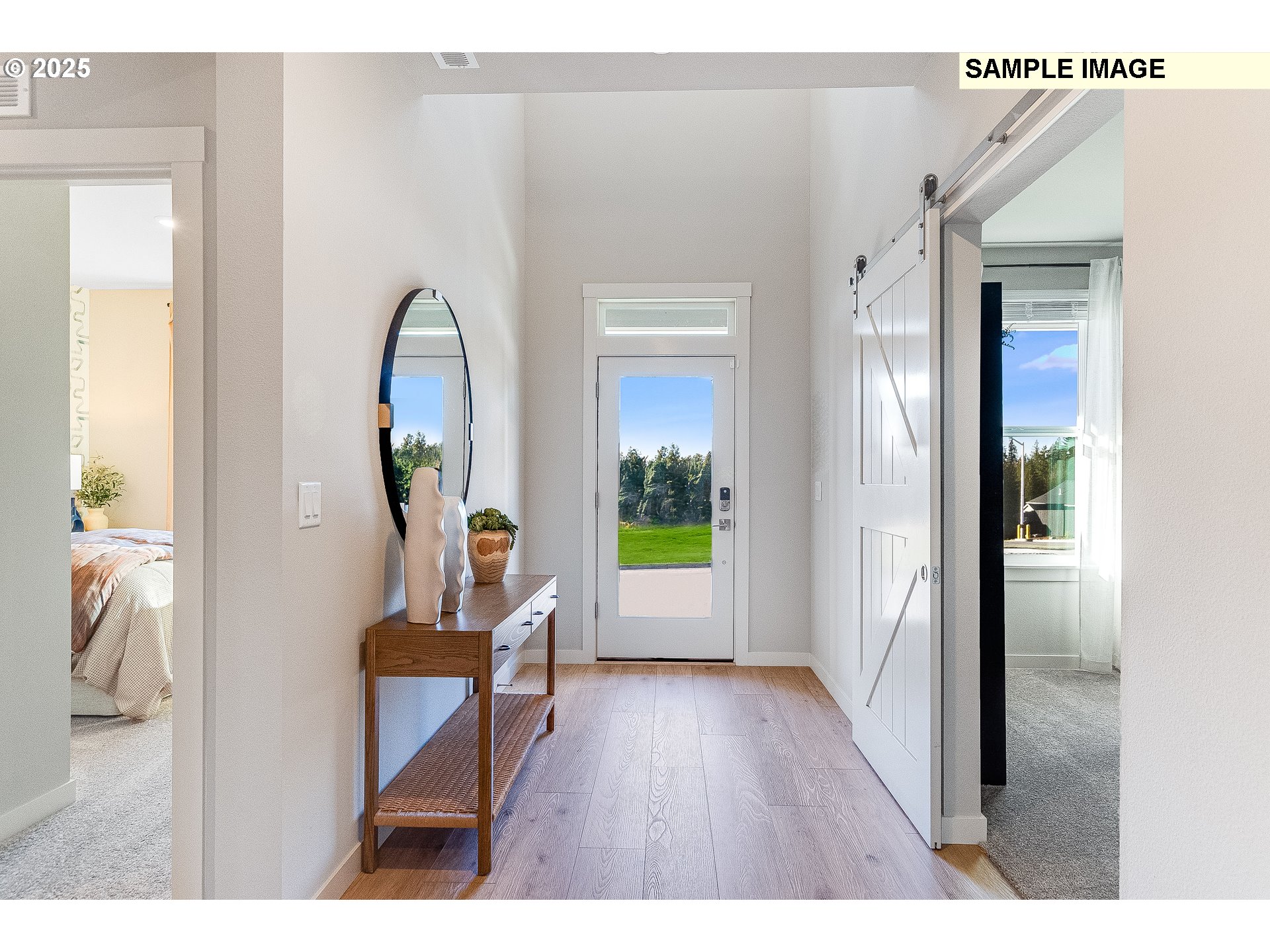 This two-story new construction home in Salmon Creek Ridge by Lennar Homes features a three-car garage and is less than 10 minutes from WSU-V campus trails, with shopping and I-5 nearby. The main floor includes a den and bedroom, an open kitchen, dining area, and a great room warmed by a fireplace that opens to the backyard. Upstairs, a loft connects three bedrooms, including a primary suite with a spa-inspired bath, soaking tub, and walk-in closet. The kitchen has white cabinets, quartz countertops, and a vertical tile backsplash. LVP flooring runs through the kitchen and entry, and LVT covers baths and laundry. The primary bath includes a tiled shower with a separate tub. Wooden shelving, landscaping, and fencing complete the home. Central air conditioning, a refrigerator, washer and dryer, and blinds are included. Take a self-guided tour of this home located on homesite 25, move in ready. Rendering is artist conception only. Photos are of a similar home, features and finishes will vary.