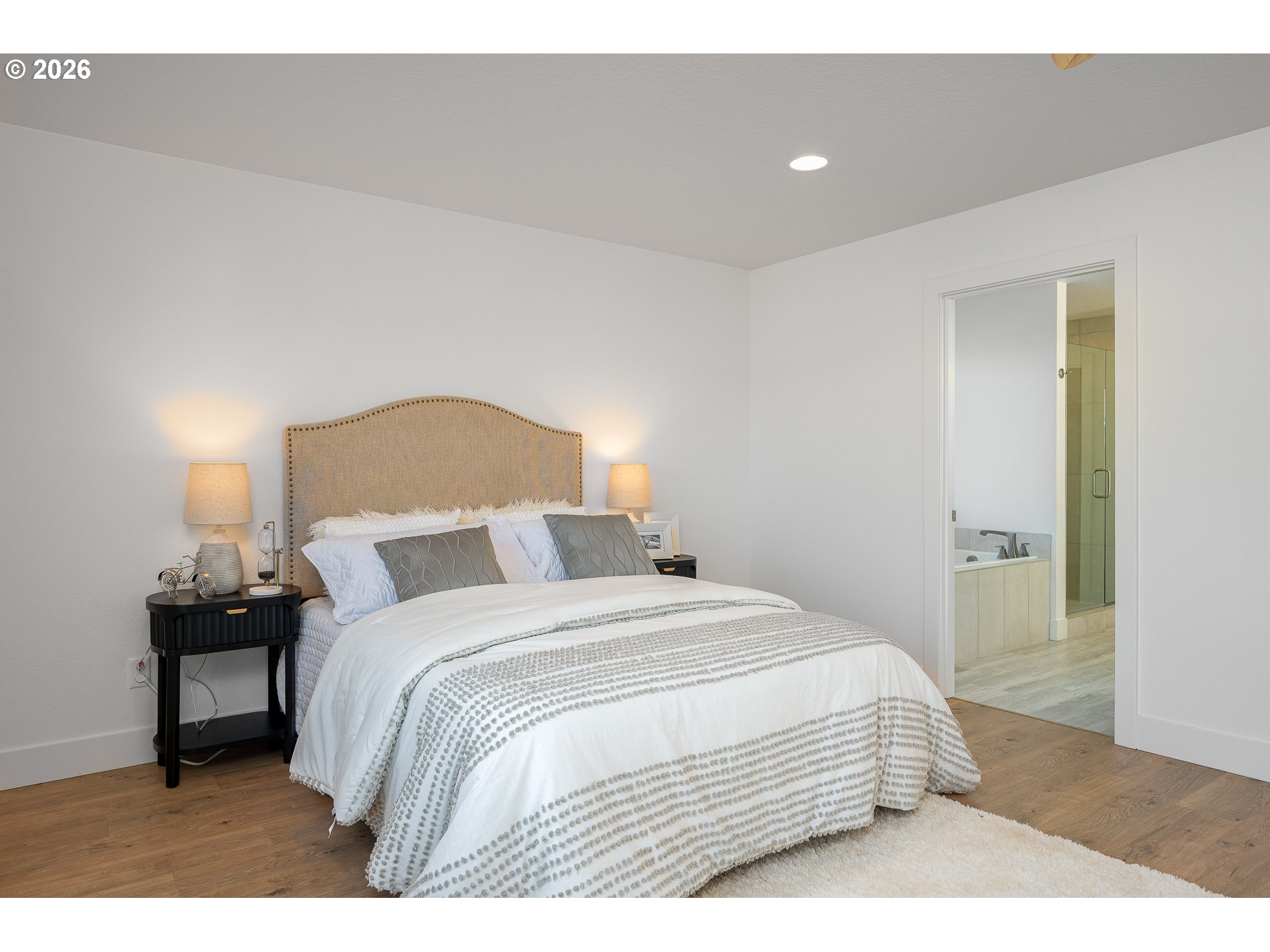 Superior Quality Home with loads of Upgrades, both builder and custom... without the new construction headaches!!! Tons of natural light floods in from extra & larger windows, with the soaring ceilings making the expansive 1st floor an impressive greeting. Office downstairs is a legal bedroom, along with a tiled Full bath. Upgraded & Extra lighting added throughout. Kitchen has been enhanced with Quartz counters, chic lighting, select SS appliances (double-convection ovens, natural gas cooktop), a lighted WI pantry, and an extra large Island with power. All cabinetry was upgraded at completion, including wood built-in shelving in the 2 linen closets upstairs. Dining area leads out to a covered patio through an extra large glass-slider. Enjoy the Custom Railing and tread lighting the full run up stairway and upper hallway. Massive primary suite includes sleek ceiling fan, double sinks across from an inviting soaking tub, a frameless tiled shower, and flanked by a drool worthy organized WI closet. Stylish ceiling fans also adorn the Living room and back Patio. Hard LVP floors throughout. Laundry is on upper level close to bedrooms. Hardscape was dramatically improved by extending the back patio, adding a walk around side to driveway, and a Greenhouse concrete pad with Power! Yards are fully irrigated on WiFi controller. Upgraded custom paint quality, smart home features, and internet wiring throughout. This is A LOT of house for less!!