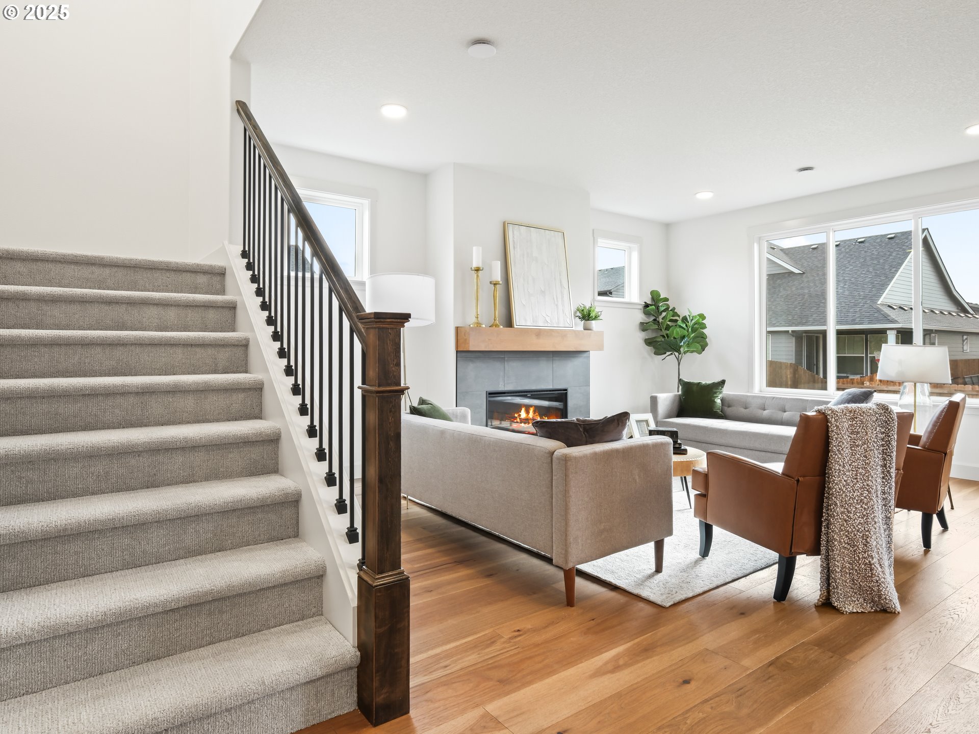The two-story Grandview offers 2,464 square feet, four bedrooms plus a versatile main floor den/office. The open concept main level has generously sized spaces, oversized windows to bring in abundant light and airy nine foot high ceilings. Throughout the home you'll find designer finishes such as quartz countertops, engineered wood flooring, and upgraded fixtures. Upstairs, the luxurious owner’s retreat includes a large walk-in closet, a double vanity, and an oversized tile shower. The fully landscaped yard comes complete with a sprinkler system and a large covered patio, perfect for outdoor relaxation. This home is designed for comfort and efficiency, with ENERGYSTAR NextGen certification for lower utility costs and a more sustainable living experience. Enjoy peace of mind with a two-year builder warranty and a 10-year structural warranty.