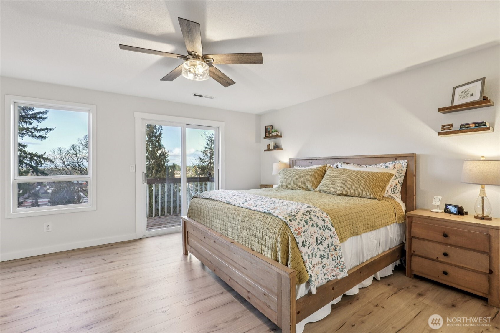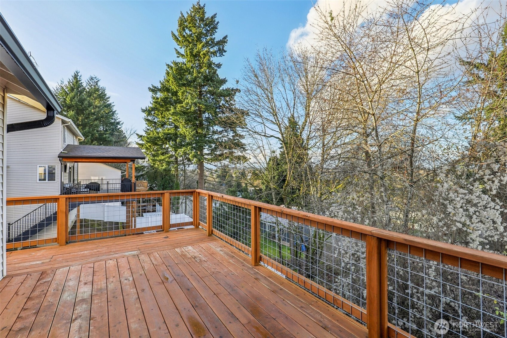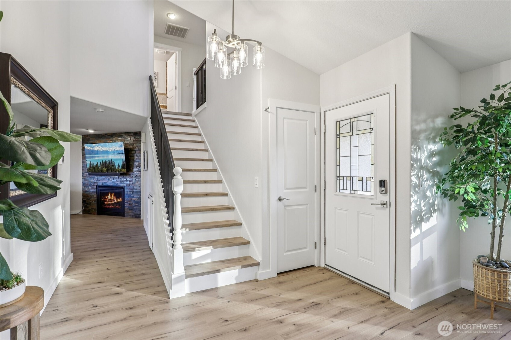 Must-See Home beautifully updated w/ a spacious open floor plan. The the kitchen shines with freshly painted cabinets, granite countertops, new tile backsplash, New SS Appl that all opens seamlessly to the GR & dining nook, w/ a door leading to a new wrap-around deck—perfect for relaxing or entertaining while taking in the views. Upstairs, the large prim ste features a WI closet w/ organizer, updated prim bath w/ double vanity, & a private slider to the deck. 2 additional bdrms & a bath complete the upper level. Recent updates include flooring, interior paint & exterior trim paint, interior doors, railing, trim, & Stone FP surround. Enjoy the covered front porch, 2-car garage, & a peaceful setting that truly feels like home.