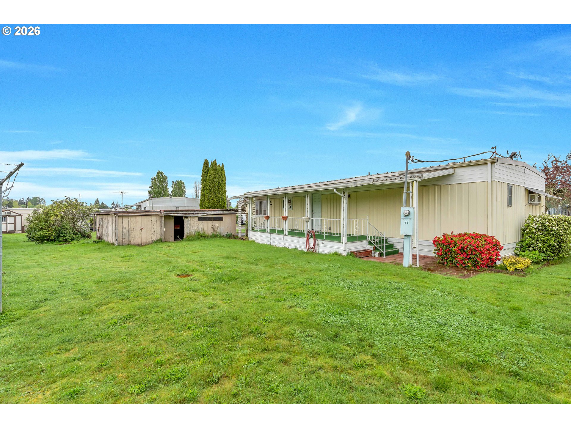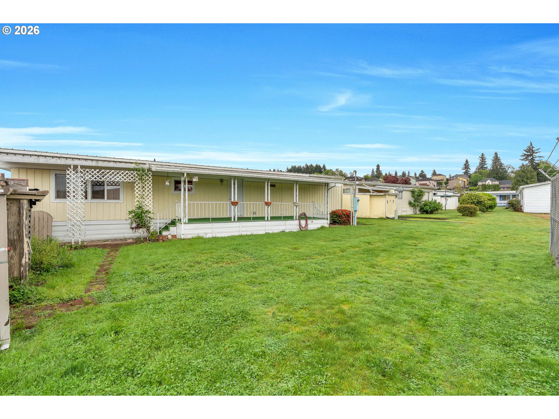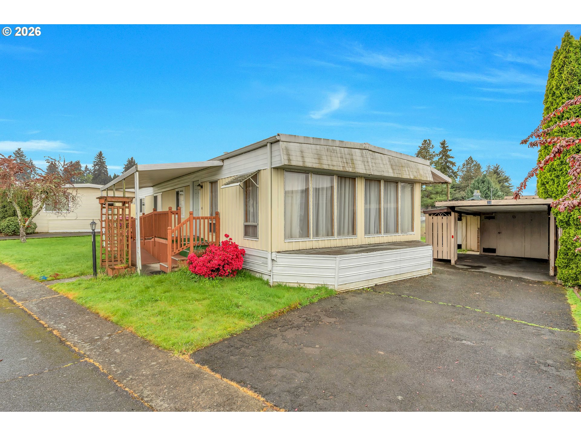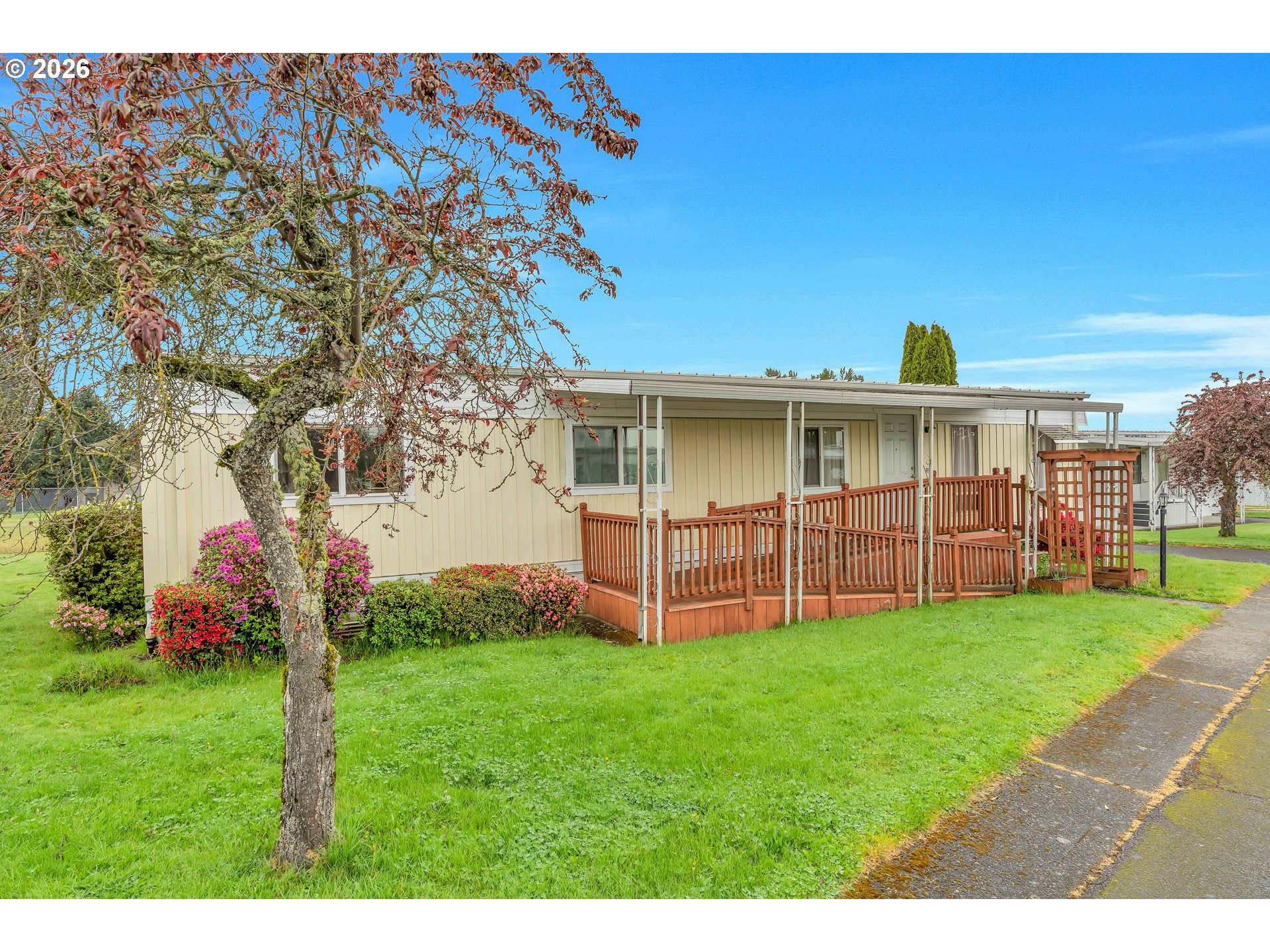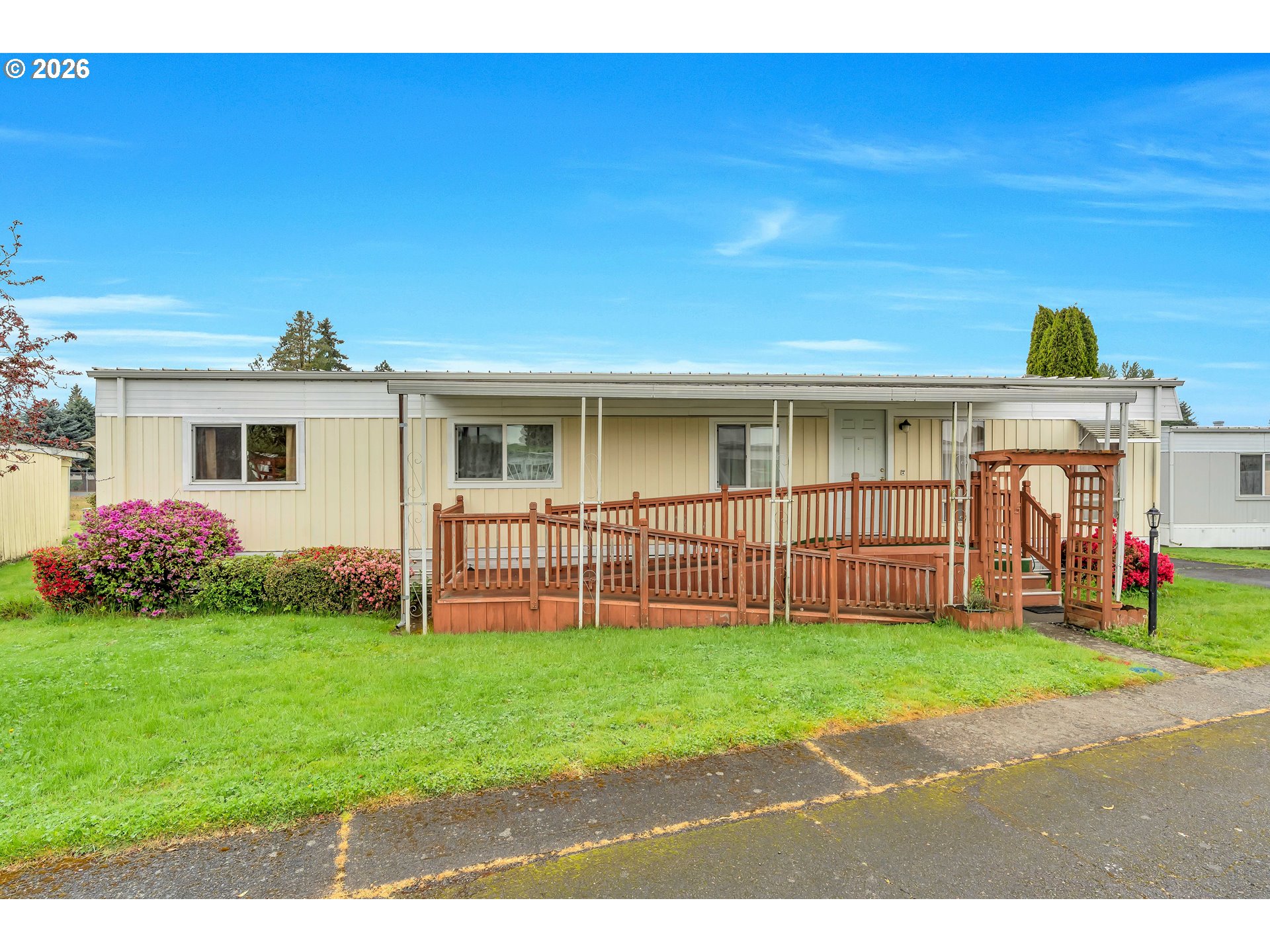 (503) 893-8874Welcome to this spacious and light-filled single-level home designed for comfort and easy living. Featuring 2 bedrooms and 2 bathrooms, this home stands out with floor-to-ceiling windows throughout, bringing in an abundance of natural light and creating an open, airy feel in every room. Laminate flooring runs seamlessly throughout the home, adding both style and low-maintenance convenience.The thoughtfully designed layout includes an accessible ramp entrance and generous living spaces that make everyday living effortless. The kitchen is well-equipped with a built-in microwave, dishwasher, and plenty of room to cook and gather. The primary suite offers double closets and a private ensuite bathroom with double sinks and a walk-in shower.Step outside to enjoy a large covered deck—perfect for relaxing or entertaining—overlooking a spacious yard with room to garden or unwind.Located in a well-maintained community, residents enjoy access to a variety of amenities including parks, common gathering areas, a shared kitchen, meeting rooms, a recreation space with a pool table, and even a dog park.A rare combination of accessibility, space, and community living—this home is ready to welcome its next owner.
