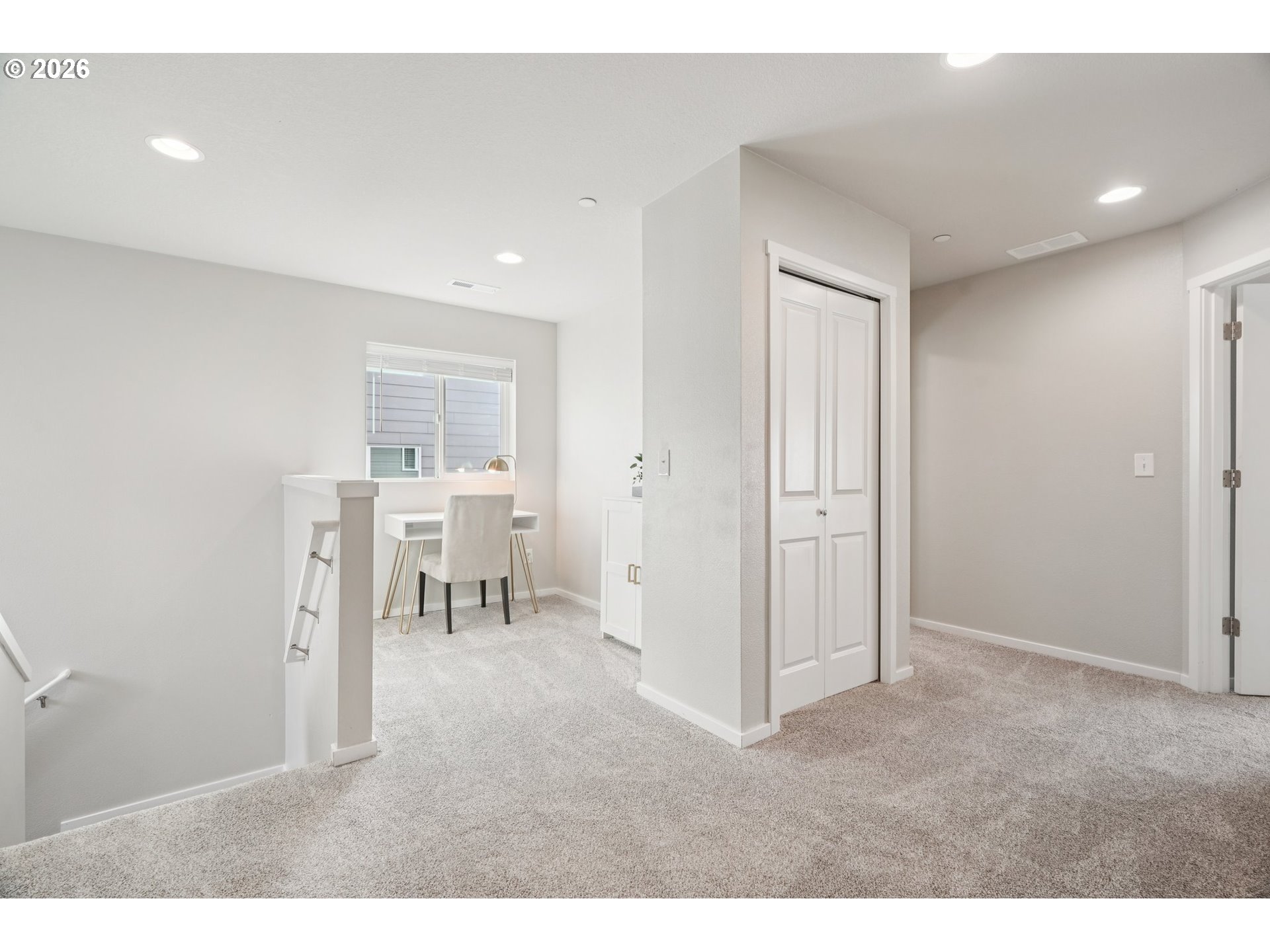 Welcome to this exceptional home in the highly sought-after Hills at Round Lake community in beautiful Camas. With neighborhood parks, scenic trails, waterfalls, and Woodburn Elementary just moments away, convenience and lifestyle come together effortlessly. Step inside to a welcoming open entry that leads into an oversized kitchen featuring expansive white quartz countertops, abundant prep space, and a generous eat-up peninsula. The kitchen opens directly to a spacious great room—creating the perfect gathering space. Large windows provide wonderful sightlines, territorial views, and even a peek-a-boo view of Mt. Hood. Upstairs, a charming loft offers flexible space for a home office or play area. The home includes four well-sized bedrooms, including a primary suite that enjoys the same beautiful views as the great room, along with a spacious ensuite bath. Three additional bedrooms are generously sized, and a dedicated laundry room adds everyday convenience. Meticulously maintained and truly immaculate, this home shows beautifully and is ready for its next chapter.