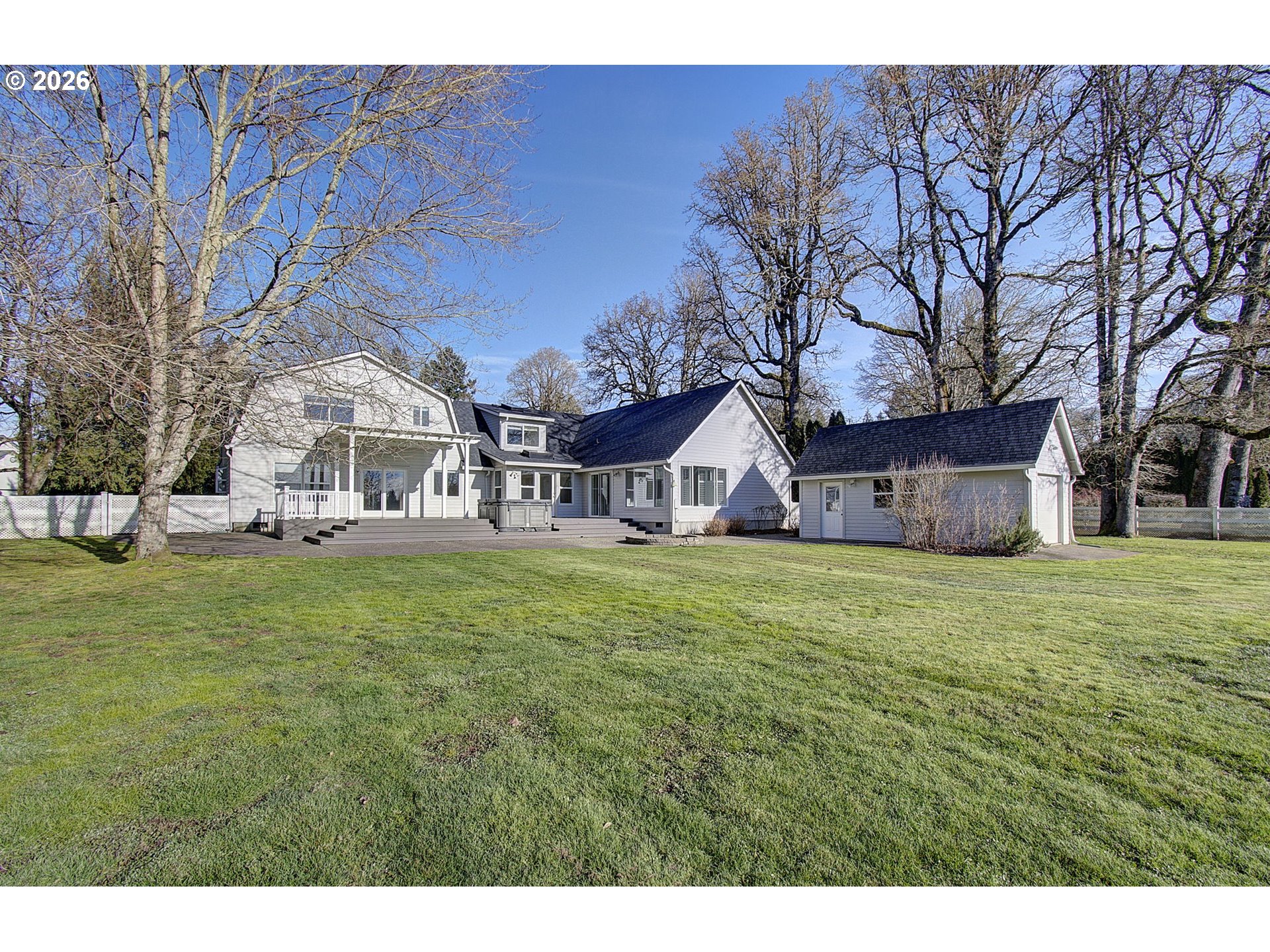 (503) 893-8874Unique custom home on a beautiful 1-acre lot. A tree-lined street leads to this custom-style home with 5 bedrooms and 3.5 baths. Stunning master suite on the main floor with vaulted ceilings, a large walk-in closet, and views of the beautiful backyard. Sunroom off the master ?for relaxing and unwinding. Wonderful kitchen and dining room, formal living room with a wood-burning fireplace. The upstairs includes a second master? suite, 3 additional bedrooms, and a bonus room. Old-growth trees set off the beautiful landscaping. Large deck for entertaining and relaxing. Shop for your hobbies or storage.