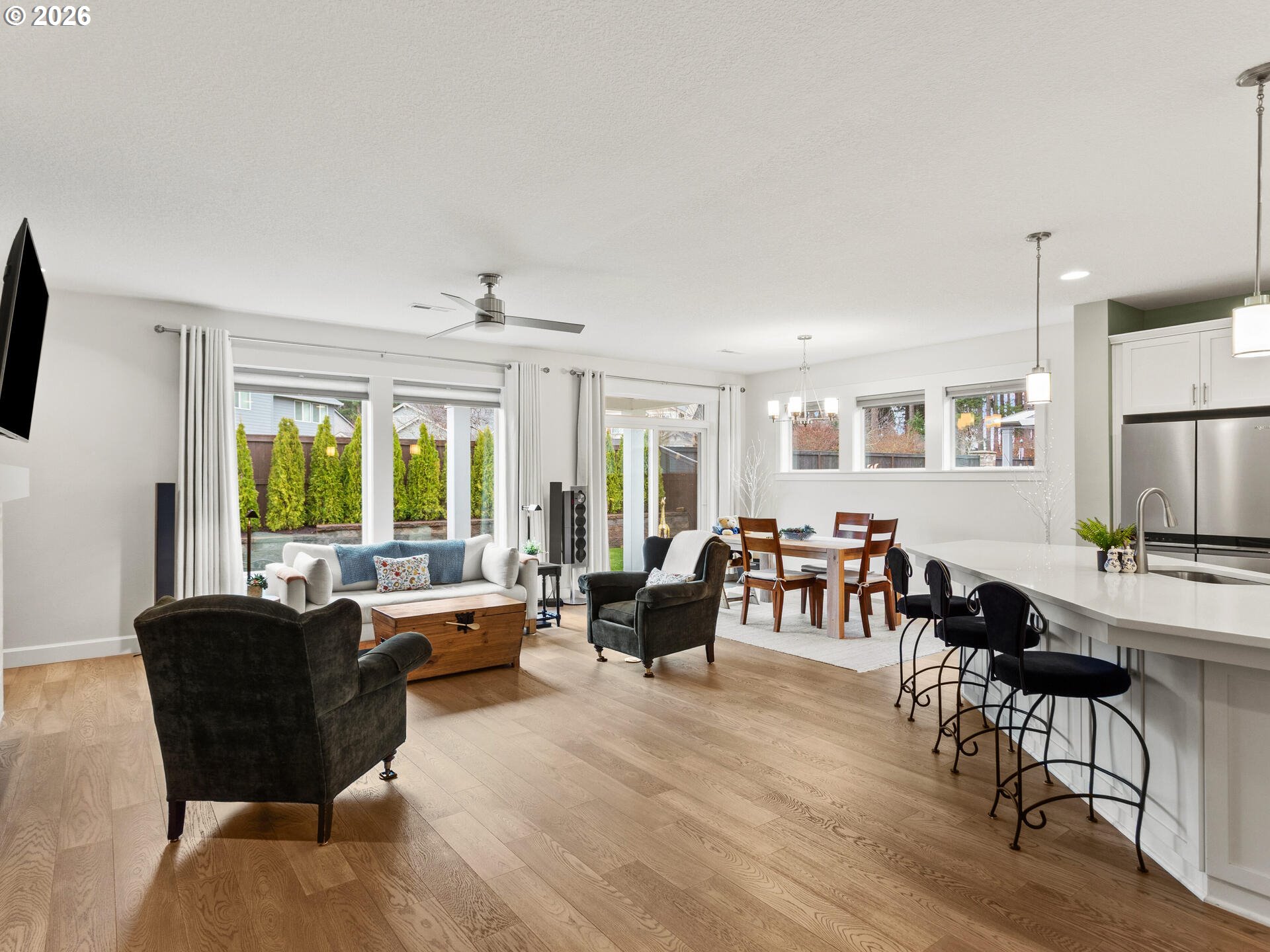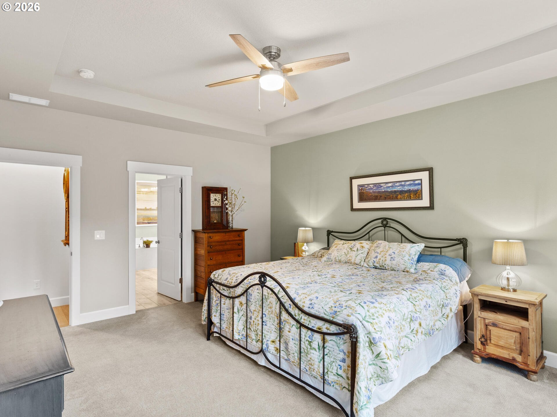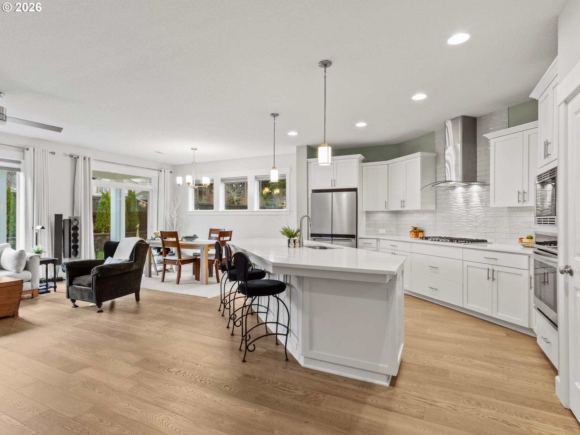 (503) 893-8874Gorgeous Ranch Home with Exceptional Attention to Detail. This beautifully designed ranch-style home offers an open and inviting floor plan filled with thoughtful upgrades and quality finishes plus custom blinds throughout. The gourmet kitchen is a true centerpiece, featuring a 5-burner gas cooktop, built-in microwave and oven, expansive island with sink and storage, breakfast bar, and a pantry. Perfect for entertaining, the kitchen flows seamlessly into the dining nook and welcoming family room highlighted by a cozy fireplace. The oversized Owner’s Suite is a private retreat, complete with a stunning coffered ceiling, ceiling fan, abundant natural light, and space for a sitting area. The luxurious en-suite bath offers dual sinks, a relaxing soaking garden tub, separate step-in shower, and a custom walk-in closet. Step outside to a fully fenced and low maintenance backyard featuring artificial lawn, designed for enjoyment and functionality. The covered patio creates the perfect outdoor living space, while raised garden beds, mature trees, a drip irrigation system and a tool shed add both beauty and convenience. Additional highlights include an extra-large two-car garage with space for a workshop, energy-efficient tankless water heater, and attractive laminate flooring throughout. Summer is coming - no worries - central heating and air for year-round comfort. This home perfectly blends comfort, functionality, and style—ready for you to move in and enjoy.