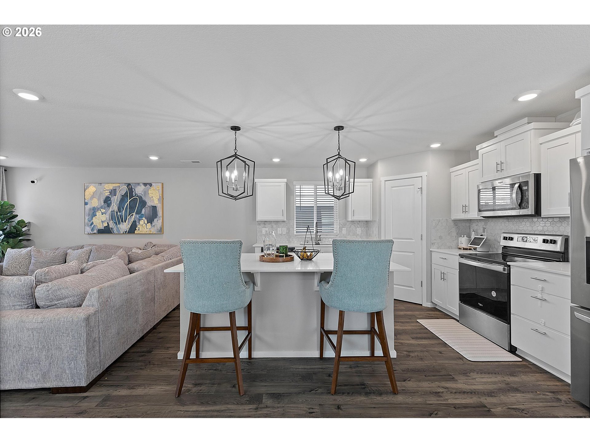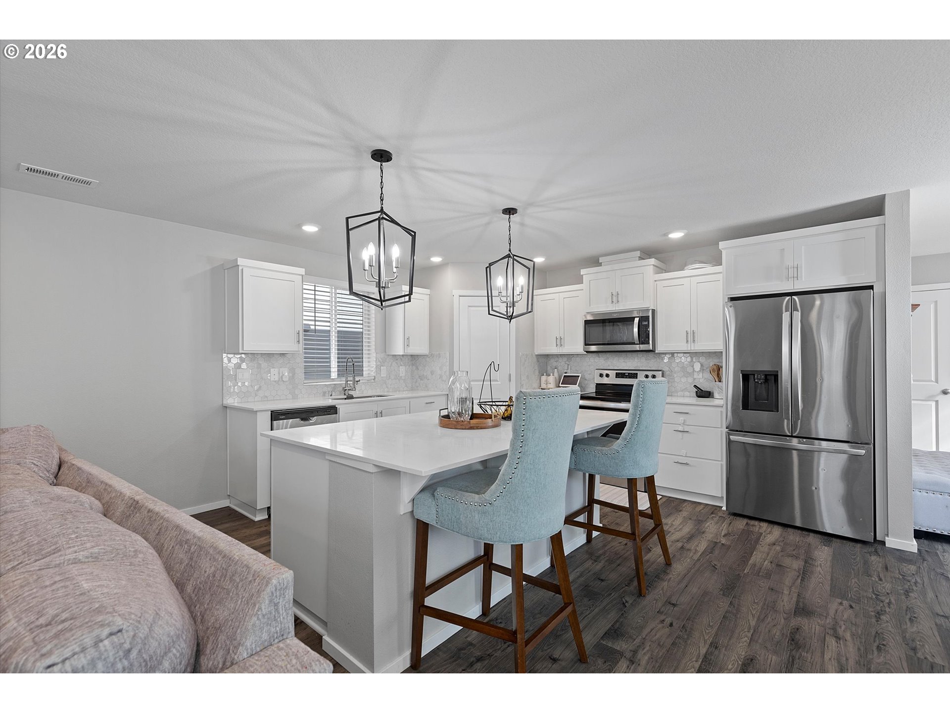 Discover the perfect blend of comfort and style in this move-in-ready home, in one of Ridgefield’s most desirable and rapidly growing communities. Surrounded by high-end luxury estates and scenic trails, this property offers a premier lifestyle with the peace of mind of a 10-year transferable warranty. Step inside into an open-concept floor plan featuring luxury vinyl and laminate flooring throughout the main level. The heart of the home is a chef-inspired kitchen boasting Premium quartz countertops and stylish tile backsplashes; a functional center island perfect for entertaining; gas appliances; and a spacious walk-in pantry—a cozy gas fireplace in the great room for chilly evenings. The Paint and light fixtures have been upgraded.