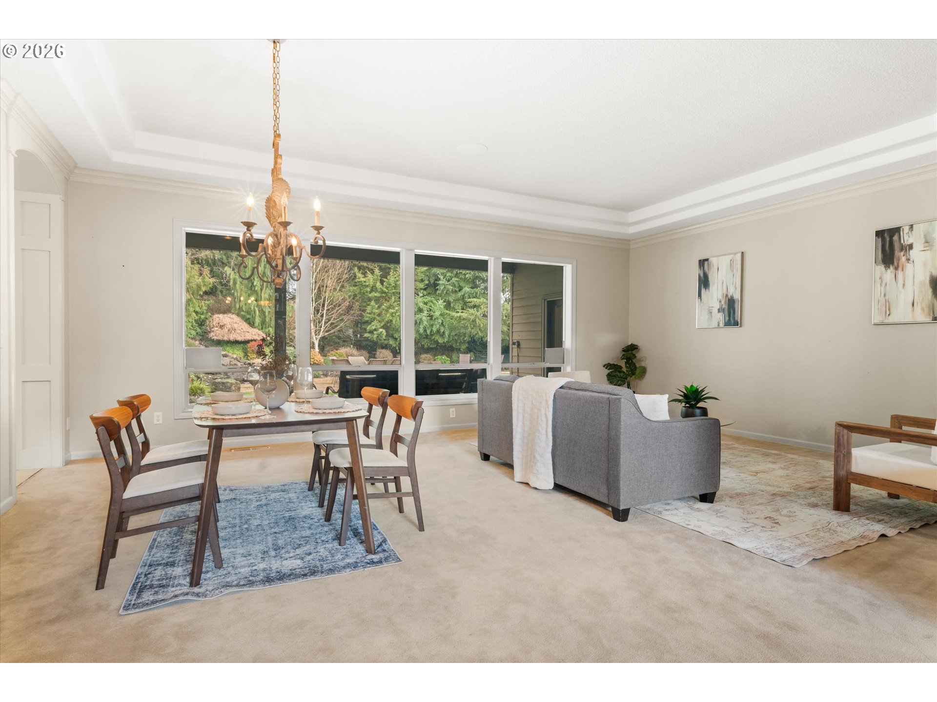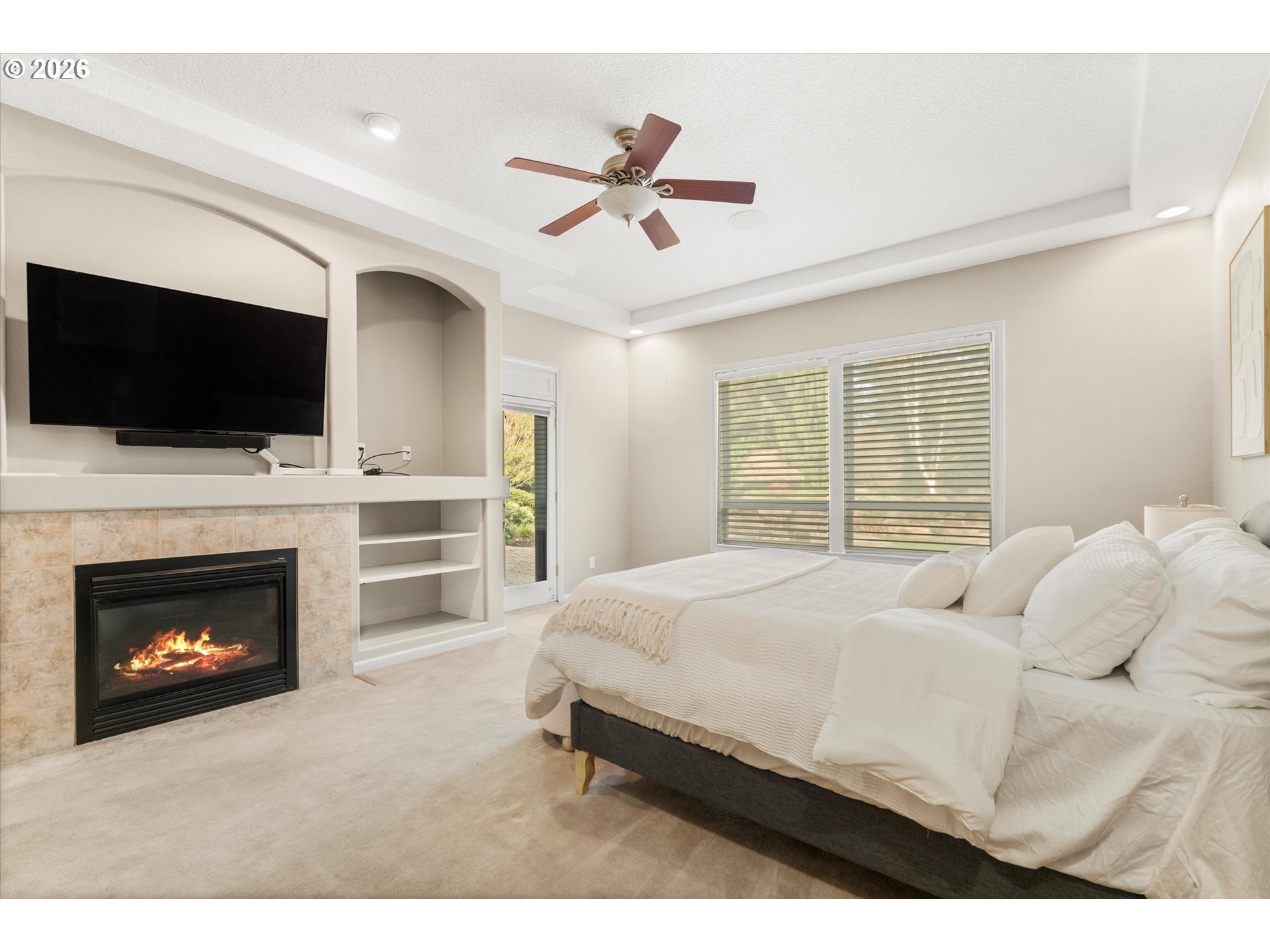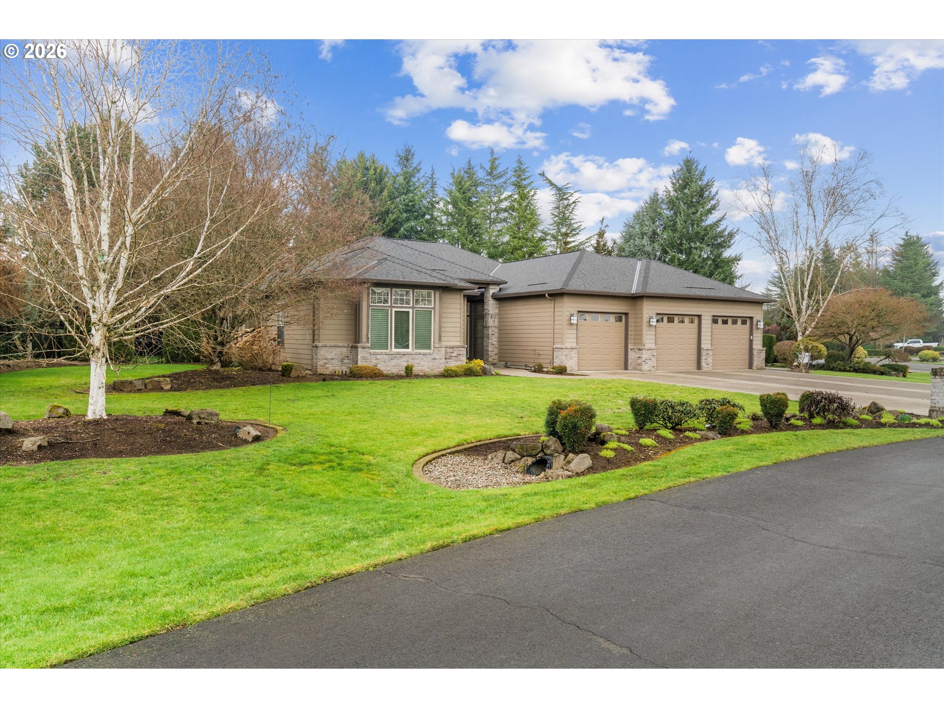 Rare single-level luxury estate on a private, fully fenced acre with no HOA, offering refined interiors and resort-style outdoor living. Designed for comfort and entertaining, the home features 10’ ceilings and 8’ doors throughout, an open-concept layout, and a private primary wing.The spacious primary suite includes a gas fireplace, direct access to the covered patio, a large walk-in closet, and a spa-inspired bath with jetted tub and walk-in shower with dual shower heads. A dedicated office with custom built-ins provides flexibility and can serve as a fourth bedroom.The backyard is a true retreat, featuring a heated pool with integrated hot-jet tub, gas fire pit, waterfall feature, mature landscaping, and a covered patio ideal for year-round enjoyment. Recent upgrades include a new roof, new furnace, new A/C, new pool heater and pumps, water softener system, surround sound, security system with cameras, outdoor TV, WiFi extenders, and pool cover control.Additional highlights include an attached 3-car garage plus a detached 4th garage/RV parking. Private yet conveniently located, this move-in-ready property offers exceptional lifestyle, space, and peace of mind.
