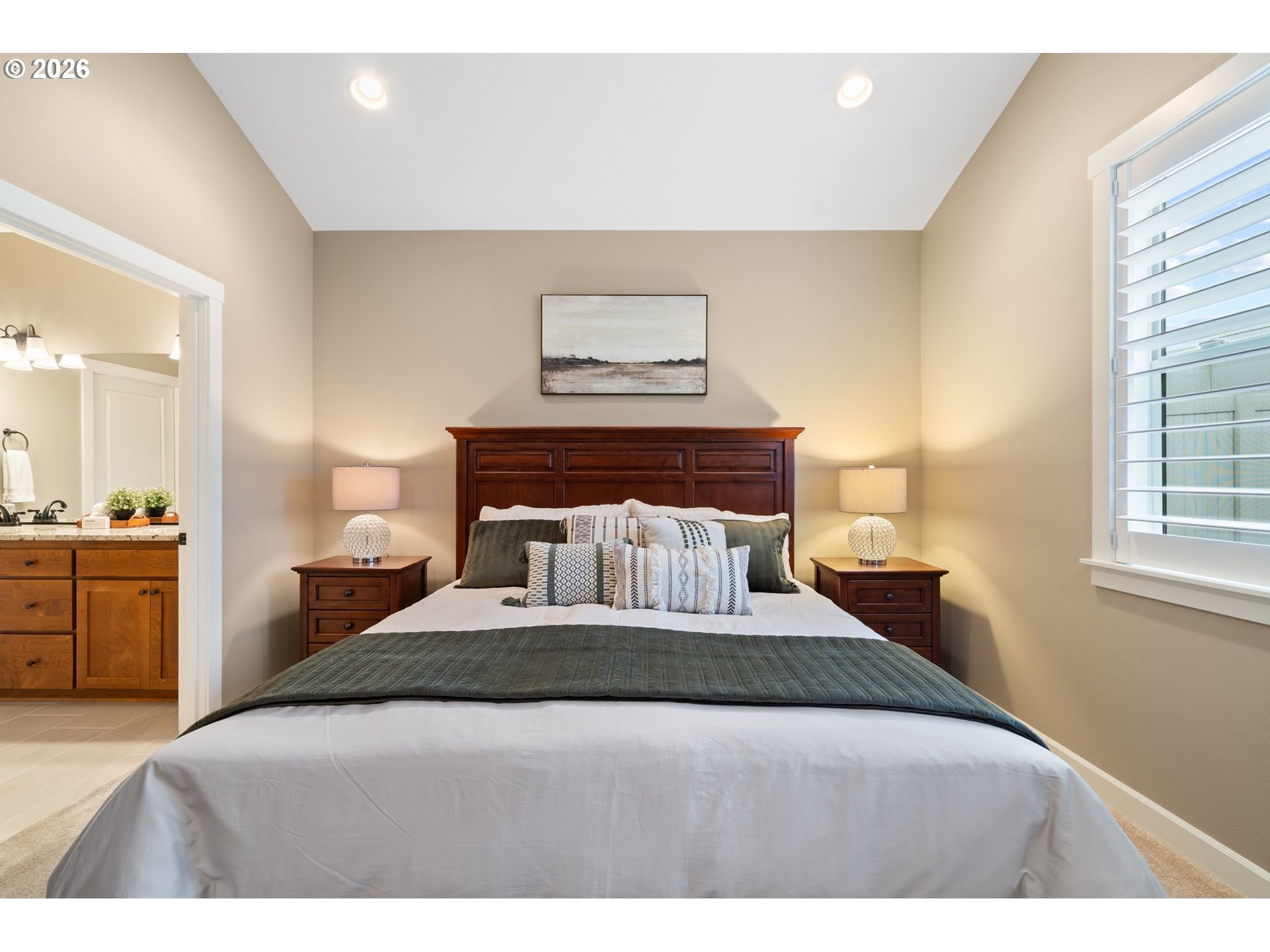 Step into your next chapter! Beautifully designed 3-bedroom, 3-bath home offering 2,138 sq ft of comfortable, elevated living in a highly sought-after 55+ community. This thoughtfully designed open-concept ranch floor plan features a rare and versatile upper-level loft with additional bedroom and full bath—a standout layout not often found within the neighborhood, ideal for guests, hobbies, or flexible living space.Soaring vaulted ceilings and rich hardwood flooring enhance the main living areas, while the spacious great room showcases a cozy fireplace, built-ins, and abundant natural light. The gourmet kitchen shines with slab granite countertops, stainless steel appliances, center island, pantry, and generous storage—perfect for entertaining or everyday ease.The main-level primary suite offers a relaxing retreat with vaulted ceilings, walk-in closet with organizers, double sinks, and walk-in tile shower. A formal dining room, mudroom, and additional bedroom on the main level provide comfortable flexibility for everyday living or hosting guests.Enjoy easy outdoor living with a covered patio, fenced yard, artificial turf, and sprinkler system designed for low-maintenance upkeep—plus HOA-covered front yard maintenance for added ease. Attached 2-car garage and driveway parking add everyday convenience.Ideally located just moments from shopping, dining, medical services, and freeway access.A unique opportunity to own one of the community’s more flexible and spacious floor plans—offering comfort, functionality, and room to live exactly how you choose.