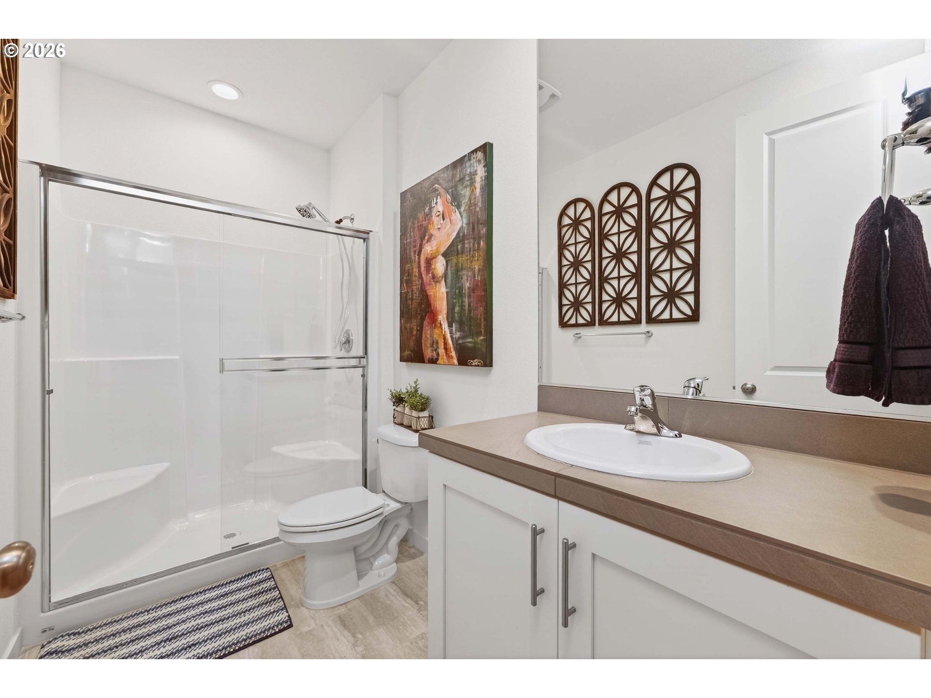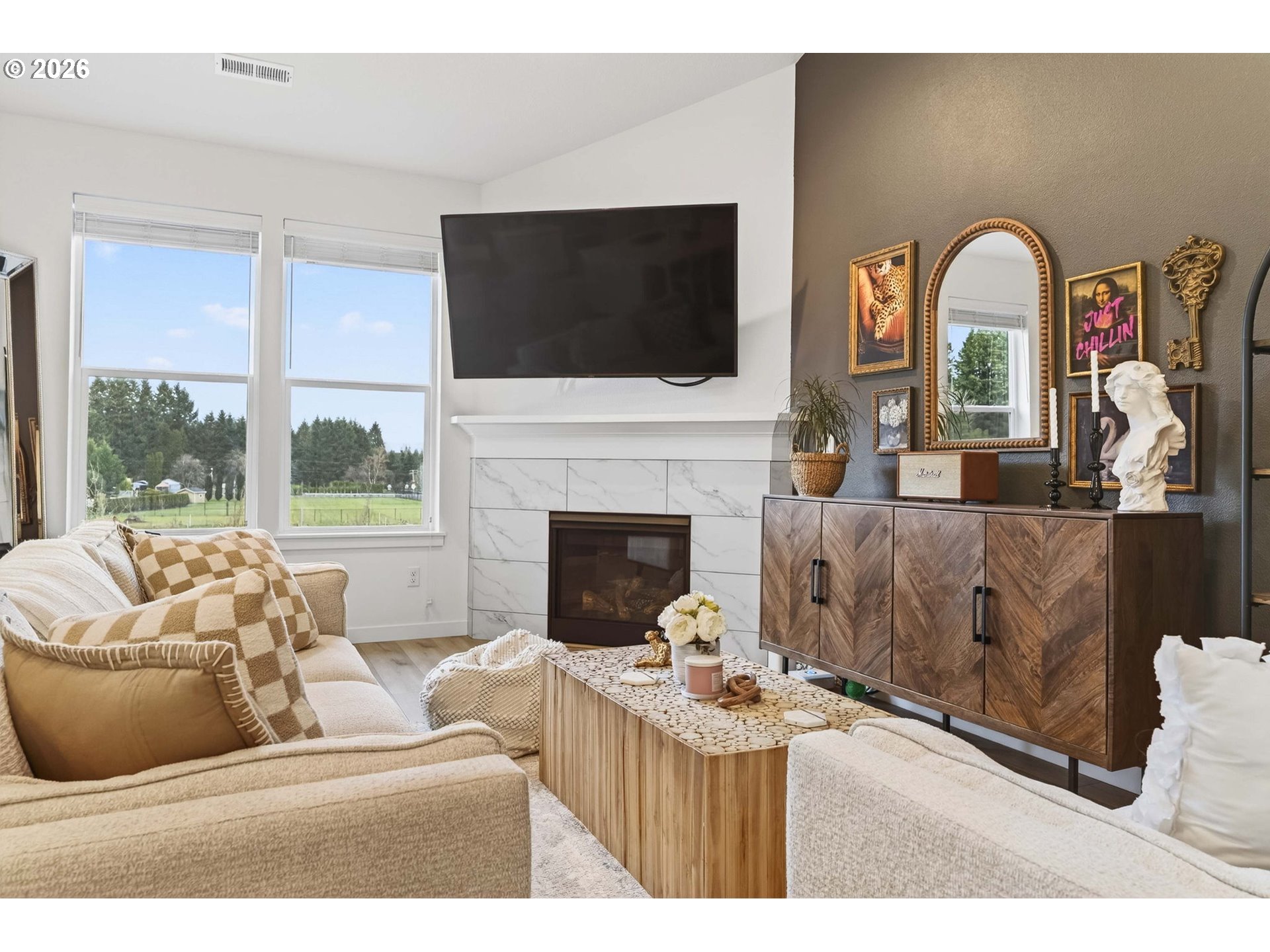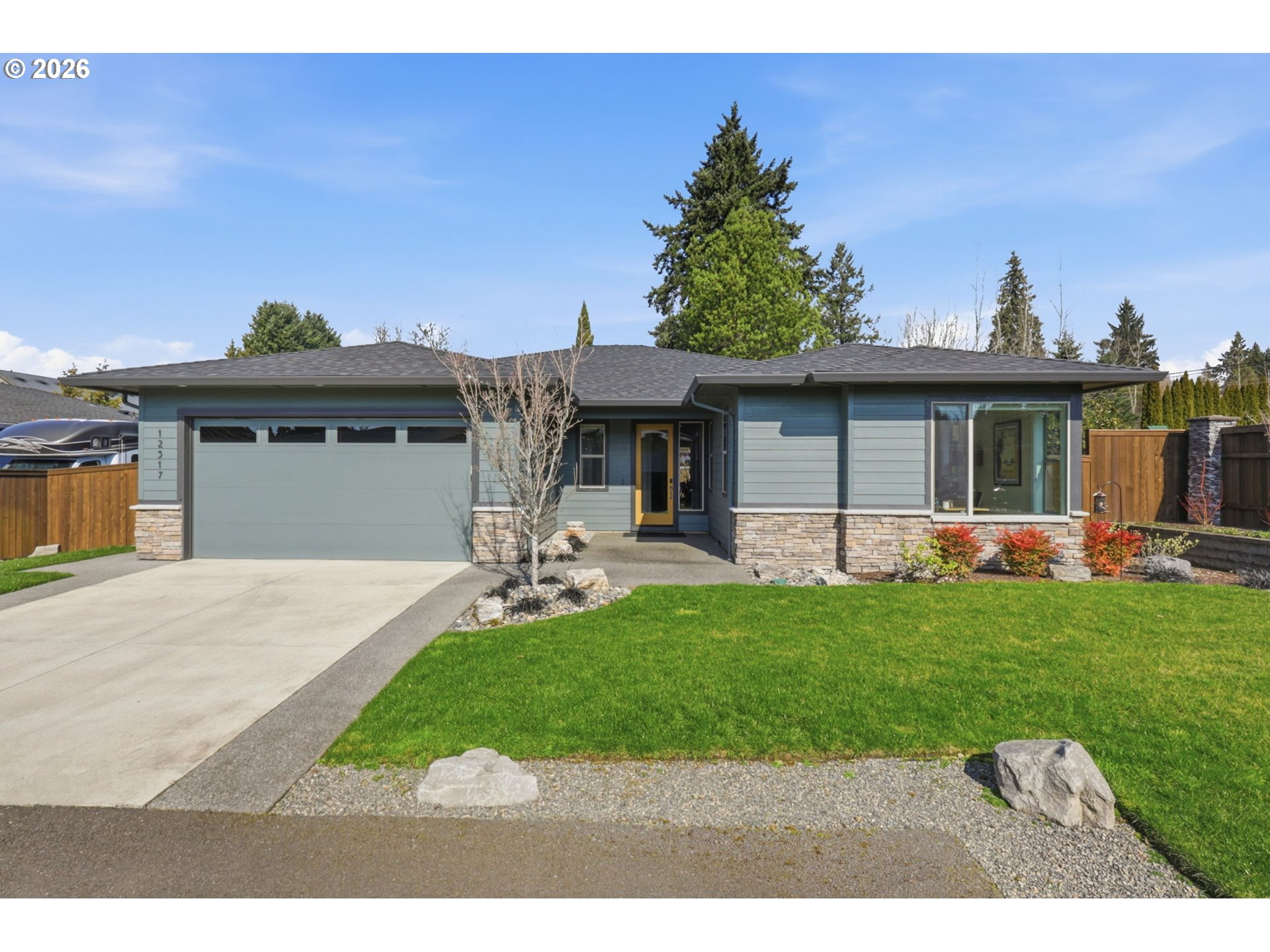 Tucked into the peaceful Ramble Creek community, this Holt Homes 2096 floor plan delivers flexibility, comfort, and stunning territorial views. The main level features 2 bedrooms and 2 full baths, including the primary suite — ideal for everyday living or multi-generational needs. Upstairs you'll find 2 additional bedrooms and a full bath, perfect for all your needs - guests, hobbies, home office, you name it. The open-concept kitchen features quartz counters, gas range, and stainless appliances flowing into a light-filled living space with fireplace and views of HOA-protected greenspace. Step onto the covered deck to enjoy quiet mornings with no direct rear neighbors. The low-maintenance backyard is ready for your vision — a tiered garden, privacy hedges, or simple landscaping. A functional 3-car tandem garage adds storage and workshop potential. Enjoy neighborhood parks and walking trails, all minutes from everyday amenities - Trader Joe's, Fred Meyer, Clark County Fairgrounds, WSU Vancouver, Legacy Salmon Creek Hospital.