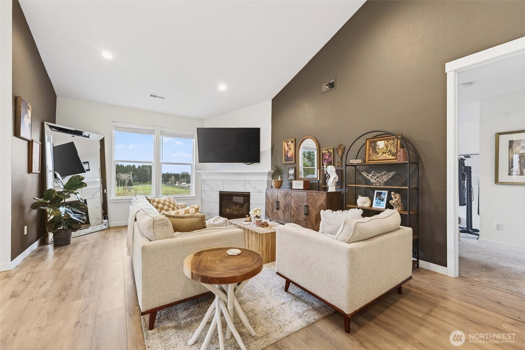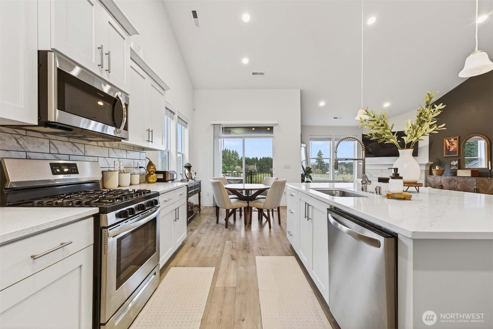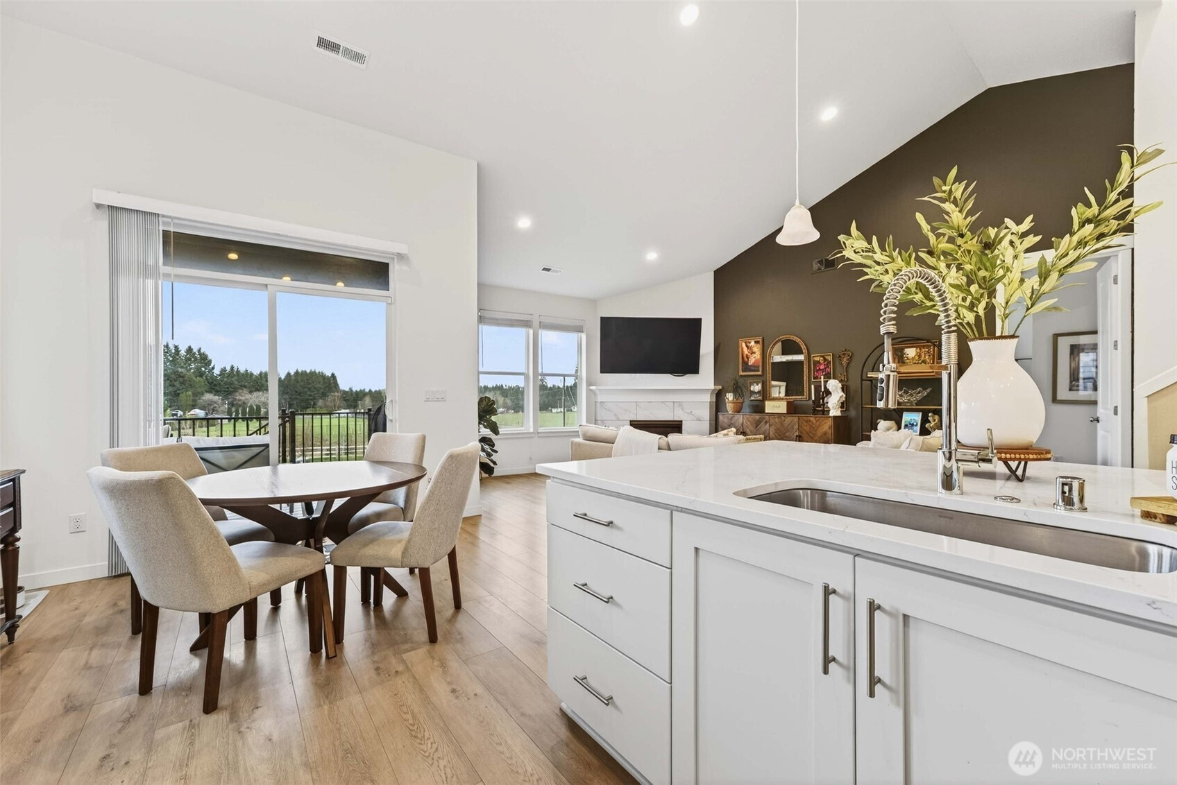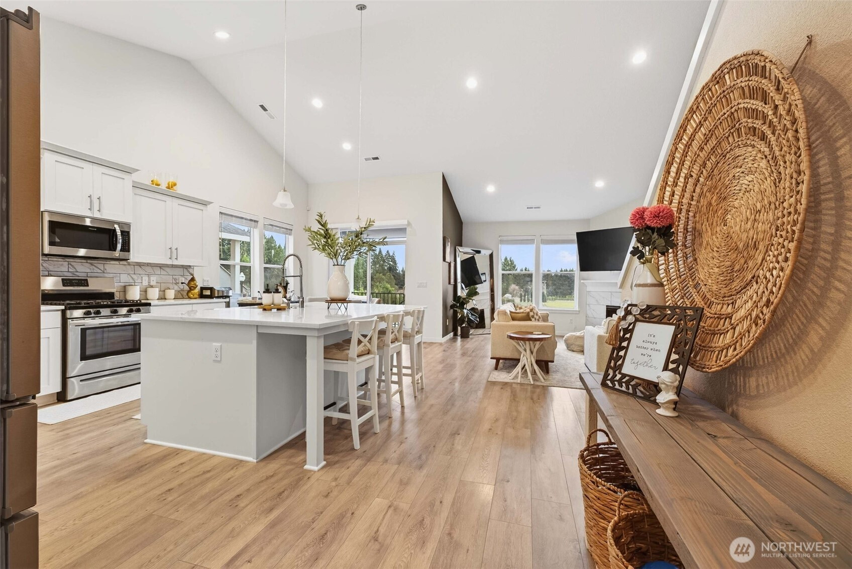 Tucked into the peaceful Ramble Creek community, this Holt Homes 2096 floor plan delivers flexibility, comfort, and stunning territorial views. The main level features 2 bedrooms and 2 full baths, including the primary suite — ideal for everyday living or multi-generational needs. Upstairs you'll find 2 additional bedrooms and a full bath, perfect for all your needs - guests, hobbies, home office, you name it. The open-concept kitchen features quartz counters, gas range, and stainless appliances flowing into a light-filled living space with fireplace and views of HOA-protected greenspace. Step onto the covered deck to enjoy quiet mornings with no direct rear neighbors. The low-maintenance backyard is ready for your vision — a tiered garden, privacy hedges, or simple landscaping. A functional 3-car tandem garage adds storage and workshop potential. Enjoy neighborhood parks and walking trails, all minutes from everyday amenities - Trader Joe's, Fred Meyer, Clark County Fairgrounds, WSU Vancouver, Legacy Salmon Creek Hospital.