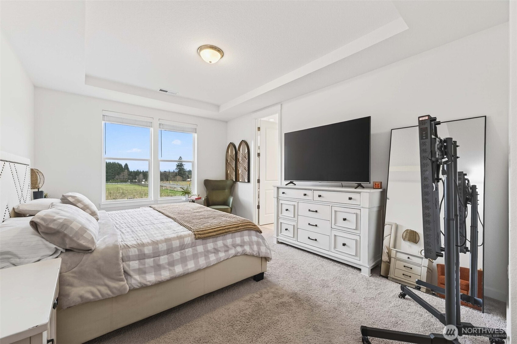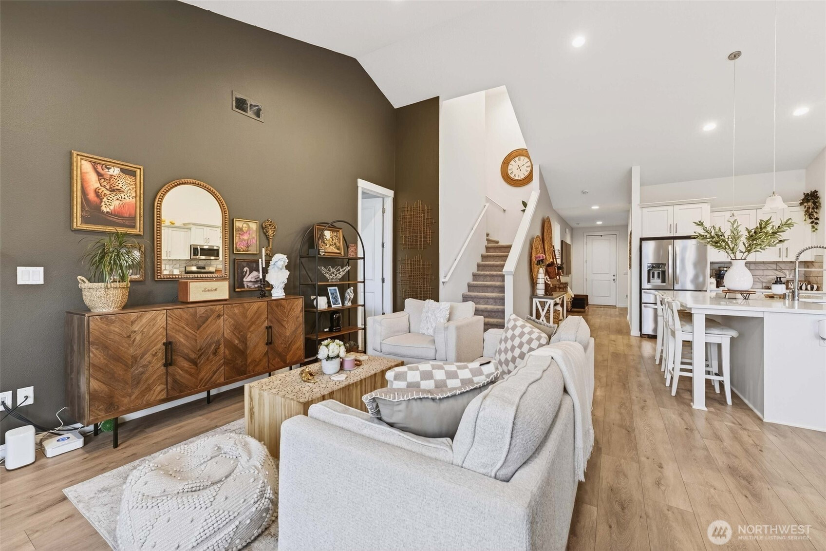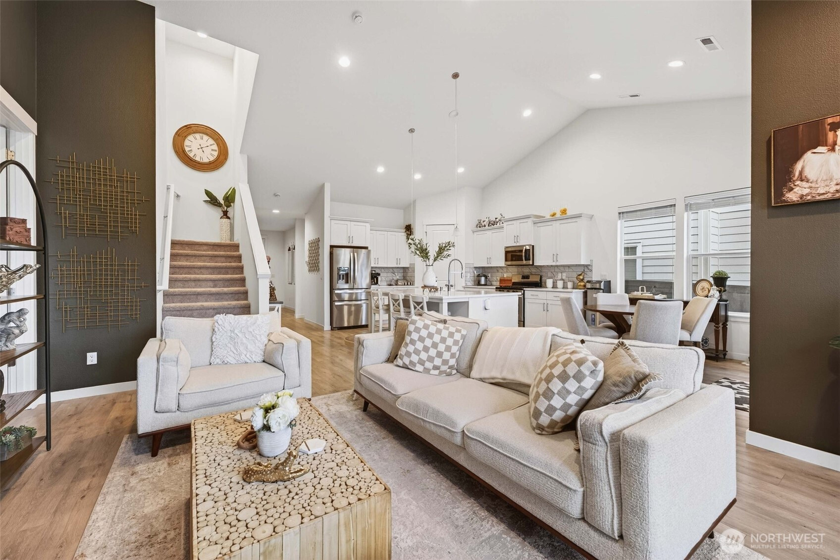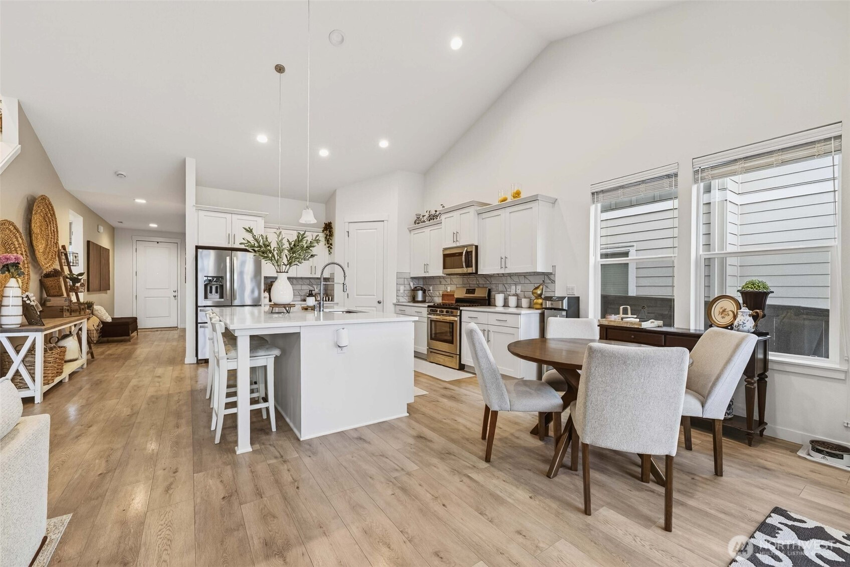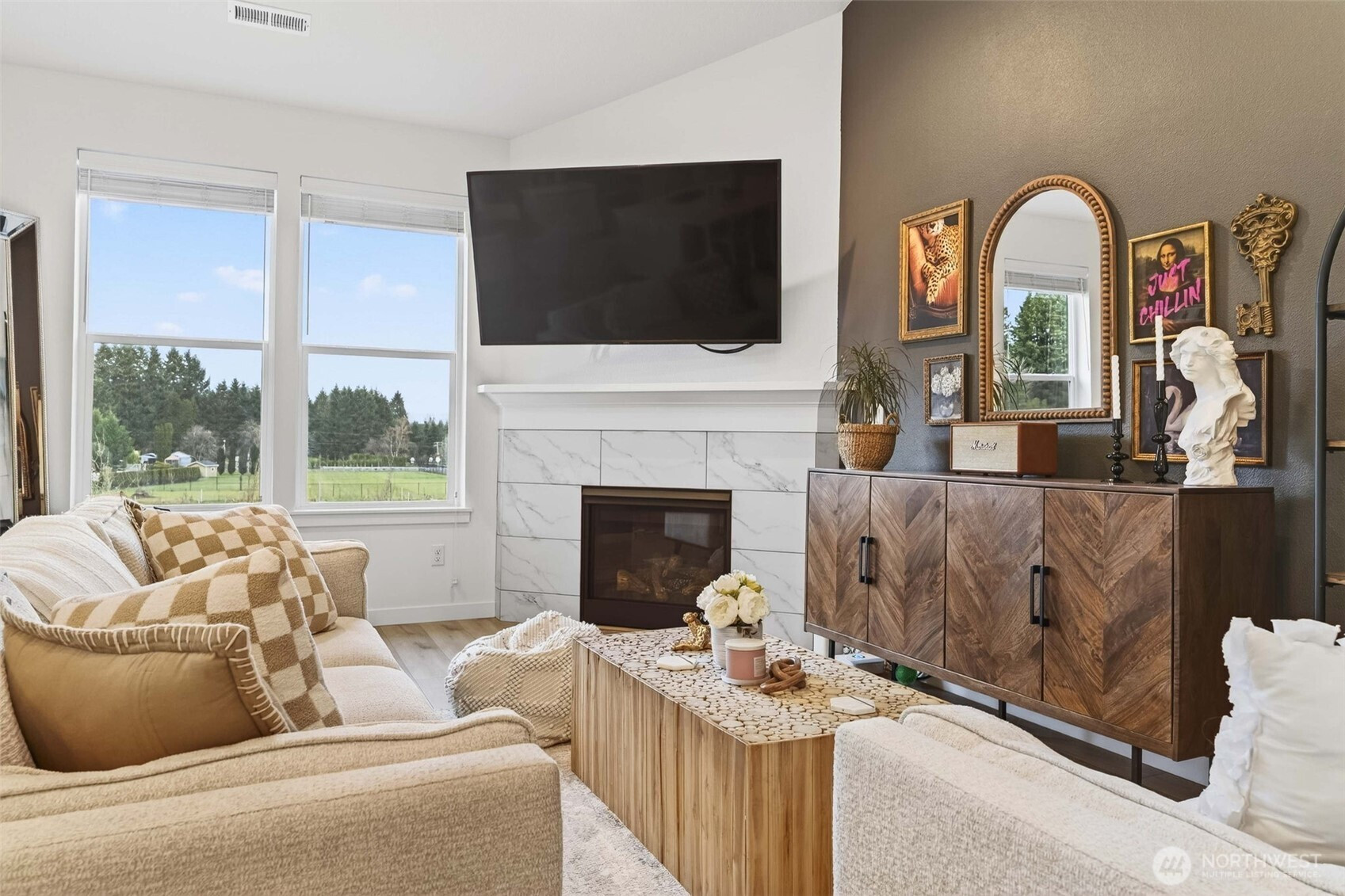 Tucked into the peaceful Ramble Creek community, this Holt Homes 2096 floor plan delivers flexibility, comfort, and stunning territorial views. The main level features 2 bedrooms and 2 full baths, including the primary suite — ideal for everyday living or multi-generational needs. Upstairs you'll find 2 additional bedrooms and a full bath, perfect for all your needs - guests, hobbies, home office, you name it. The open-concept kitchen features quartz counters, gas range, and stainless appliances flowing into a light-filled living space with fireplace and views of HOA-protected greenspace. Step onto the covered deck to enjoy quiet mornings with no direct rear neighbors. The low-maintenance backyard is ready for your vision — a tiered garden, privacy hedges, or simple landscaping. A functional 3-car tandem garage adds storage and workshop potential. Enjoy neighborhood parks and walking trails, all minutes from everyday amenities - Trader Joe's, Fred Meyer, Clark County Fairgrounds, WSU Vancouver, Legacy Salmon Creek Hospital.
