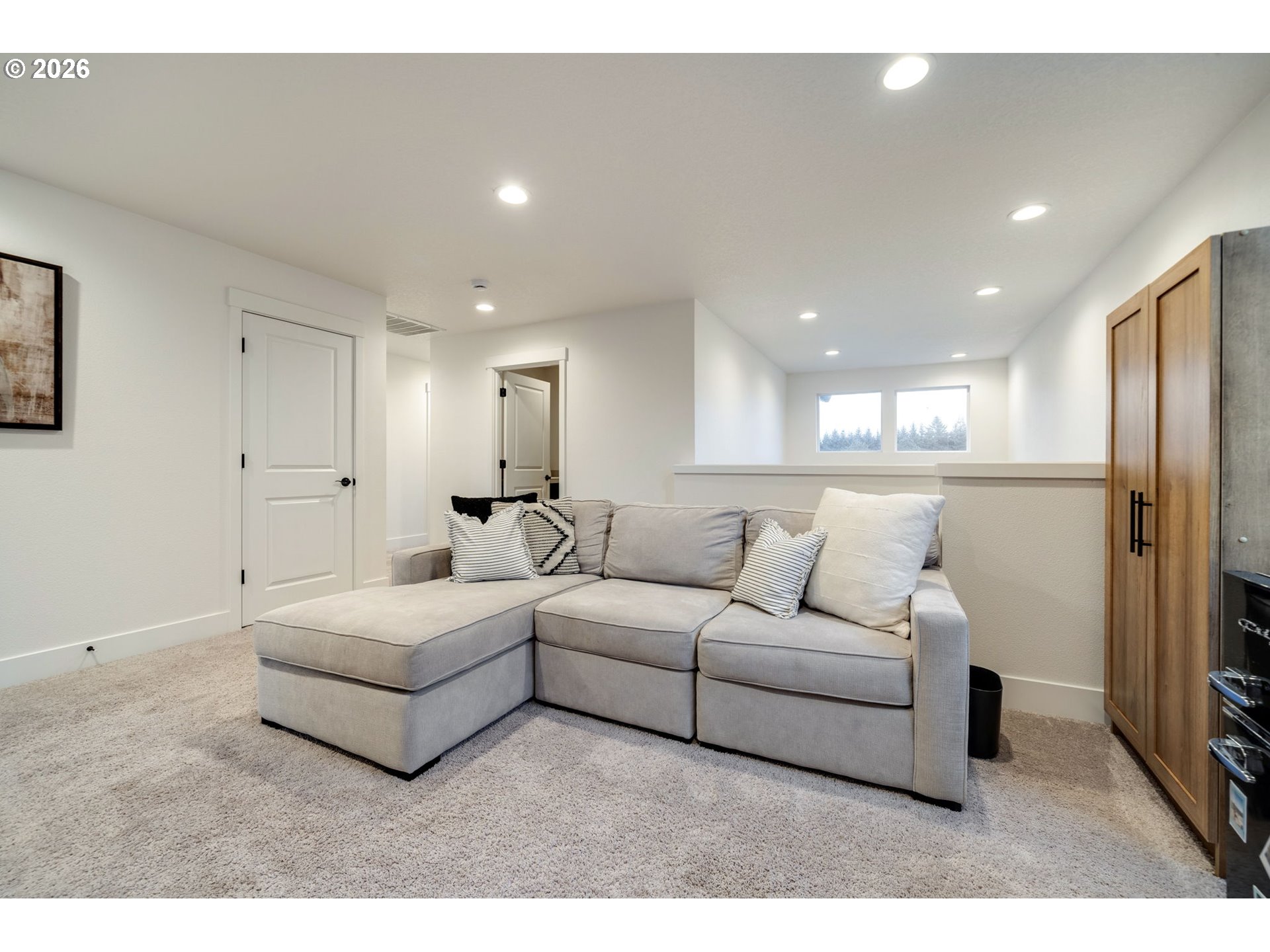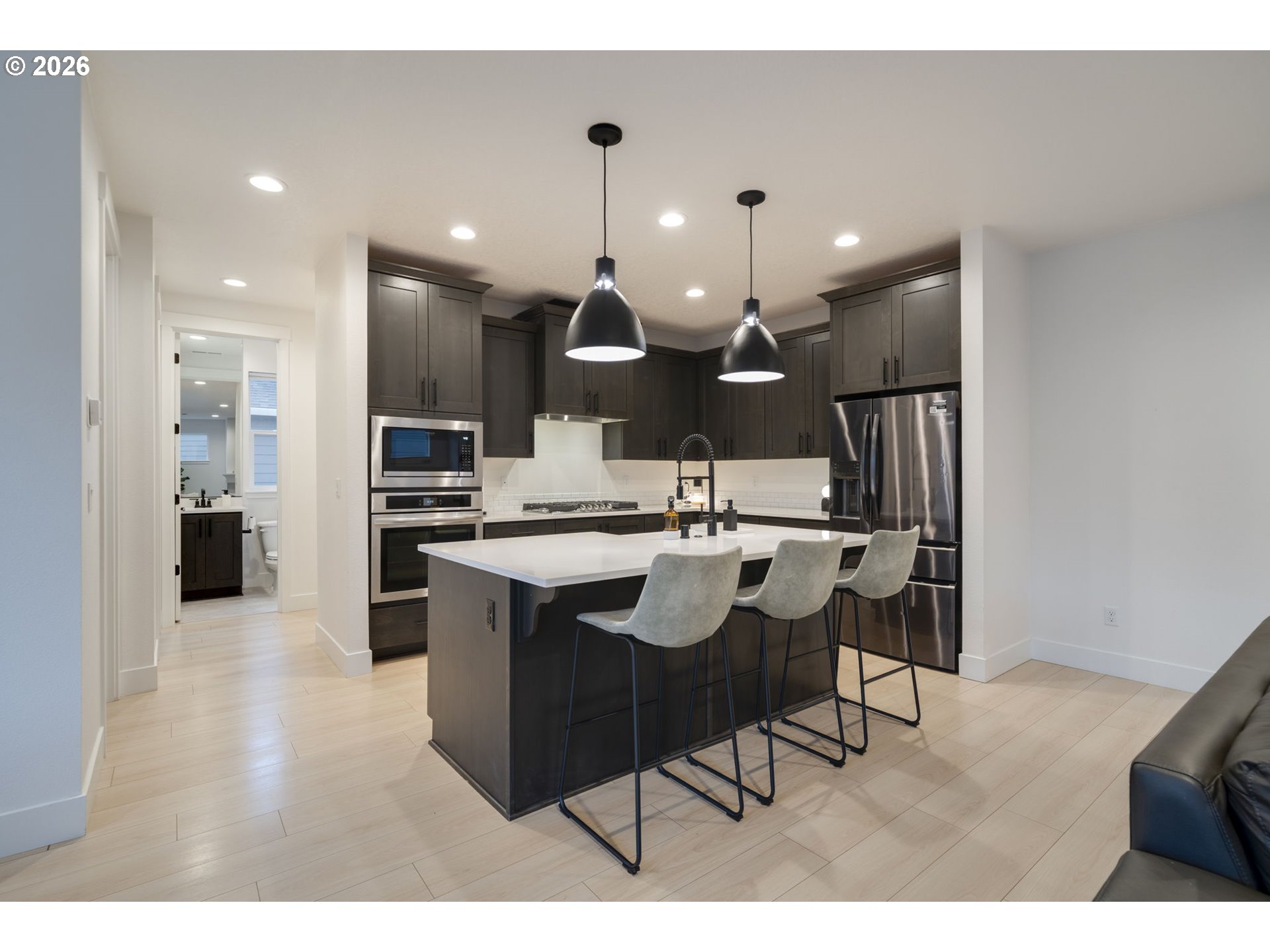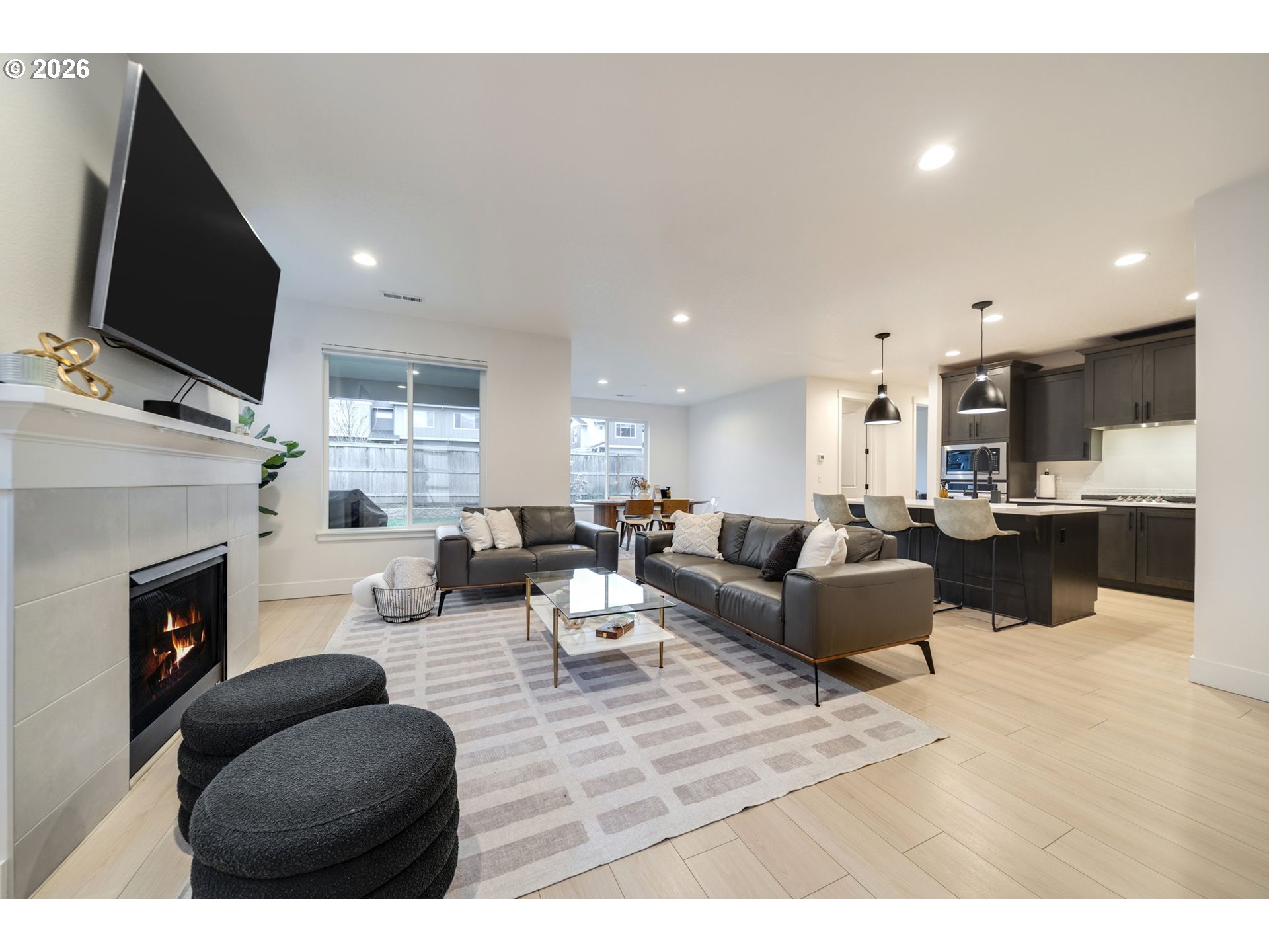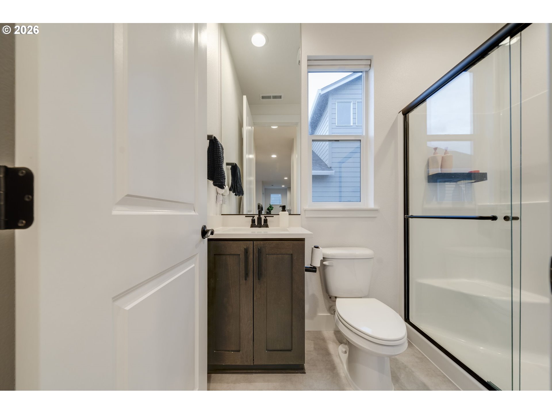 Ideally situated between Ridgefield and Salmon Creek, this beautifully maintained home offers the perfect balance of peaceful surroundings and everyday convenience. Enjoy a rural feel while remaining just minutes from shopping, dining, and freeway access. With 4 bedrooms, 3 full bathrooms, and 2,390 square feet of thoughtfully designed living space, this home blends modern style with practical comfort. The open-concept great room welcomes you with a cozy fireplace and seamless flow into the well-appointed kitchen — complete with a large island, quartz countertops, stainless steel appliances, a 5-burner gas cooktop, convection wall oven, and a spacious walk-in pantry.The main level includes a guest bedroom with a full bath nearby, ideal for visitors or multi-generational living. Upstairs, the expansive primary suite is a true retreat, featuring a coffered ceiling, abundant natural light, a walk-in closet, and a private en-suite bath with double sinks, walk-in shower, and separate water closet. Two additional bedrooms — including one with a walk-in closet — are connected by an open bonus loft, perfect for a home office, media area, or flexible living space. A conveniently located upstairs laundry room adds everyday ease.Tucked close to the end of a quiet lane, the fully fenced backyard provides privacy and space to unwind. The covered patio creates an ideal setting for outdoor entertaining or relaxing evenings at home. With easy freeway access and close proximity to shopping — including the new Salmon Creek Trader Joe’s — this home truly offers the best of both worlds.