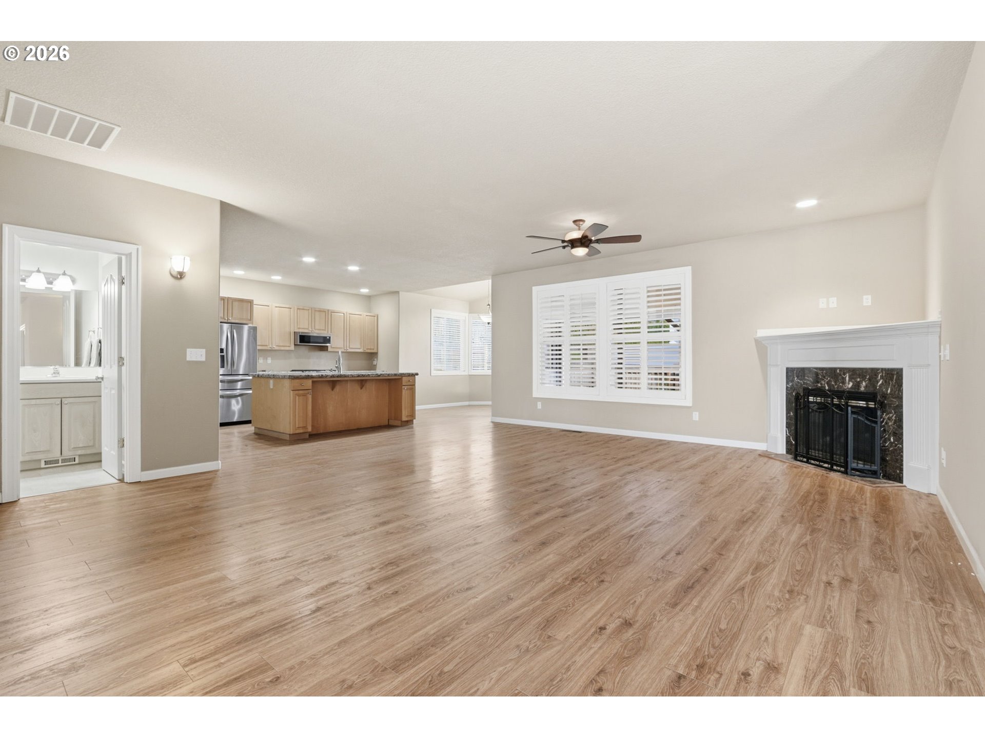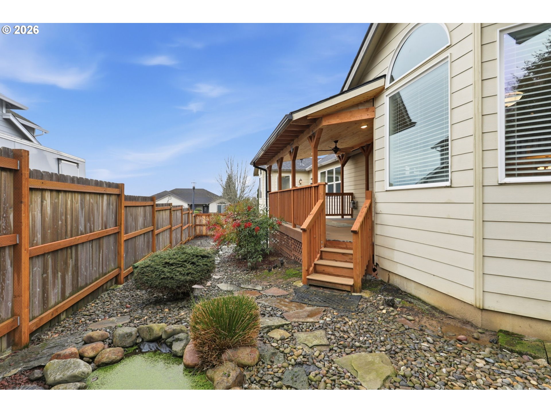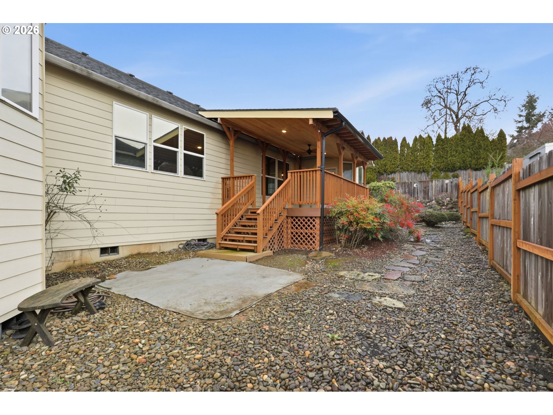 Inviting single-level living in a quiet La Center neighborhood with room to breathe both inside and out. High ceilings and natural light give the main living spaces an open, airy feel, complemented by durable laminate flooring and comfortable carpeted bedrooms.The kitchen offers a functional centerpiece with an island, pantry storage, and built-in appliances that keep the space clean and efficient. The primary suite features a spacious bath with both a soaking tub and jetted tub—an ideal place to slow down and recharge. Additional bedrooms allow flexibility for guests, home office needs, or creative space. A dedicated laundry room adds everyday practicality.Outdoors, the fully fenced yard is designed for low upkeep and enjoyment, featuring xeriscape landscaping and a covered deck. RV parking adds versatility and convenience. Recent Updates Include: New roof (2024), new deck and covered outdoor area (2024), gas fireplace (2024), granite slab kitchen countertops and plantation shutters (2021), and all flooring and carpet replaced in 2020. Located close to schools, parks, and local amenities, this home offers a relaxed setting with the comforts already in place.