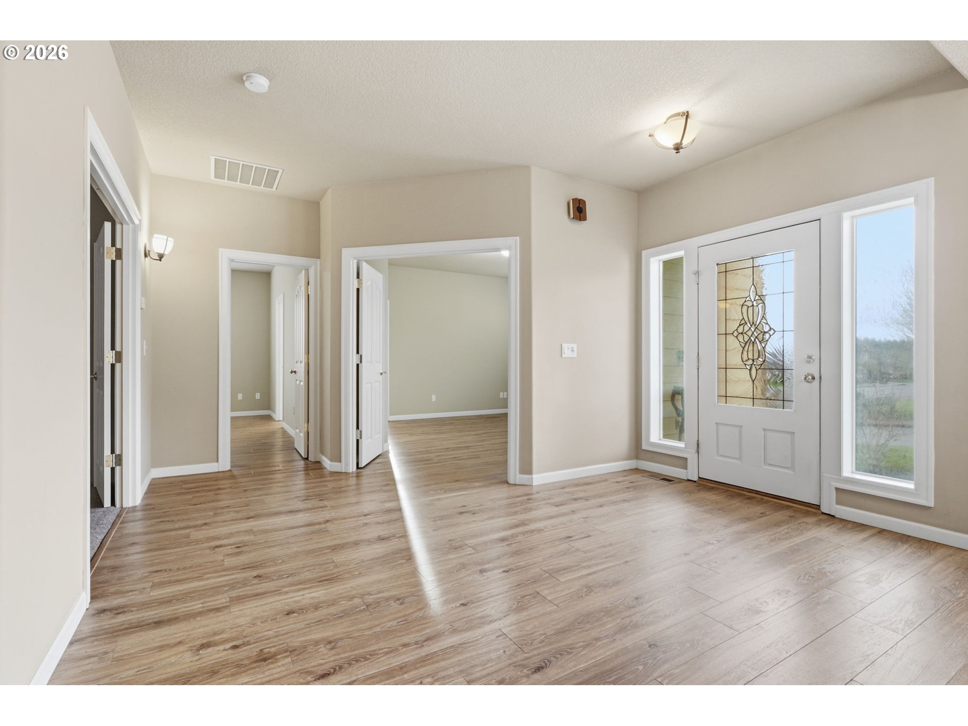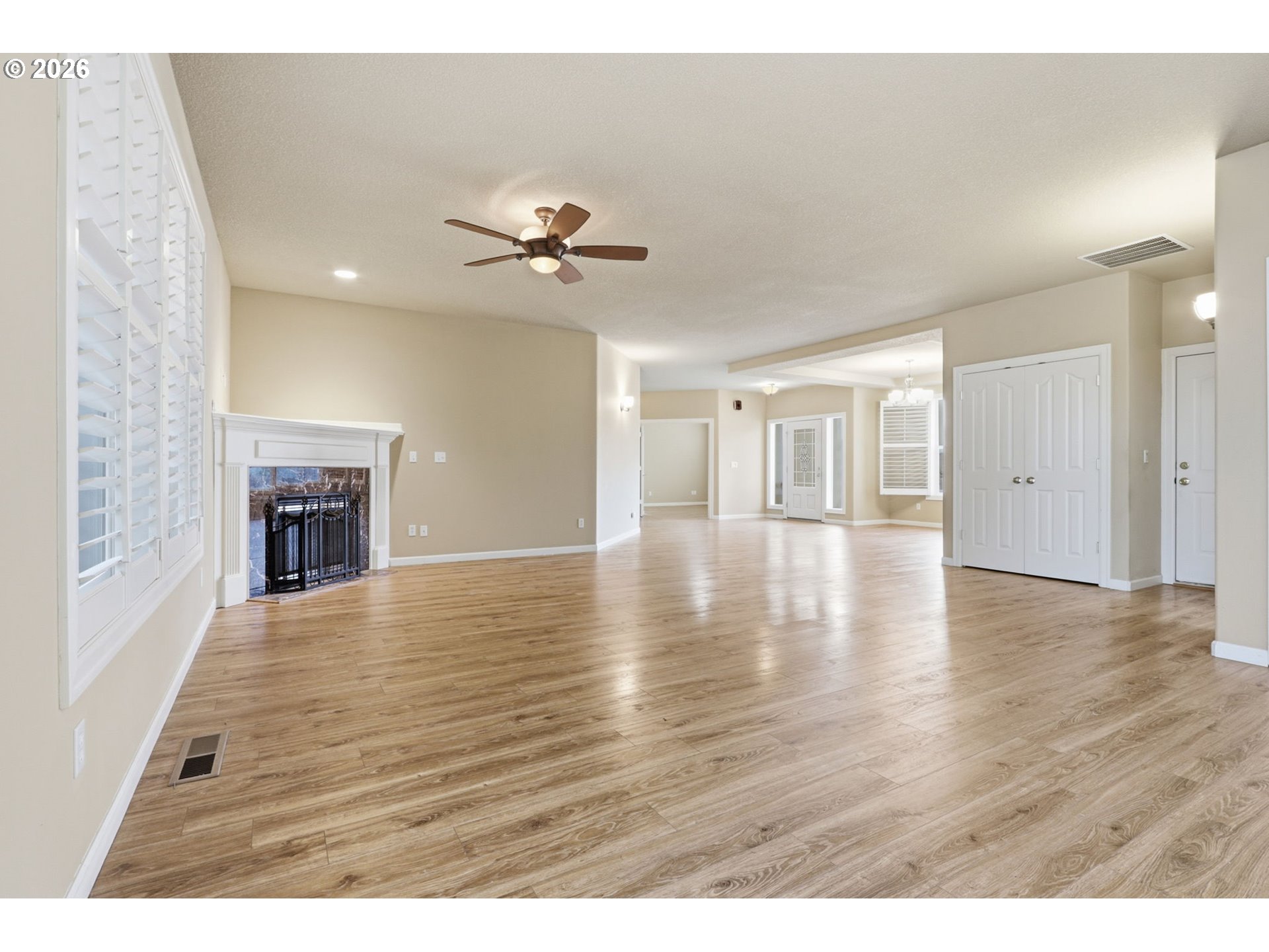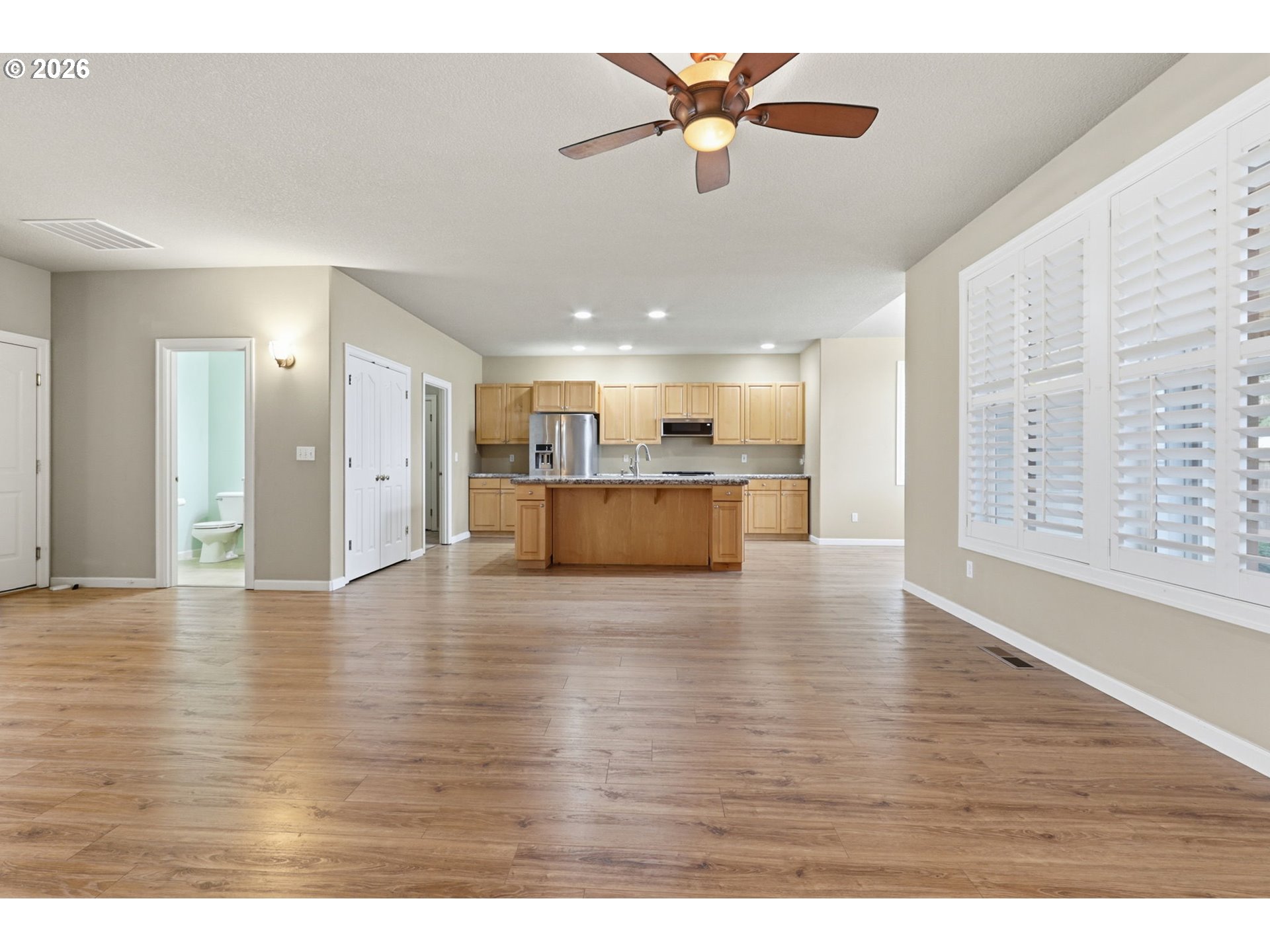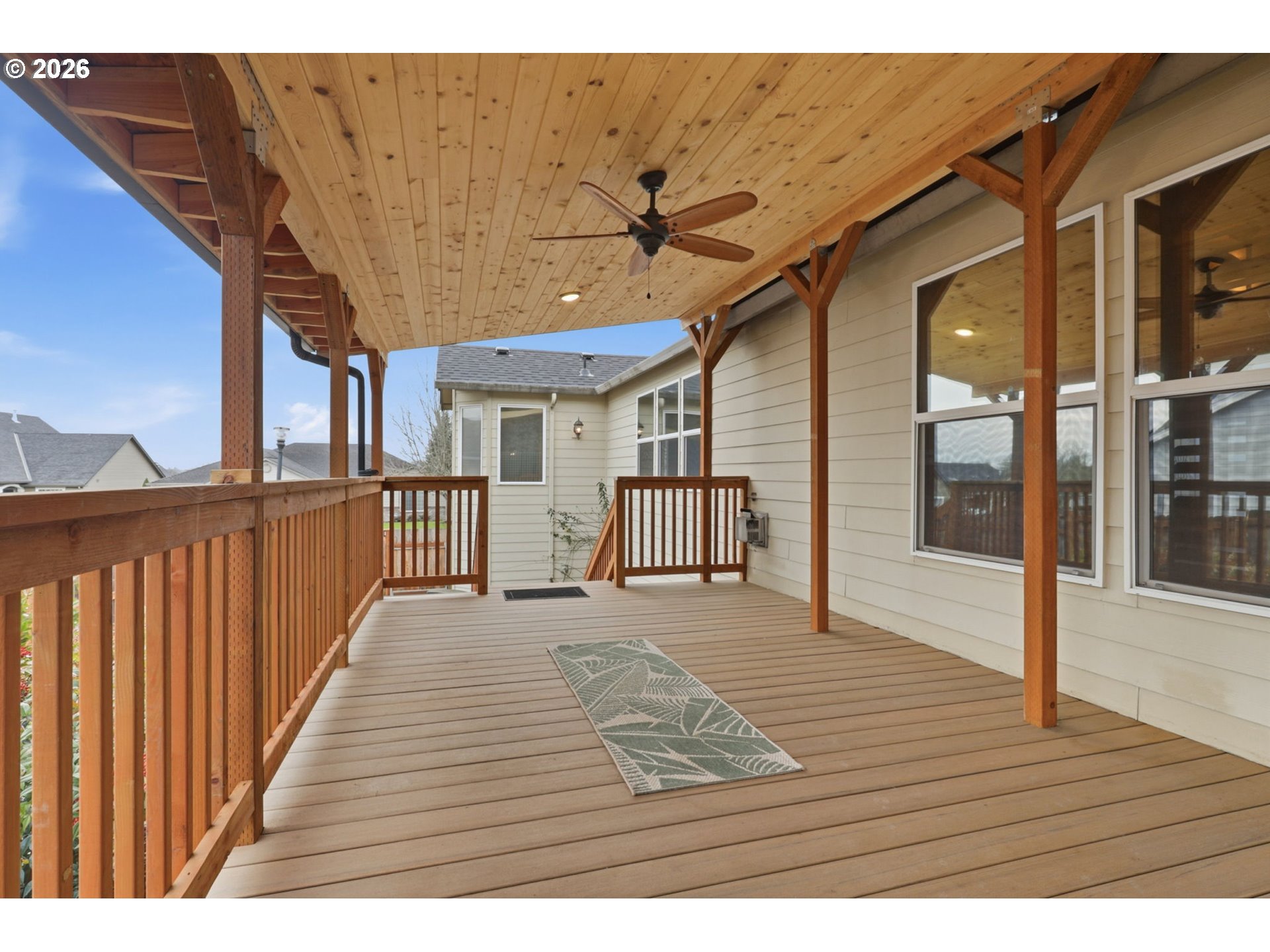 Inviting single-level living in a quiet La Center neighborhood with room to breathe both inside and out. High ceilings and natural light give the main living spaces an open, airy feel, complemented by durable laminate flooring and comfortable carpeted bedrooms.The kitchen offers a functional centerpiece with an island, pantry storage, and built-in appliances that keep the space clean and efficient. The primary suite features a spacious bath with both a soaking tub and jetted tub—an ideal place to slow down and recharge. Additional bedrooms allow flexibility for guests, home office needs, or creative space. A dedicated laundry room adds everyday practicality.Outdoors, the fully fenced yard is designed for low upkeep and enjoyment, featuring xeriscape landscaping and a covered deck. RV parking adds versatility and convenience. Recent Updates Include: New roof (2024), new deck and covered outdoor area (2024), gas fireplace (2024), granite slab kitchen countertops and plantation shutters (2021), and all flooring and carpet replaced in 2020. Located close to schools, parks, and local amenities, this home offers a relaxed setting with the comforts already in place.