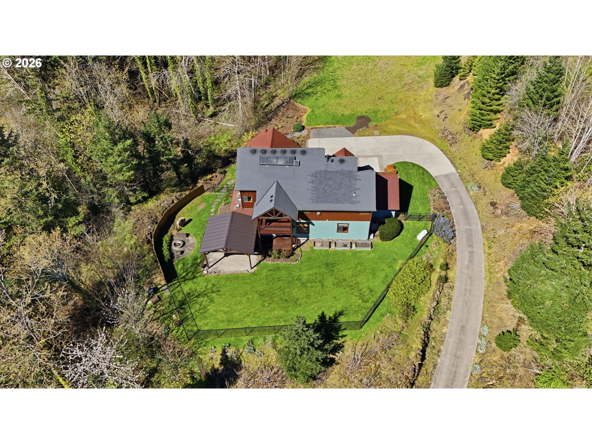 (503) 893-8874This meticulously maintained residence, inspired by homes in the Colorado high country, sits on nearly an acre, offering a hilltop escape just minutes from Highway 14. Rarely does a property combine the desired seclusion with absolute central convenience, achieving the rare and ultimate "true trifecta" of privacy, view, and location.Throughout the home, views of Mt. Hood, the Columbia River and sweeping views of Oregon remain a constant backdrop from both levels. Experience a "lodge-like" atmosphere defined by cedar siding and high-end natural wood finishes. Inside, the space is open and bright, with vaulted ceilings, skylights, and large windows that pull in tons of natural light.The quality is in the details— custom wood windows, solid-core doors and a mix of the Brazilian Natural Cleft Slate and rich Tigerwood Cherry hardwoods. You'll also find cozy fireplaces on both levels to serve as elegant focal points, a soundproof theater room & a fully landscaped backyard. At the heart of the home, the kitchen is built for both daily life and hosting. It’s anchored by rich cherry cabinetry and expansive granite countertops that offer plenty of workspace. The area is flooded with natural light from three overhead skylights and unique "pie" windows that wrap the space, while Bosch and Electrolux appliances ensure it’s as functional as it is beautiful.Inside the primary suite, 14-foot vaulted ceilings soar above Cleft Slate flooring, while a corner gas fireplace adds flickering warmth. The room extends outdoors to an exclusive open deck, offering some of the home’s best views. The ensuite features dual sink stations with a jetted tub positioned to capture the serene territorial vistas. The tiled roll-in shower offers a dual shower system and integrated seating, while the expansive walk-in closet is finished with custom cabinetry.This is a rare opportunity to own a sanctuary that feels worlds away while staying perfectly connected to the heart of Washougal.