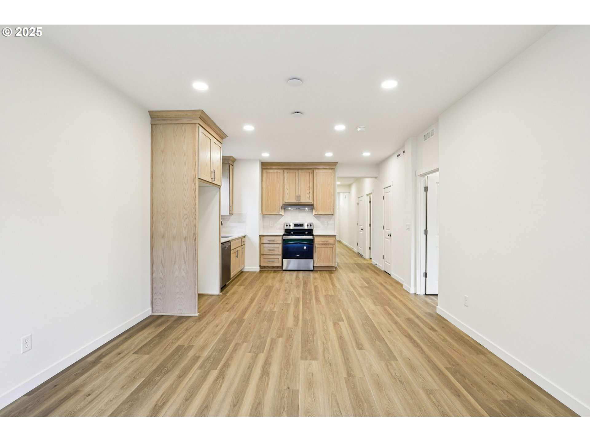 Enjoy easy single-level living in this thoughtfully designed ranch-style home featuring three bedrooms, two bathrooms, a spacious great room, and an attached garage. The open-concept layout connects the kitchen and living area—ideal for both everyday living and entertaining.The kitchen showcases real oak cabinets that extend to the ceiling and luxury vinyl plank (LVP) flooring runs throughout the entire home, adding both style and durability. The private Owner’s Suite includes a walk-in closet and an en-suite bath, while a separate laundry room is conveniently located off the garage.Relax on the covered patio out back, perfect for year round outdoor living.Nestled in a well-maintained community with green space and a scenic walking trail, this home is also just minutes from shopping, dining, medical services, and more—offering the perfect blend of comfort and convenience.This home is EnergyStar NEXTGEN Certified, designed inside and out to meet the highest standards for energy efficiency, comfort, and sustainability. Rest easy with the protection of a two-year builder workmanship warranty and a 2-10 Home Buyers Warranty, offering extended protection for major systems and structural elements—providing added peace of mind well beyond move-in day.