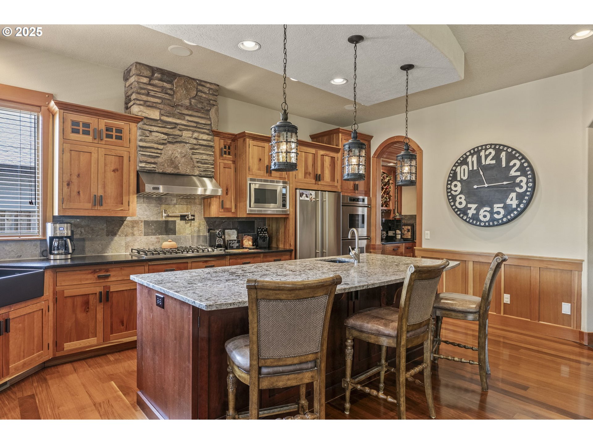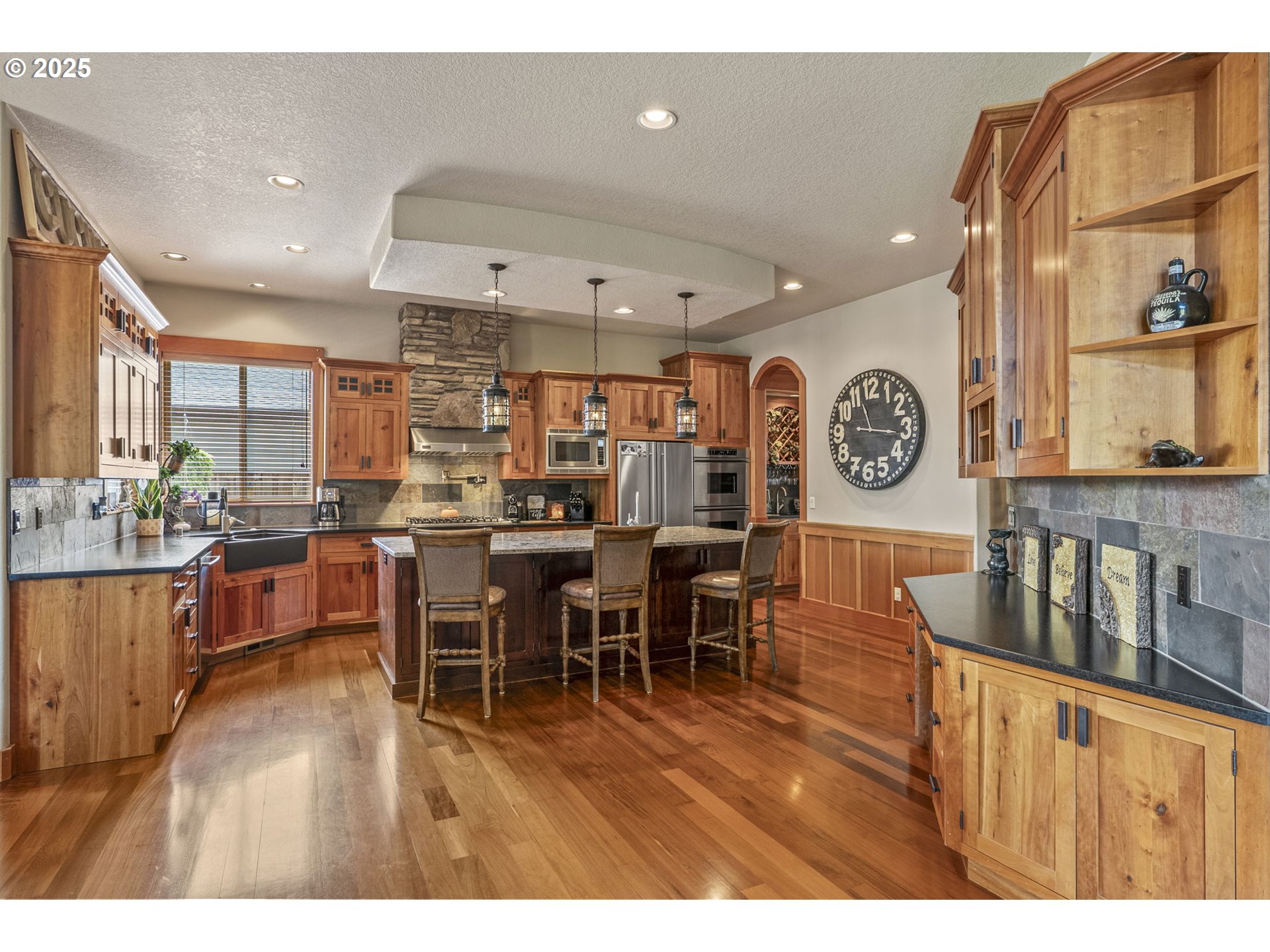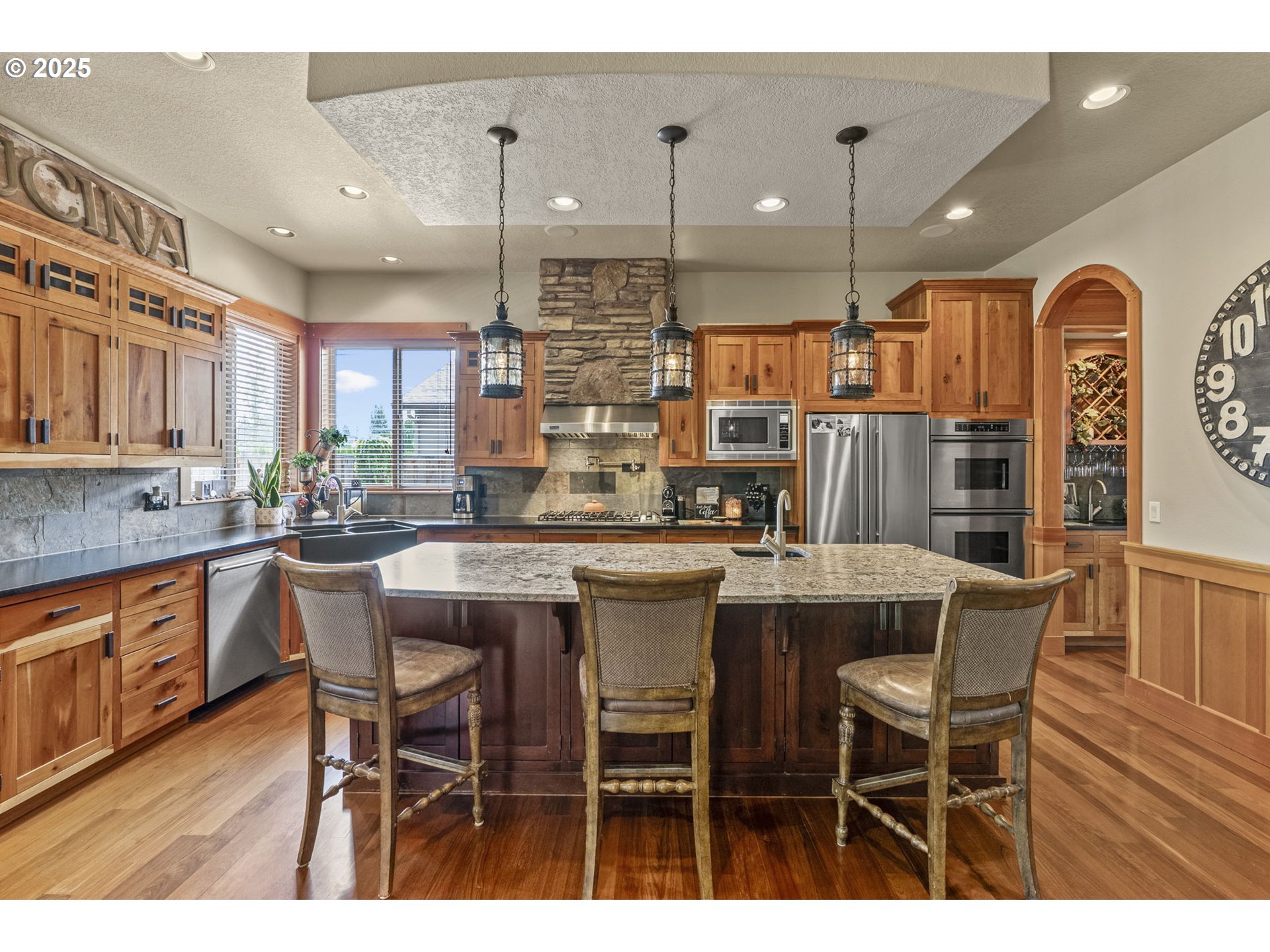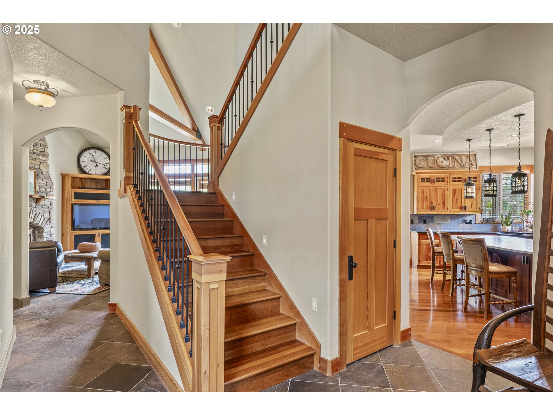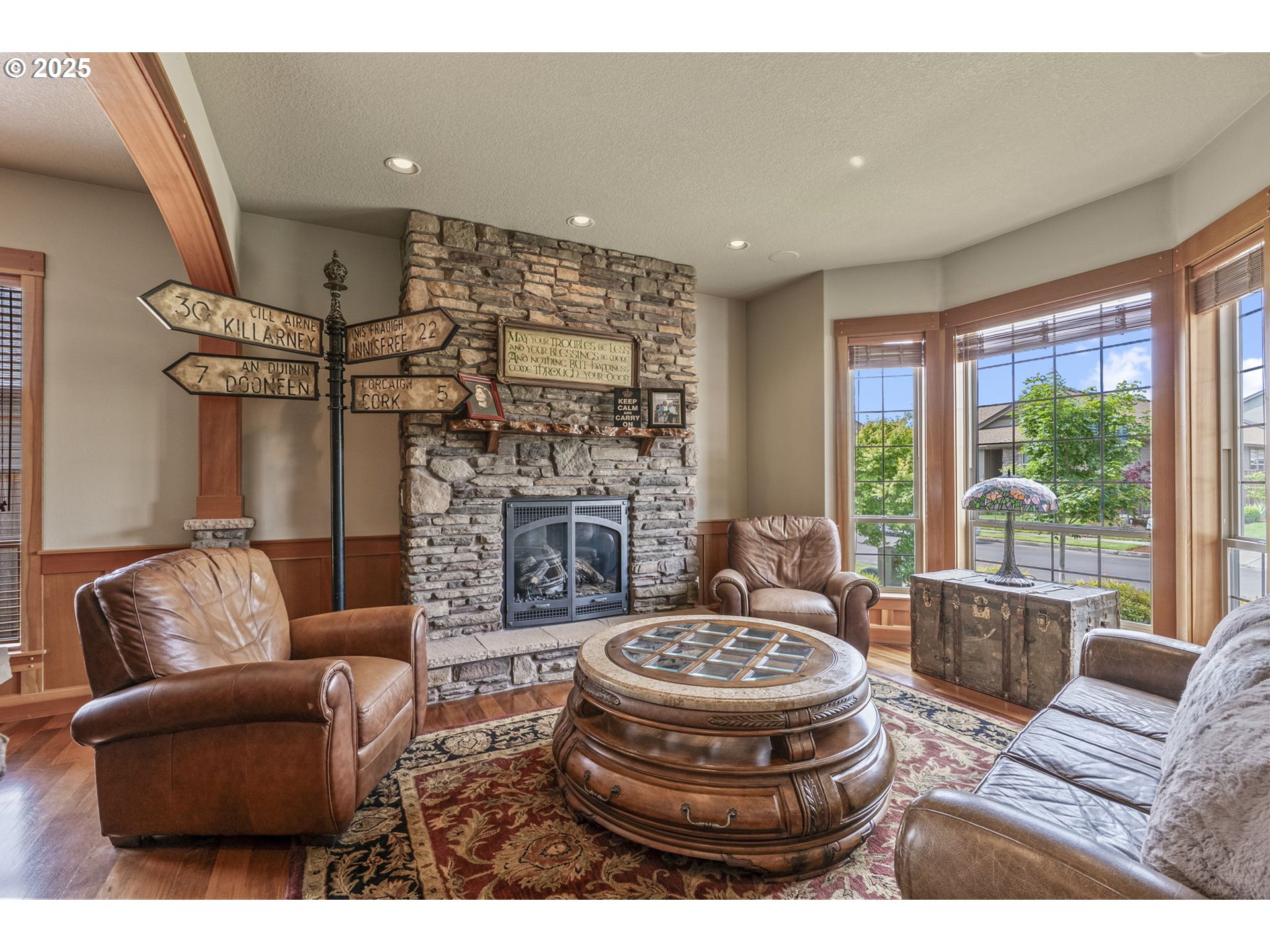 (503) 893-8874From the moment you drive up, you'll find this gorgeous, quality built, unique home w/unexpected charm & special details that is like no other in the neighborhood. Luxurious & rich w/soaring ceilings, beautiful fixtures, 2 fireplaces, stone walls, wood floors, iron railing, arched details & grand wood beams! Open concept yet large, defined spaces. Designer kitchen w/honed granite, butler's pantry, walk-in pantry, stone workstation & hood surround, farm sink, double ovens & pot filler. Spacious primary w/vaults, free-standing stove, private balcony, custom closet, walk-in shower, soaking tub w/Mt St Helens view! Deluxe oversized garage, stunning landscaping w/concrete walkways, in-ground hot tub/spa, outdoor kitchen, grill & 3rd fireplace!